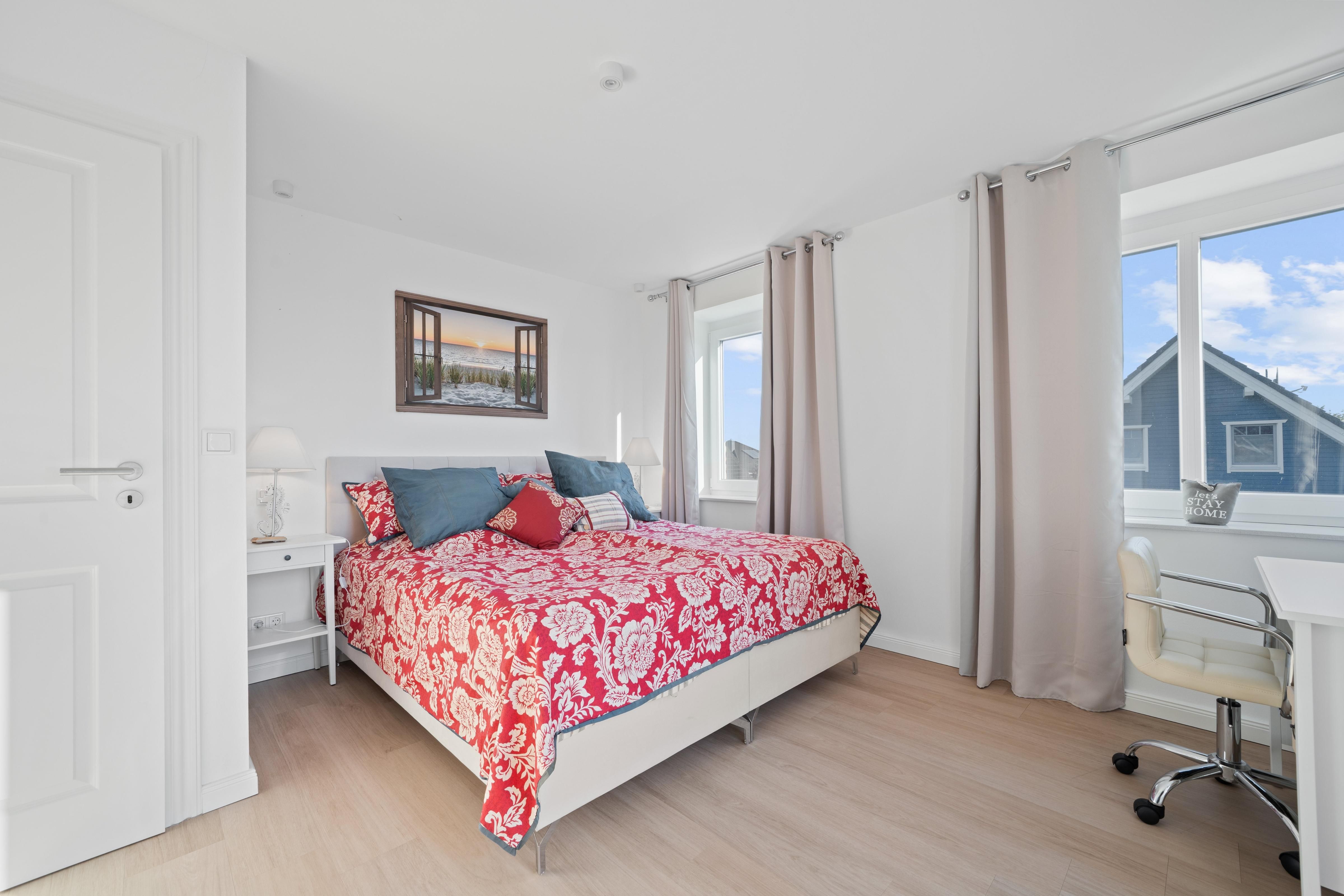 Auf großzügigen 100 m² Wohnfläche finden bis zu sechs Personen Platz, verteilt auf drei Schlafzimmer und vier moderne Bäder, davon drei en Suite direkt am Schlafzimmer angeschlossen. Das 2023 erbaute Haus erstreckt sich über drei Etagen und kombiniert stilvolles Design mit ländlicher Gemütlichkeit.