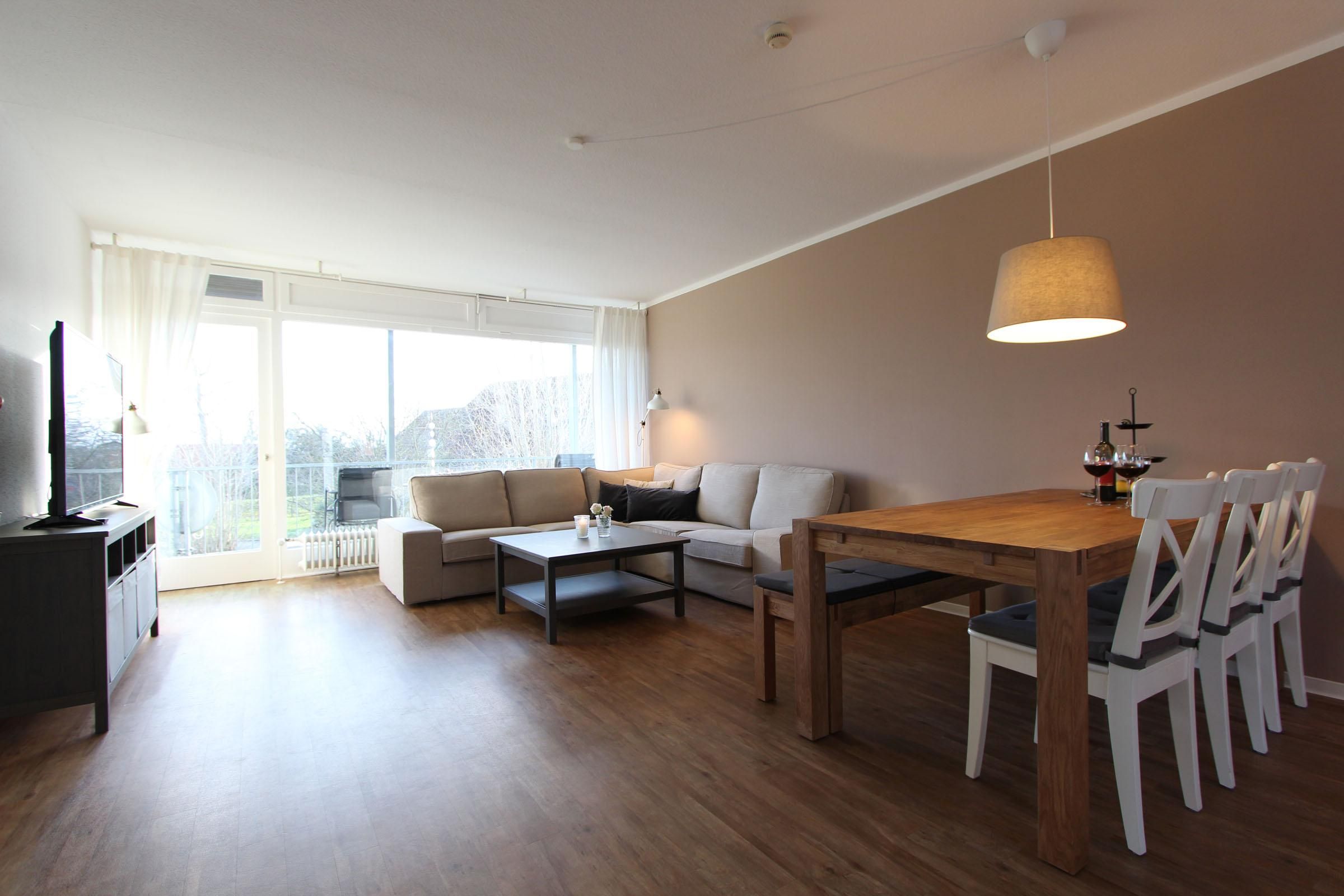 Diese ca. 96 qm große Obergeschosswohnung ist für max. 6 Personen geeignet. Mit einem Wohnzimmer mit Couchecke und großem Esstisch, und einer integrierten Küche mit Geschirrspüler, Mikrowelle und Backofen ist diese Wohnung bestens ausgestattet. Der Wohnbereich verfügt über einen Smart-TV welcher mit dem WLAN verbunden ist. Es sind 3 Schlafzimmer vorhanden. Eines dieser Schlafzimmer ist mit einem Doppelbett (2 Matratzen á 0,80x2,00m) eingerichtet, und zwei haben ein Doppelbett (2 Matratzen á 0,90x2,00m). Für die ganz kleinen Gäste gibt es einen Hochstuhl und ein Kinder-Reisebett, eine Matratze ist vorhanden. Das Badezimmer wurde Anfang 2020 komplett renoviert und verfügt über eine begehbare Dusche, Waschmaschine, ein Doppelwaschbecken und Fenster. Der Balkon ist umlaufend und hat sowohl Süd-Ost, als auch Süd-West-Lage. Für die Wäsche steht ein Wäscheständer zur Verfügung. Am schönen Kellenhusener Sandstrand ist man in nur 3 Gehminuten. Auch dem Urlaub mit dem Haustier steht generell nichts im Wege, denn nach Rücksprache und gegen Aufpreis sind Haustiere gestattet. Sollte das Reisegepäck so gering wie möglich ausfallen, dann ist ein Wäschepaket für den Aufenthalt in Kellenhusen gegen Gebühr einfach buchbar. Zu der Wohnung gehört ein überdachter PKW-Stellplatz.