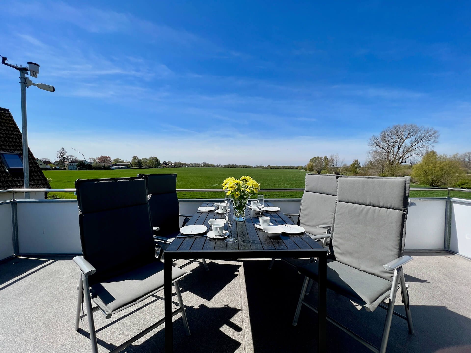 Genießen Sie die Sonne und den Blick über die Felder von einem der zwei Balkone in südwestlicher Lage!