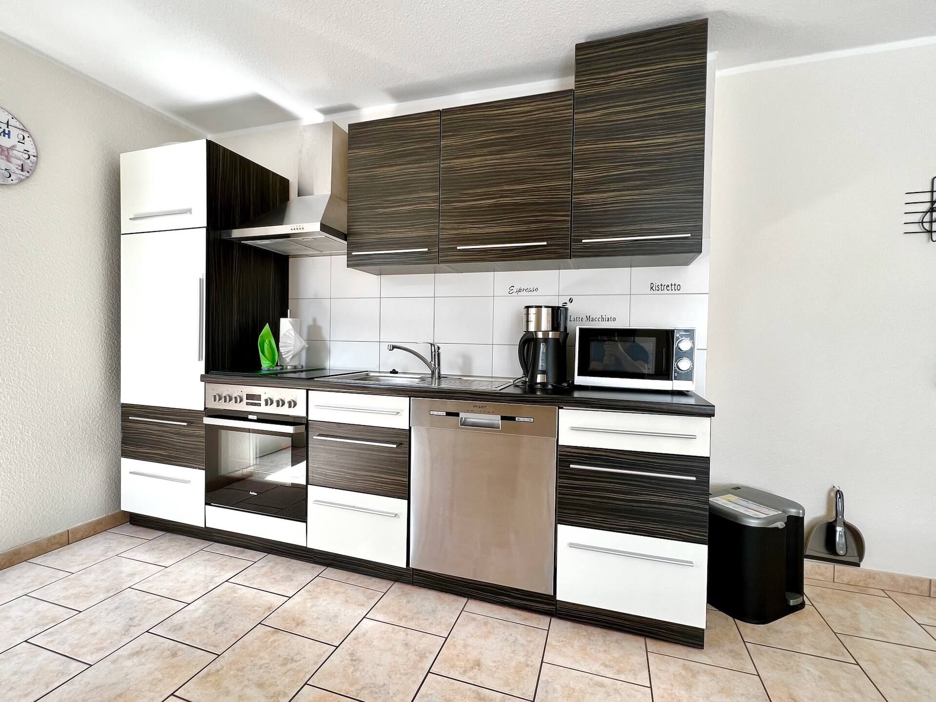 - Wohn-, Esszimmer mit integrierter voll ausgestatteter Küche mit Geschirrspüler und Backofen