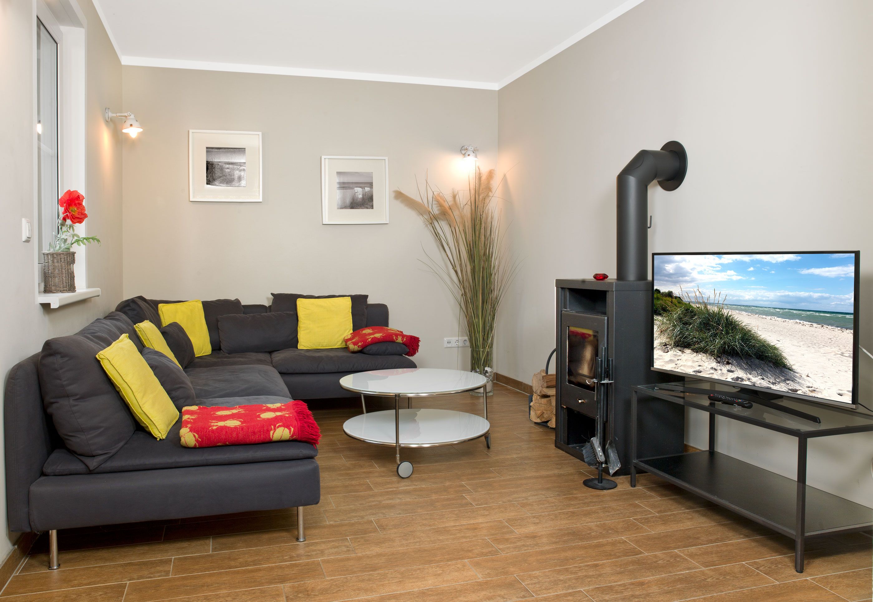 Großzügige Doppelhaushälfte für bis zu 6 Personen. Die Häuser Luv und Lee liegen sehr ruhig am Ende einer Stichstraße, die ans Feld grenzt. Kein Durchgangsverkehr, Ideal für Ruhe Suchende und spielende Kinder. Ein kleiner Weg am Feldrand führt Sie abkürzend zum Strand vom Schwarzen Busch.