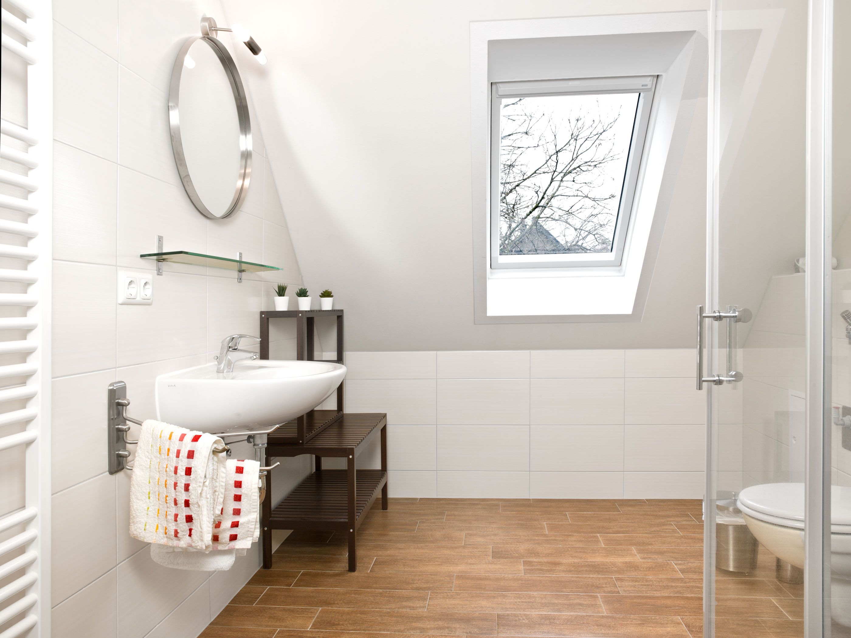 Im Erdgeschoss befindet sich ein separates Schlafzimmer und ein großes Bad, welches auch für gehbehinderte Personen nutzbar ist incl. einer großen, ebenerdigen Dusche .