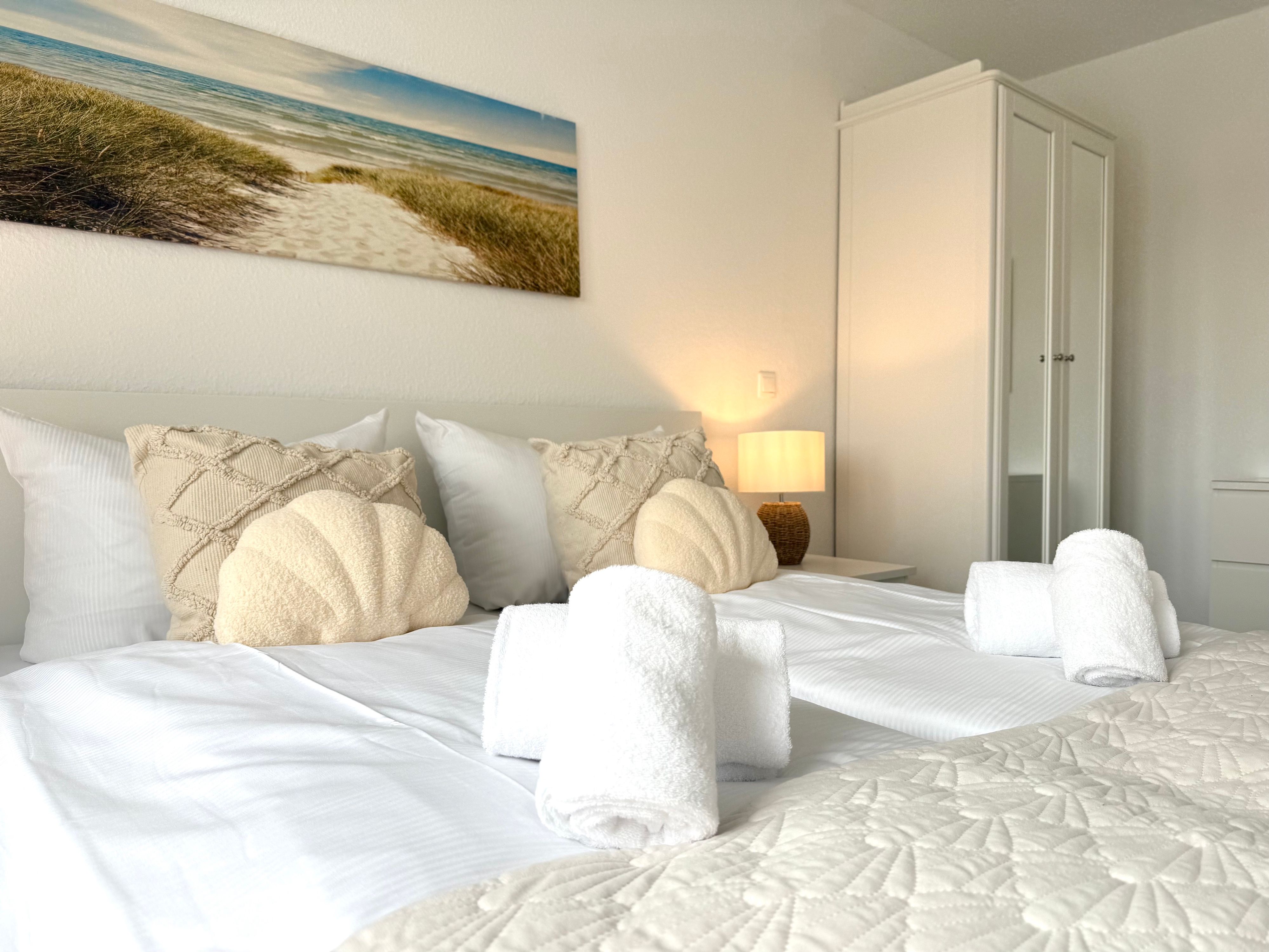 Große und helle Ferienwohnung mit zwei Balkonen und Seesicht, nur 200 Meter von der Promenade und dem Sahlenburger Sandstrand entfernt.