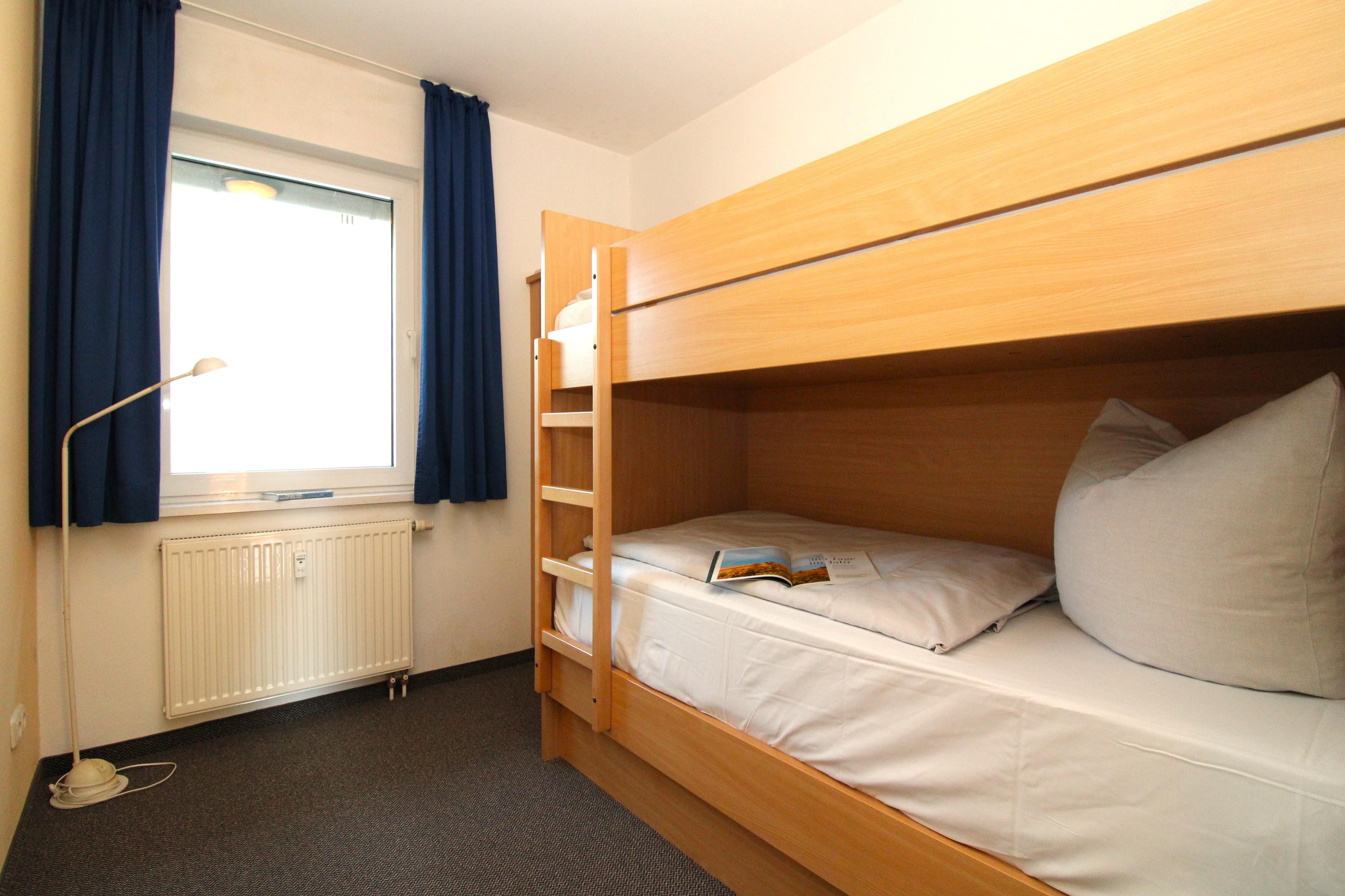 Das separate und zusätzliche 2. Schlafzimmer verfügt über ein bequemes Etagenbett (90 cm x 200 cm) für 2 Personen sowie ebenfalls einen Kleiderschrank.
