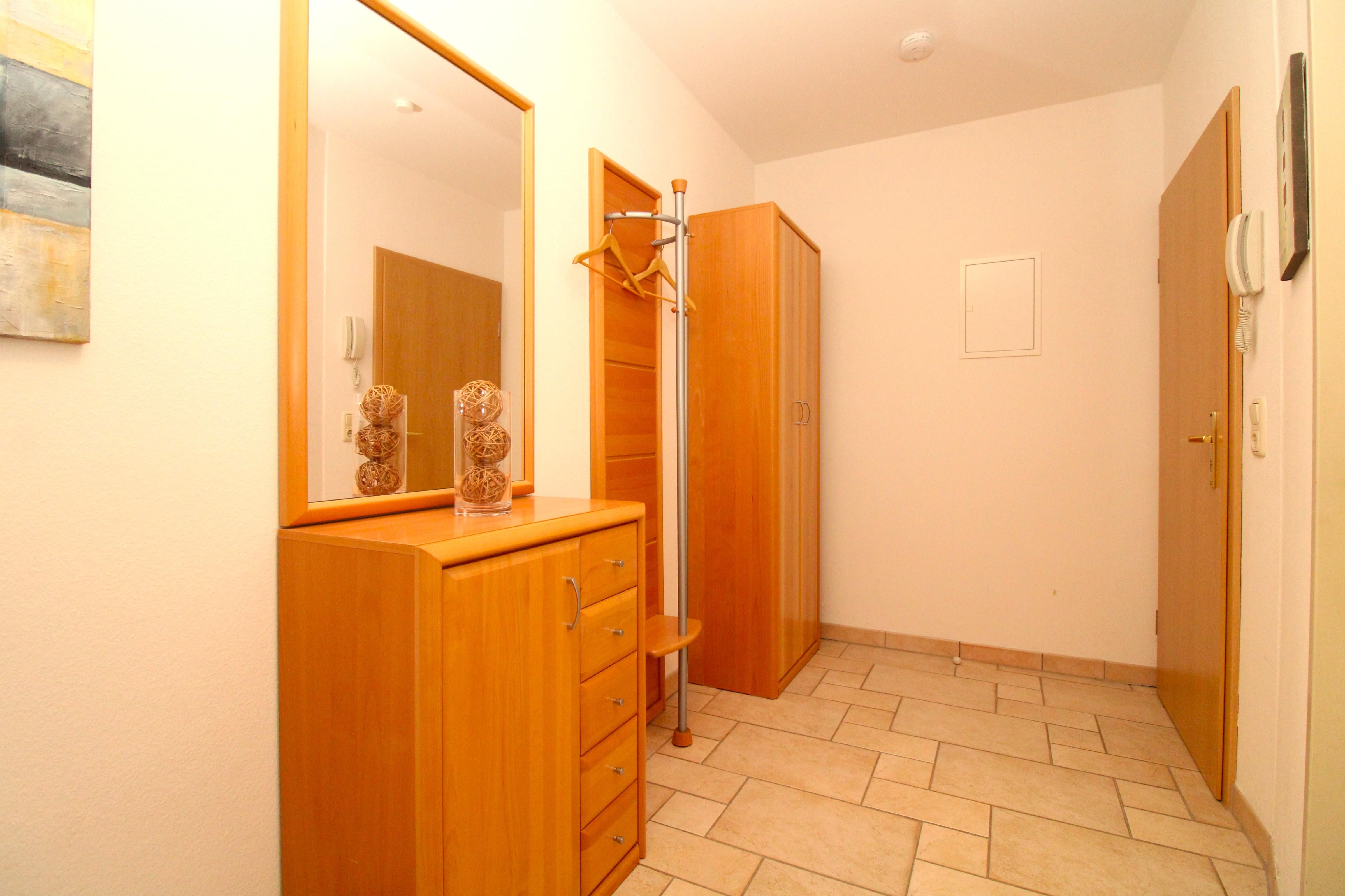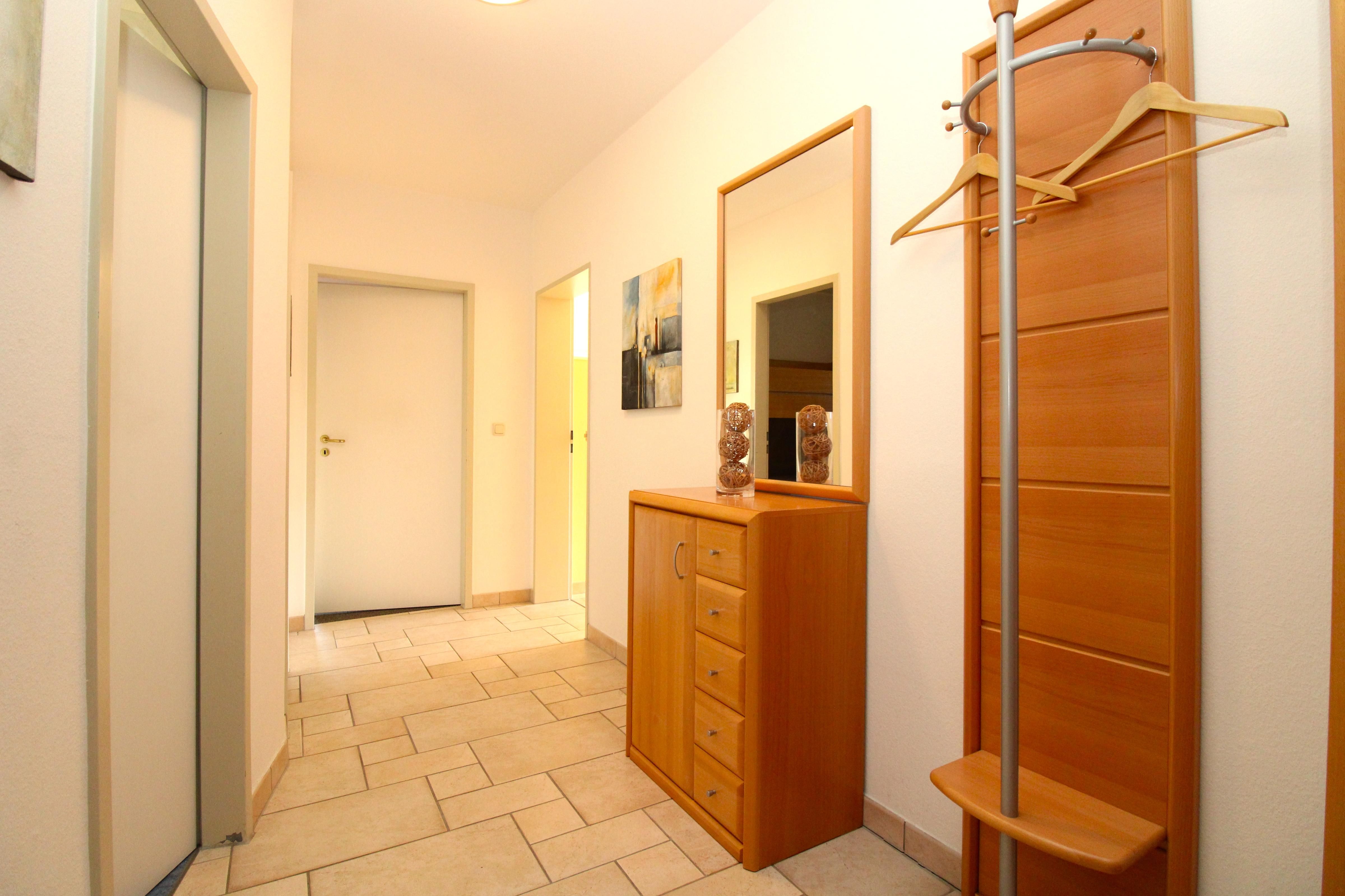 Vom geräumigen Flur mit Garderobe, Schrank, Kommode und großem Spiegel erreichen Sie bequem alle Räume Ihrer Ferienwohnung.