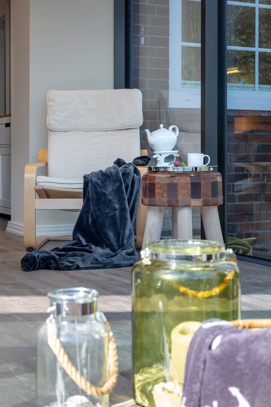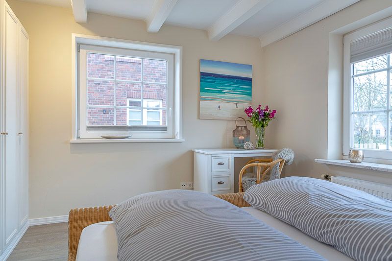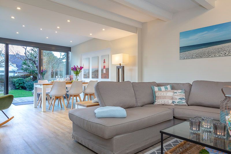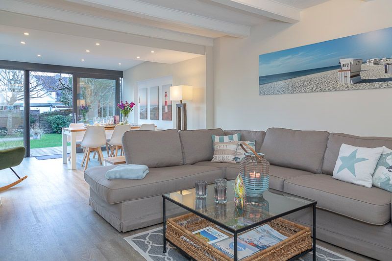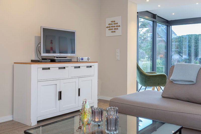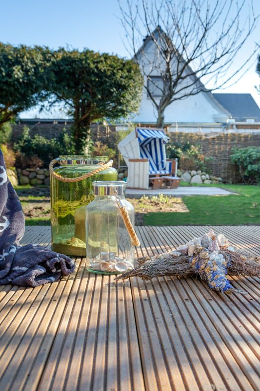 EG: Surfside1 mit herrlichem Garten (Nichtraucherwohnung), Zeitgemäß urlauben mit Blick ins Grüne. Den Strand und die City erreichen Sie bequem in wenigen Minuten zu Fuß. Diese hervorragend ausgestattete 3-Zimmerwohnung ist perfekt geeignet für einen tollen Urlaub für 4 Personen, auf ca. 85 m² Wohnfläche. Das helle Wohnzimmer mit seinem schicken modernem Wintergarten, dem Designboden und der modernen Möblierung lassen keine Wünsche offen. Der Essbereich hat zusätzlich eine Fußbodenheizung. Verweilen Sie auf der modernen Holzterrasse, oder lieber direkt in dem großzügigen Garten? Die abendliche Zuschaltung der Gartenbeleuchtung sorgt für eine sensationelle Stimmung. Die coole Optik der neuen Bankiraii Terrasse in Kombination mit dem Grün des Gartens sowie dem neuen kleinen Friesenwall werden Sie schnell begeistern. Der wunderschön angelegte, komplett eingezäunte Garten, mit einem großen sonnigen Terrassenbereich ist ausgestattet mit Strandkörben (2) und Gartenmöbeln. In einem angrenzenden Raum zur Garage steht Ihnen für die Kinder ein Tischkicker zur Verfügung. Perfekt auch für alle, die mit Ihrem liebsten Vierbeiner anreisen möchten (auf Anfrage). Separate Küche mit Markengeräten. Es findet sich sowohl eine Filter-Kaffeemaschine, als auch eine Nespresso-Kapsel-Maschine von Delonghi©. Die Wohnung verfügt über zwei Schlafzimmer: Im großen Schlafzimmer steht ein Doppelbett (180x200 cm), während das zweite Schlafzimmer mit zwei Einzelbetten (je 90x200 cm) ausgestattet ist. Auch das neu gestaltete Badezimmer wird Sie begeistern. Hier erwartet Sie eine ebenerdige Dusche und eingebaute Sauna. Folgende Entertainmöglichkeiten bietet Ihnen diese tolle Wohnung: FLAT TV im Wohnzimmer, Blueray/DVD-Player, W-LAN, Hifi-Anlage (Internetradio) Auch ein Babybett und ein Hochstuhl sind vorhanden. Ebenso Bügelbrett, Bügeleisen und Staubsauger. Waschmaschine & Trockner sind im Keller des Hauses vorhanden. EXTRA: Platz für Fahrräder findet sich in der zum Haus gehörenden Garage (nicht für PKW), E-Bikes aufladbar. E-Ladestation am Haus; Nette Hunde sind in dieser Wohnung nach Anmeldung erlaubt (10,00€/Tag).