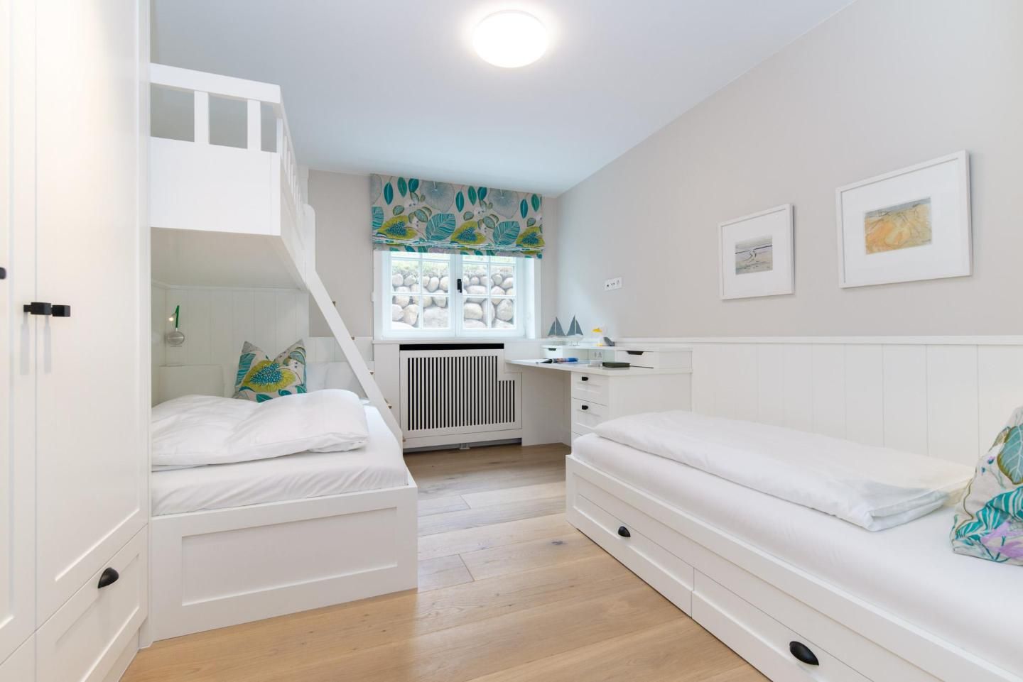 Die Ferienwohnung verfügt über ca. 100 m² - verteilt auf zwei Etagen - und bietet 2 bis 5 Personen Platz für einen wunderbaren Sylt-Urlaub. Im Erdgeschoss befindet sich der großzügige, 50 m² Wohn-, Ess- und Küchenbereich mit Gäste-WC. Im attraktiv gestalteten Souterrain sind die beiden hellen Zimmer mit großen Holzsprossen-Fenster und Blick auf einen schönen Friesenwall, das große Hauptbadezimmer sowie der Abstellraum mit Waschtrockner gelegen.