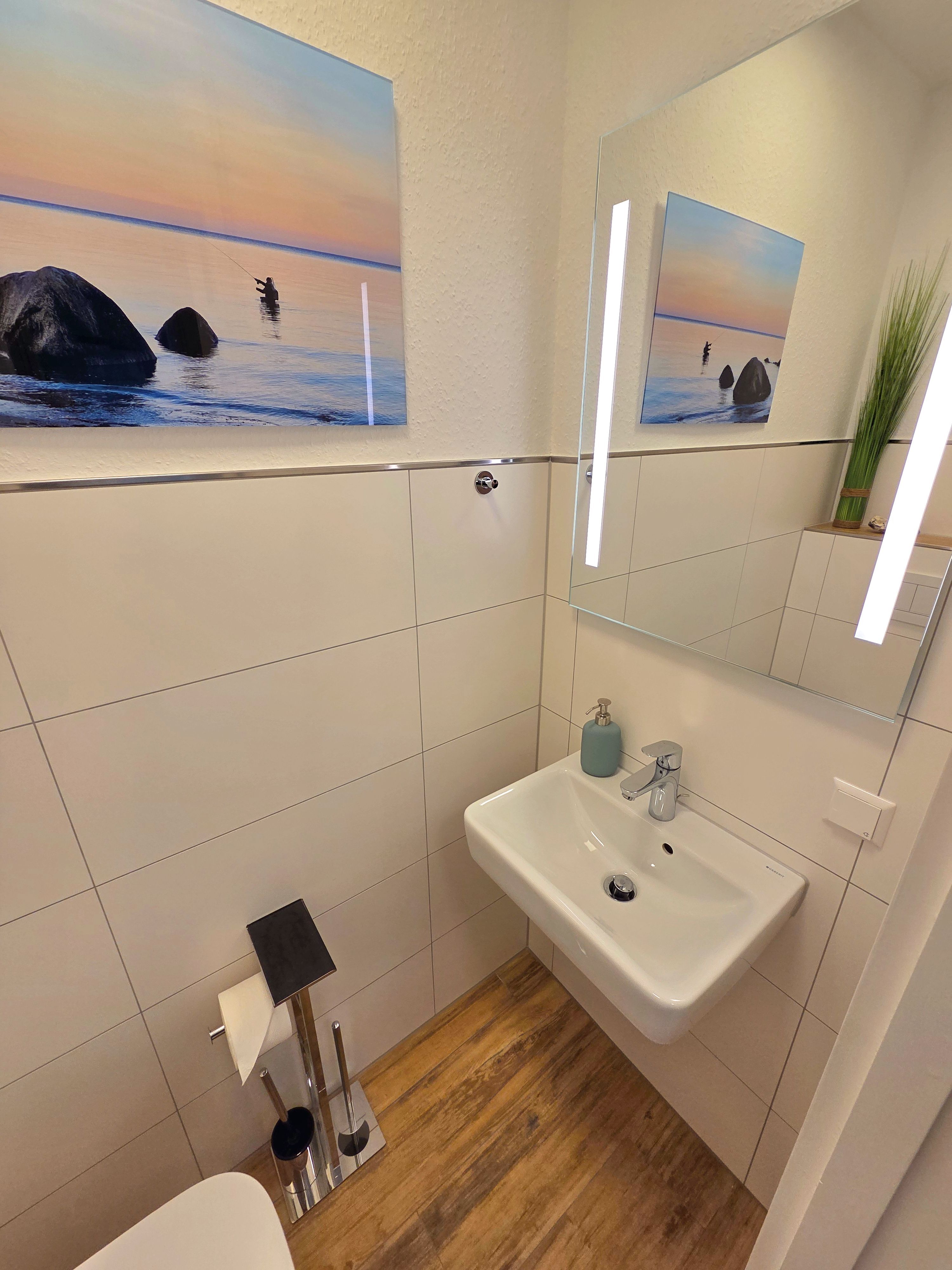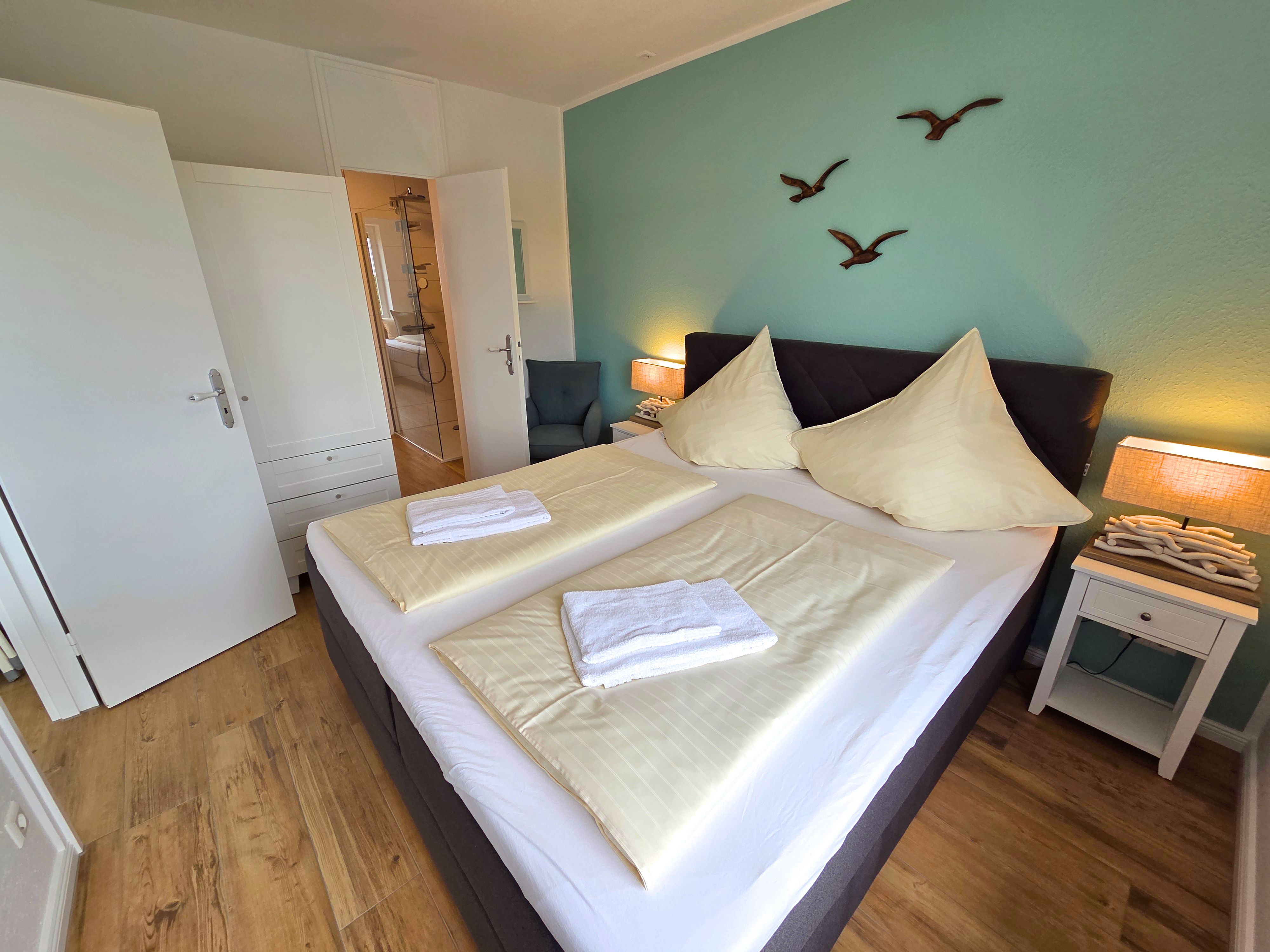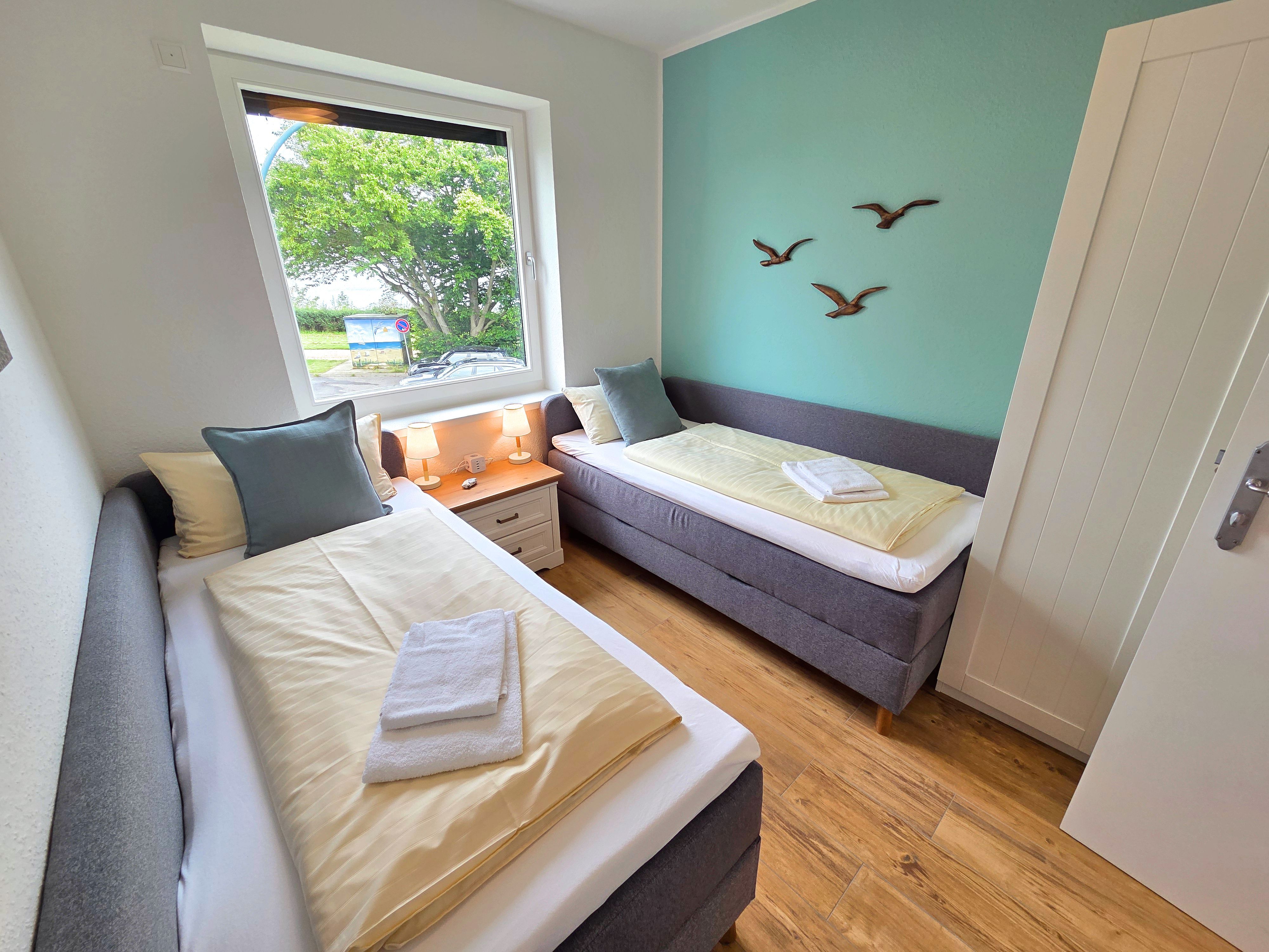 Die Unterkunft verfügt über zwei gemütliche Schlafzimmer, beide mit Fliesenboden, die ein angenehmes Raumklima gewährleisten. Für erholsame Nächte stehen Ihnen bequeme Betten zur Verfügung. Im Wohnbereich steht Ihnen das gemütliche Schlafsofa für eine fünfte Person zur Verfügung. Ein bodengleiches Duschbad mit Fenster, Waschbecken, Spiegel und Haartrockner sorgt für Ihren Komfort. Darüber hinaus steht Ihnen ein zusätzliches Gäste-WC zur Verfügung.