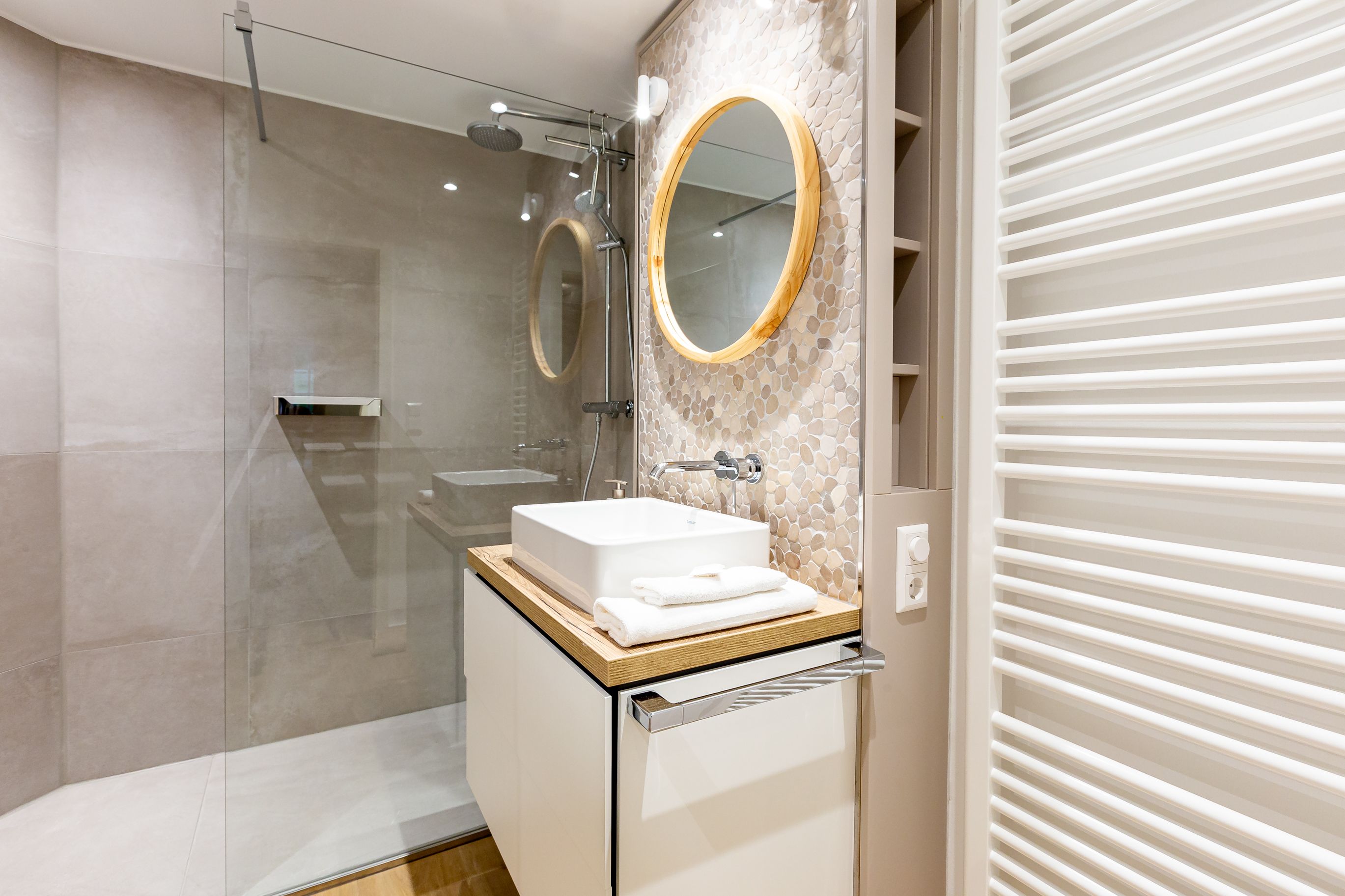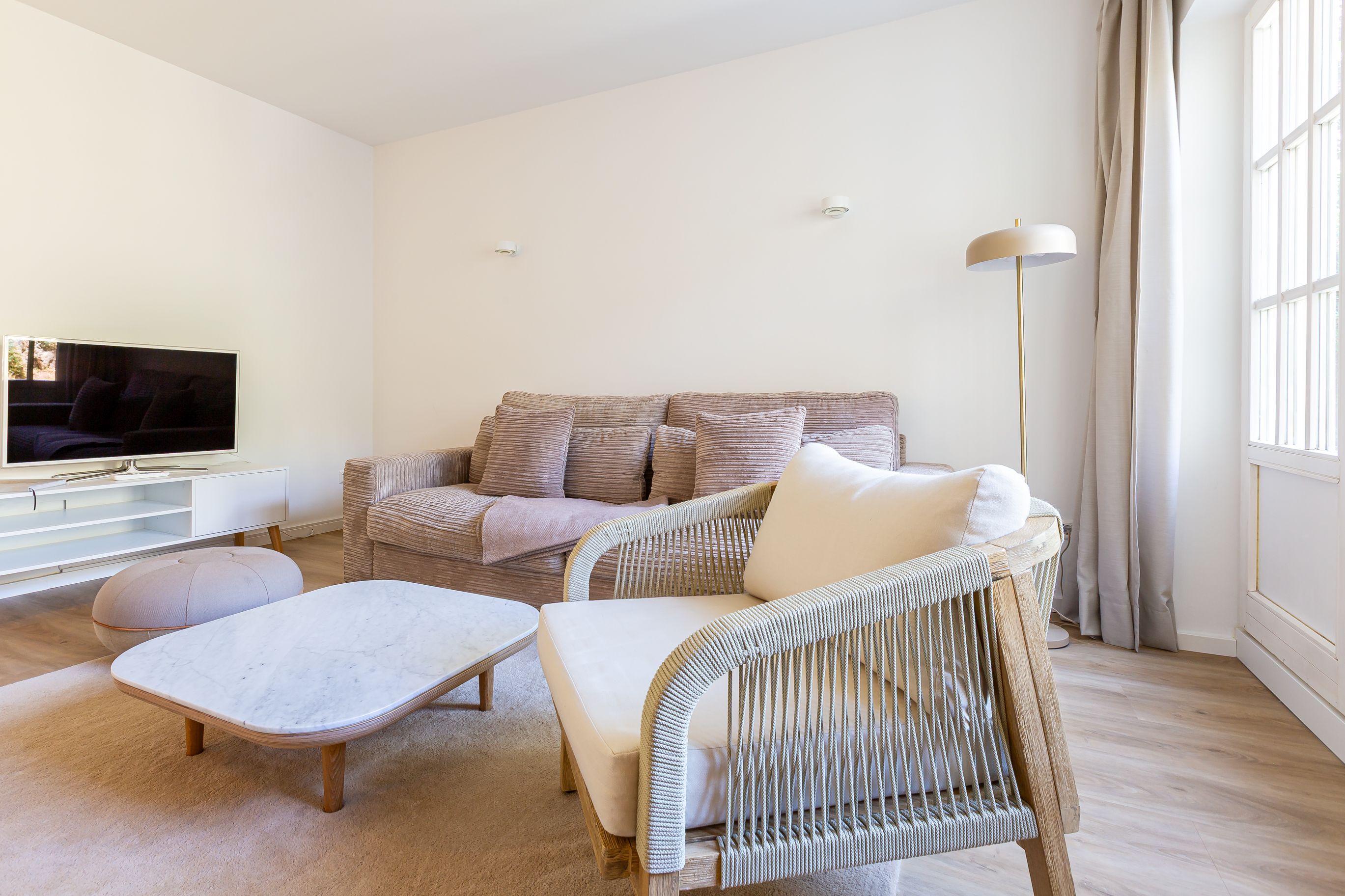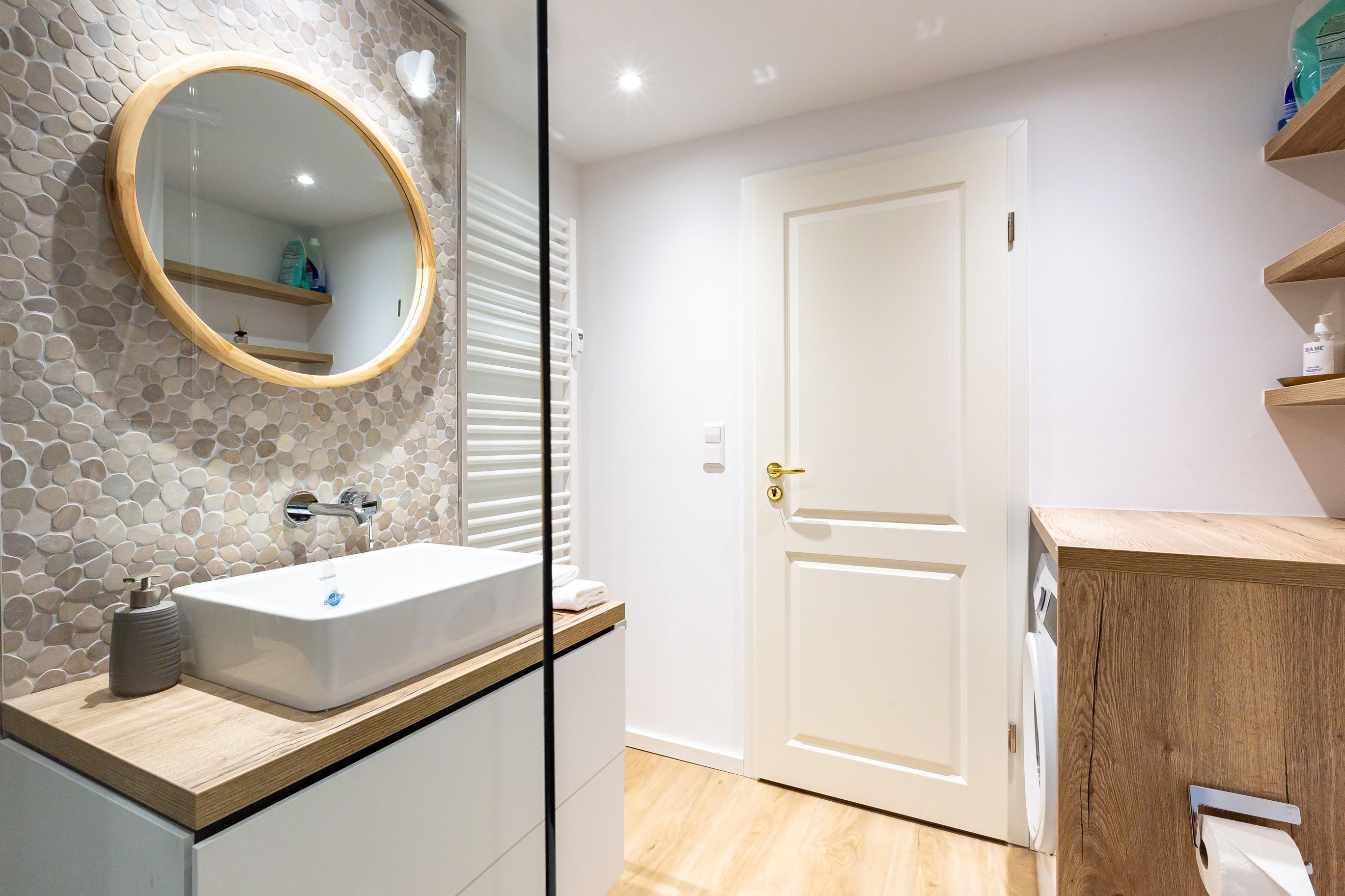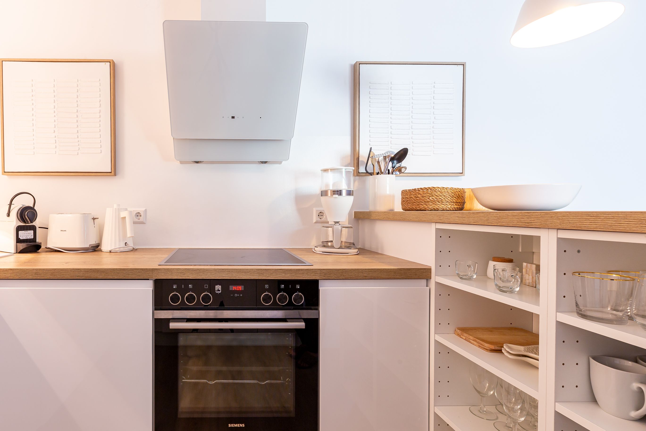 Diese Souterrainwohnung besticht durch eine helle, freundliche Atmosphäre und große Fenster mit einem wunderbaren Blick ins Grüne und den gepflegten Garten. Hier genießt man nicht nur die Ruhe, sondern auch ein stilvolles Ambiente, das bis ins Detail durchdacht ist. Die traumhafte Ausstattung zeichnet sich durch hochwertige Materialien und eine perfekte Abstimmung aus. Jedes Möbelstück und Accessoire wurde mit Bedacht gewählt, um eine harmonische Wohlfühlatmosphäre zu schaffen. Das Farbkonzept in warmen Sandtönen passt sich perfekt der strandnahen Umgebung an und lädt zum Entspannen ein. Die Raumaufteilung ist optimal auf die Bedürfnisse von zwei Personen abgestimmt. Der offene Wohn- und Essbereich bietet viel Platz zum Verweilen, während das Schlafzimmer durch seine gemütliche Gestaltung zum Rückzugsort wird. Auch die offene Wohnküche ist hochwertig ausgestattet und lässt keine Wünsche offen, sodass das Kochen in dieser Umgebung zu einem Vergnügen wird.