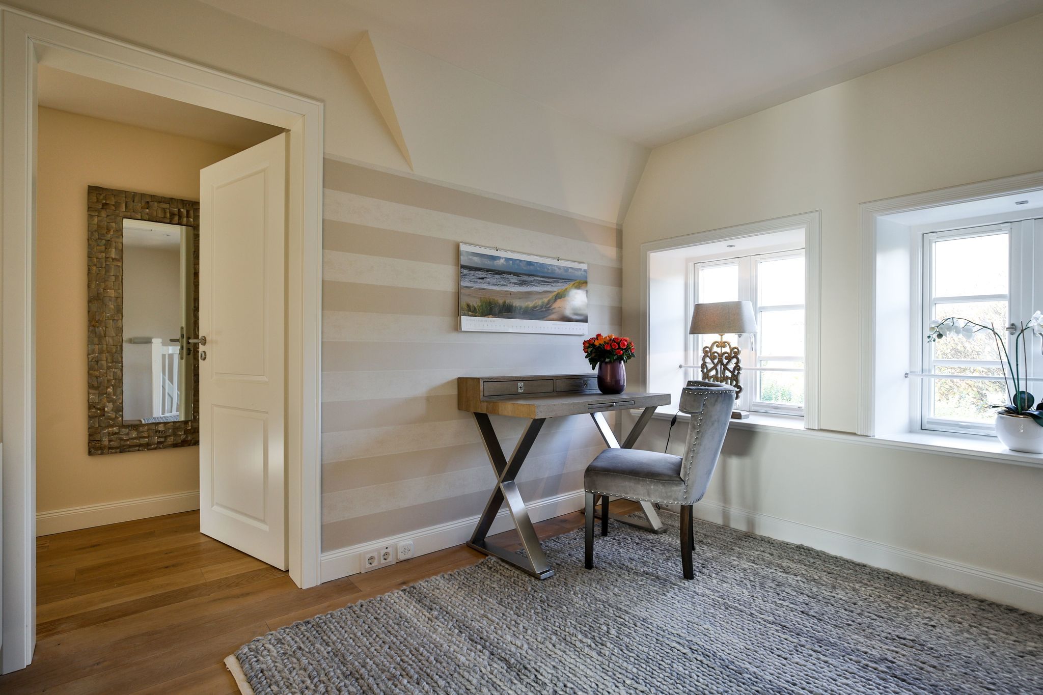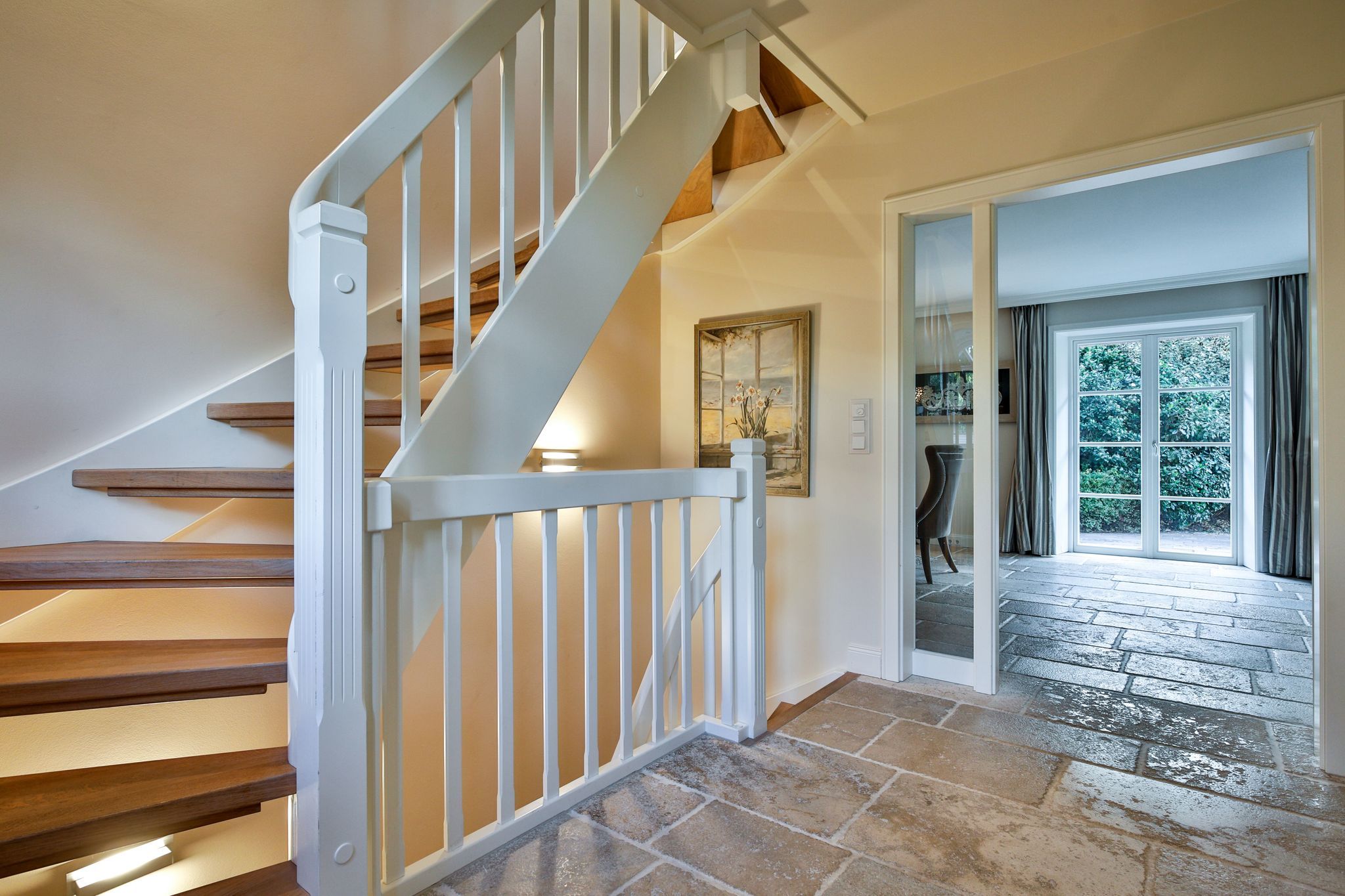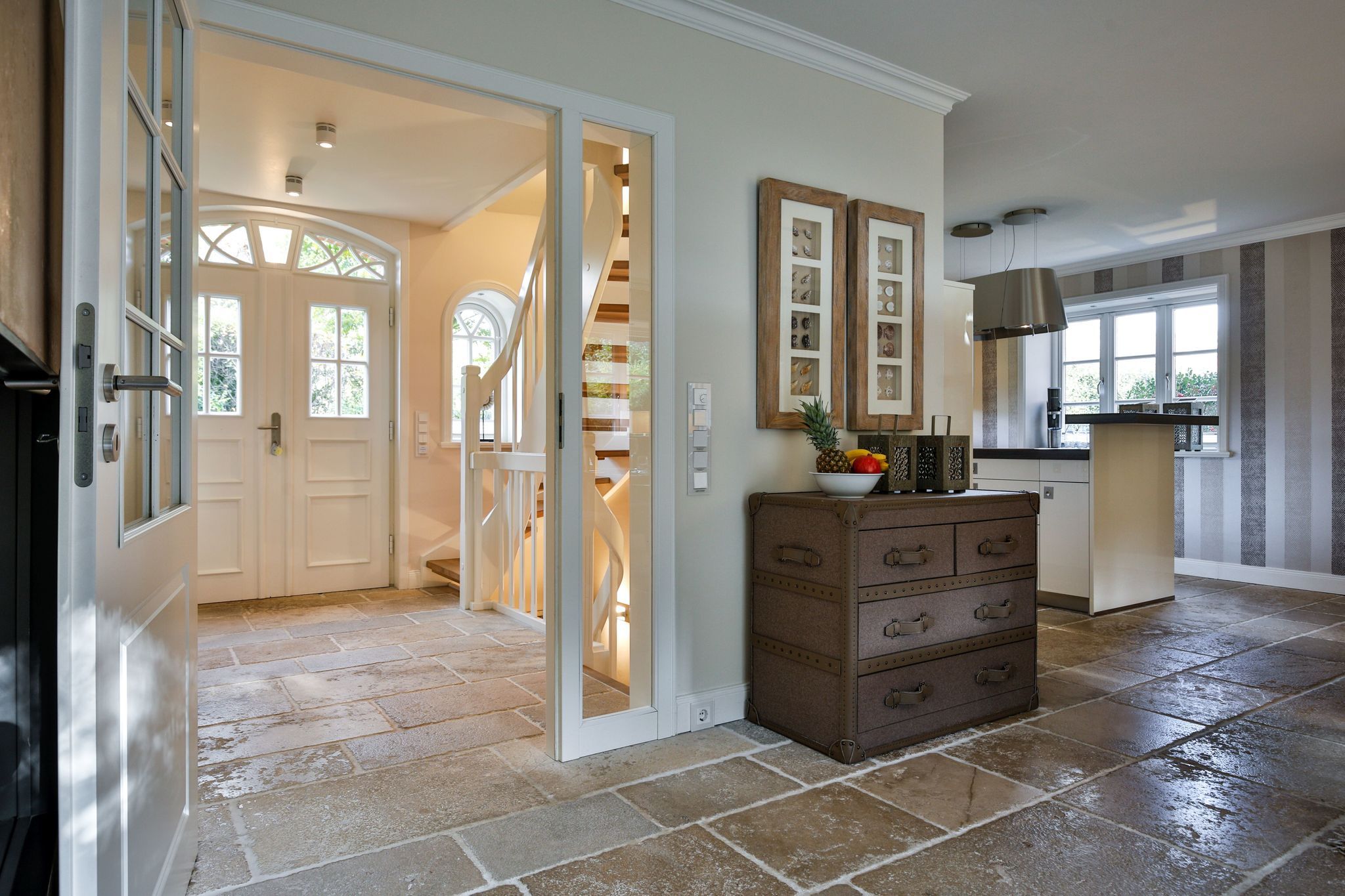 Flur: Eingangsbereich mit Spiegel und Garderobe, Treppe ins Obergeschoß und zum Souterrain