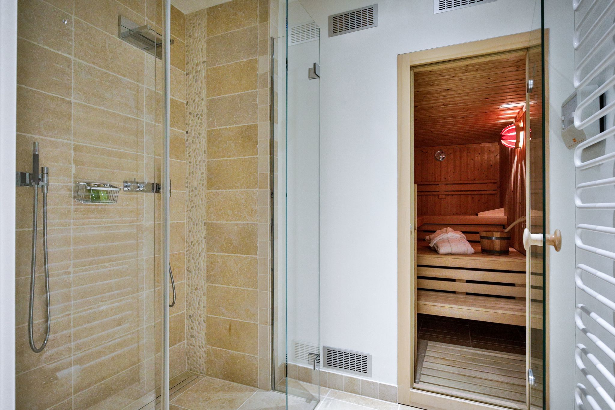 Bad 2: helles en Suite ein helles Bad mit Dusche und Handtuchwärmer