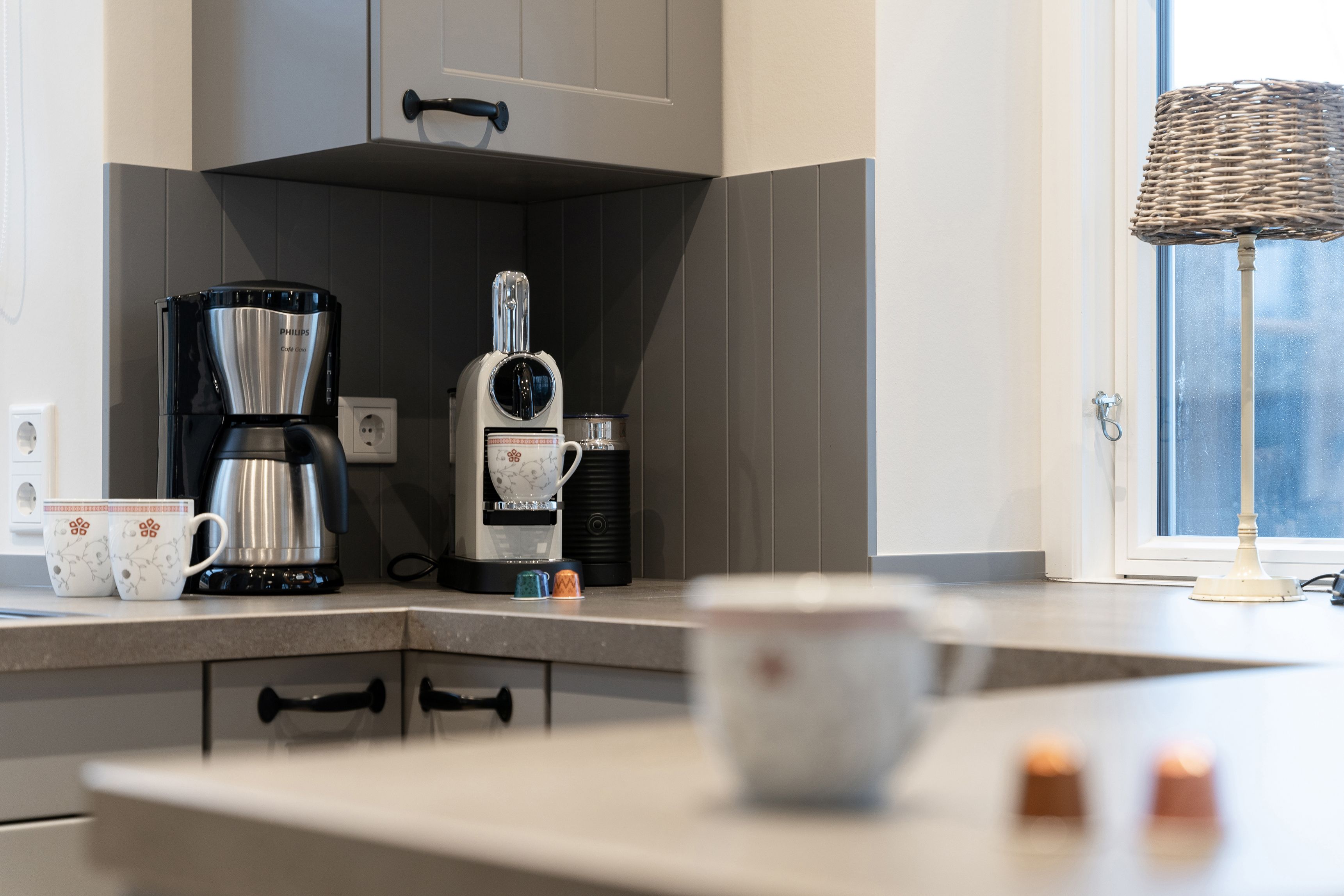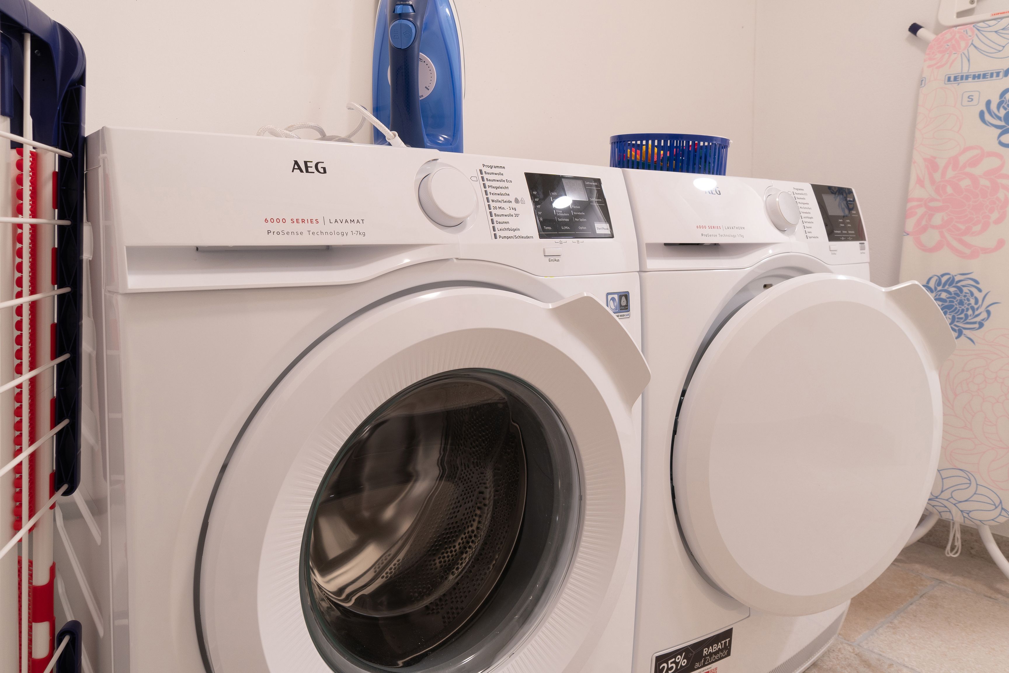 Im Souterrain befindet sich ein Hauswirtschaftsraum mit Waschmaschine und Trockner für die Gäste von dem Hüs zur Marsch.
