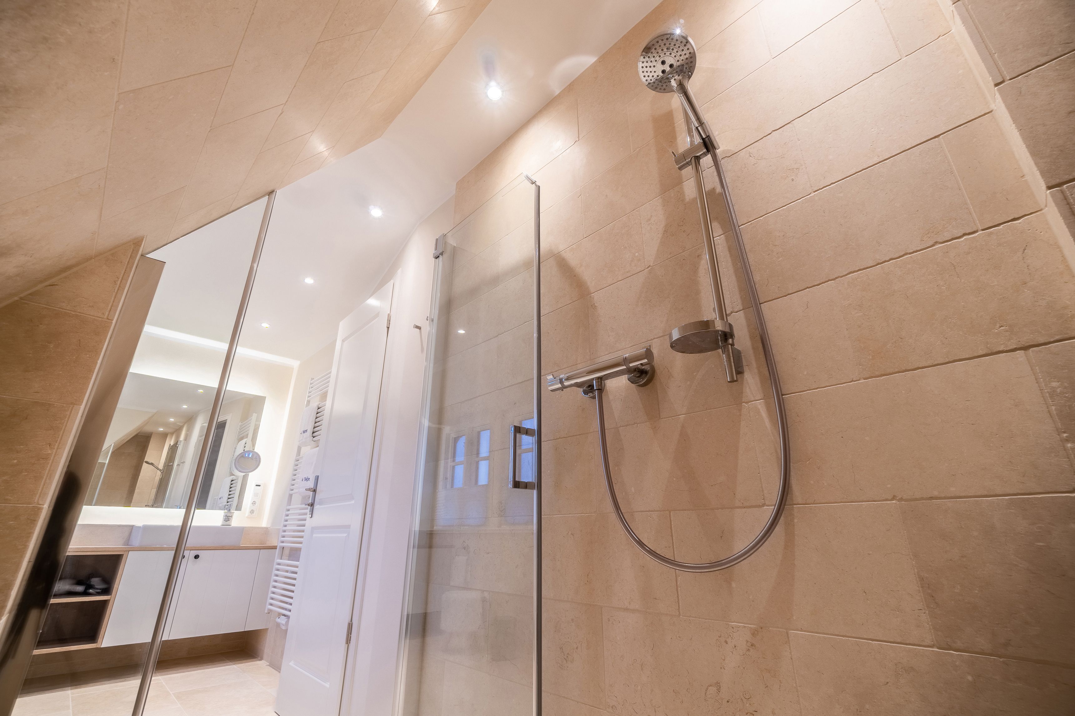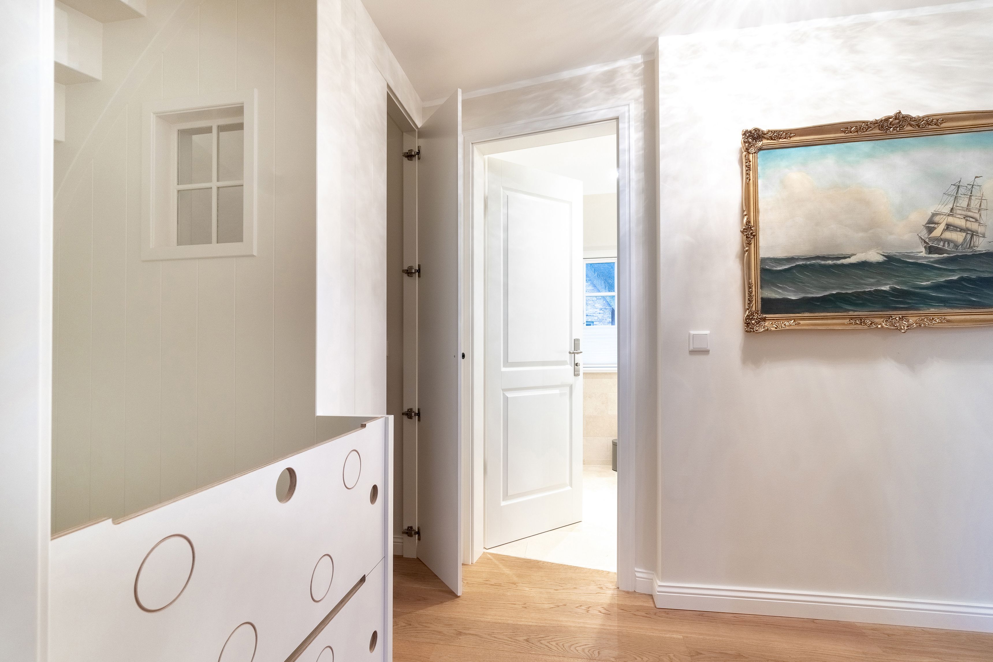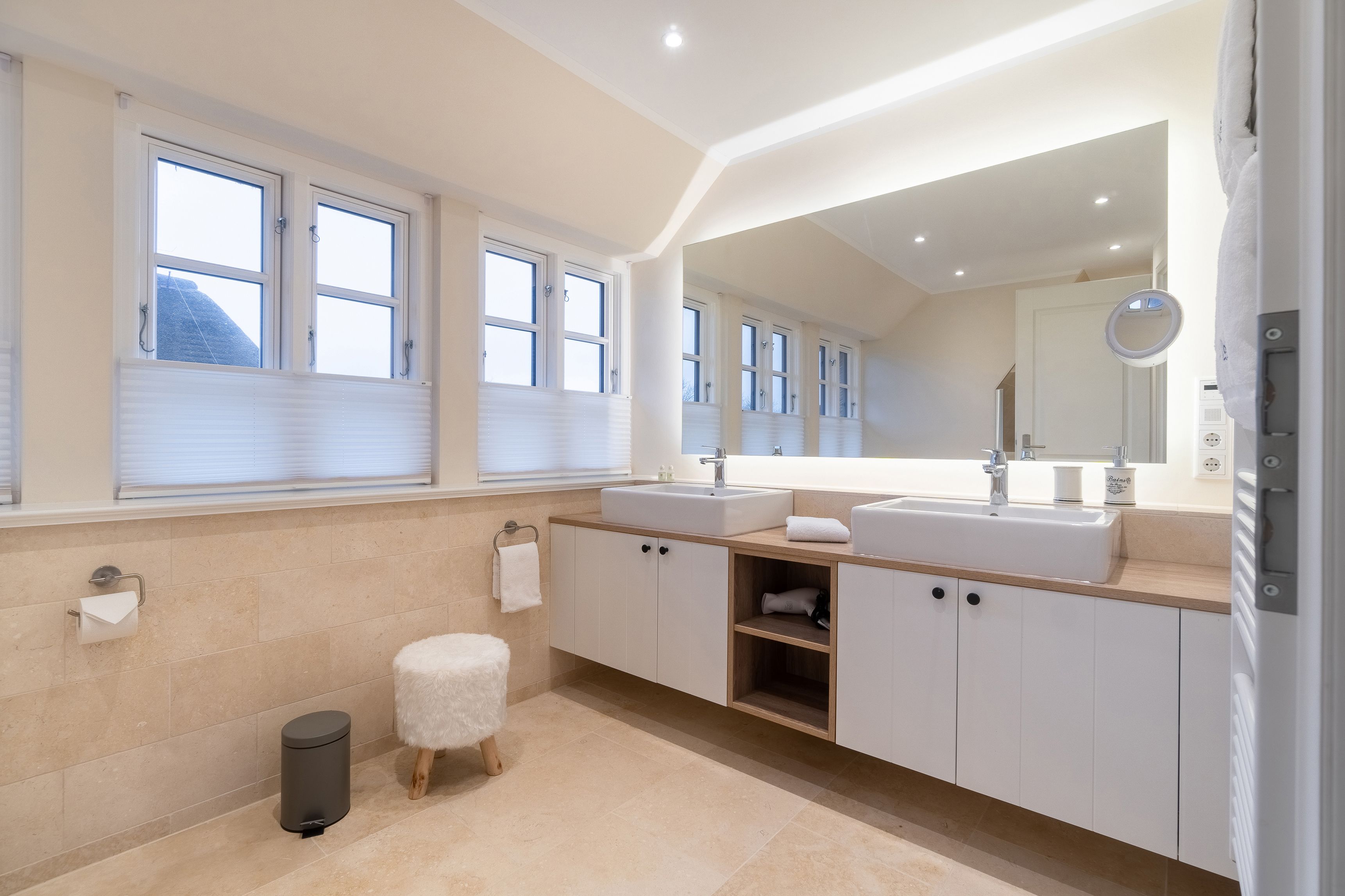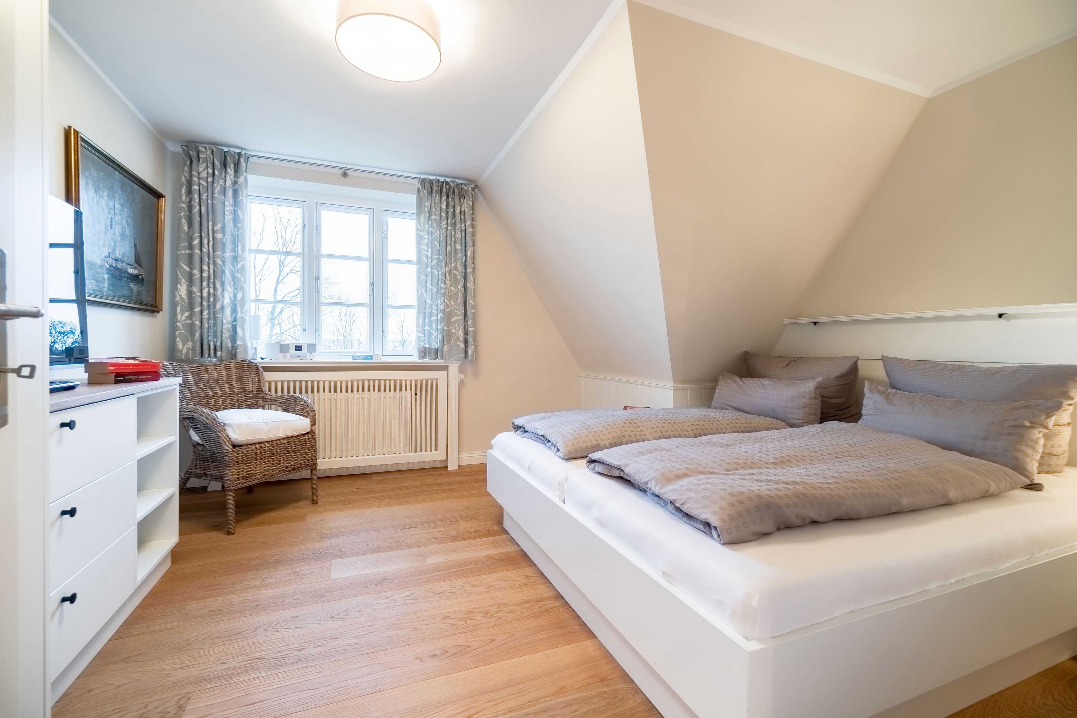 Im Obergeschoss befinden sich die drei Schlafzimmer - zwei mit jeweils einem Doppelbett und eines mit zwei Einzelbetten - sowie das zweite Duschbad. Alle Schlafzimmer sind mit einem Smart-TV ausgestattet.