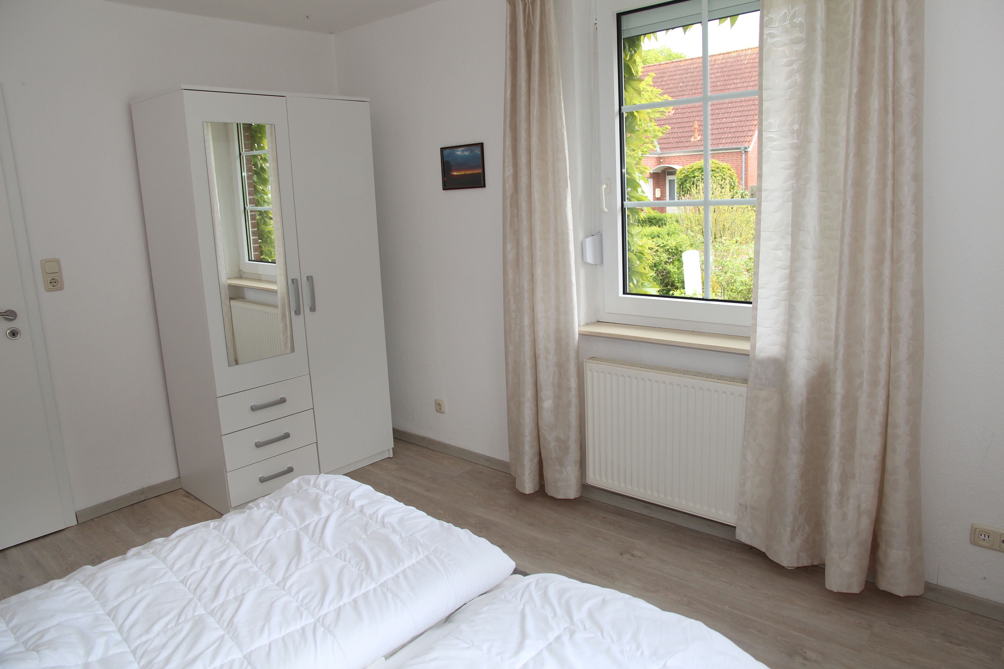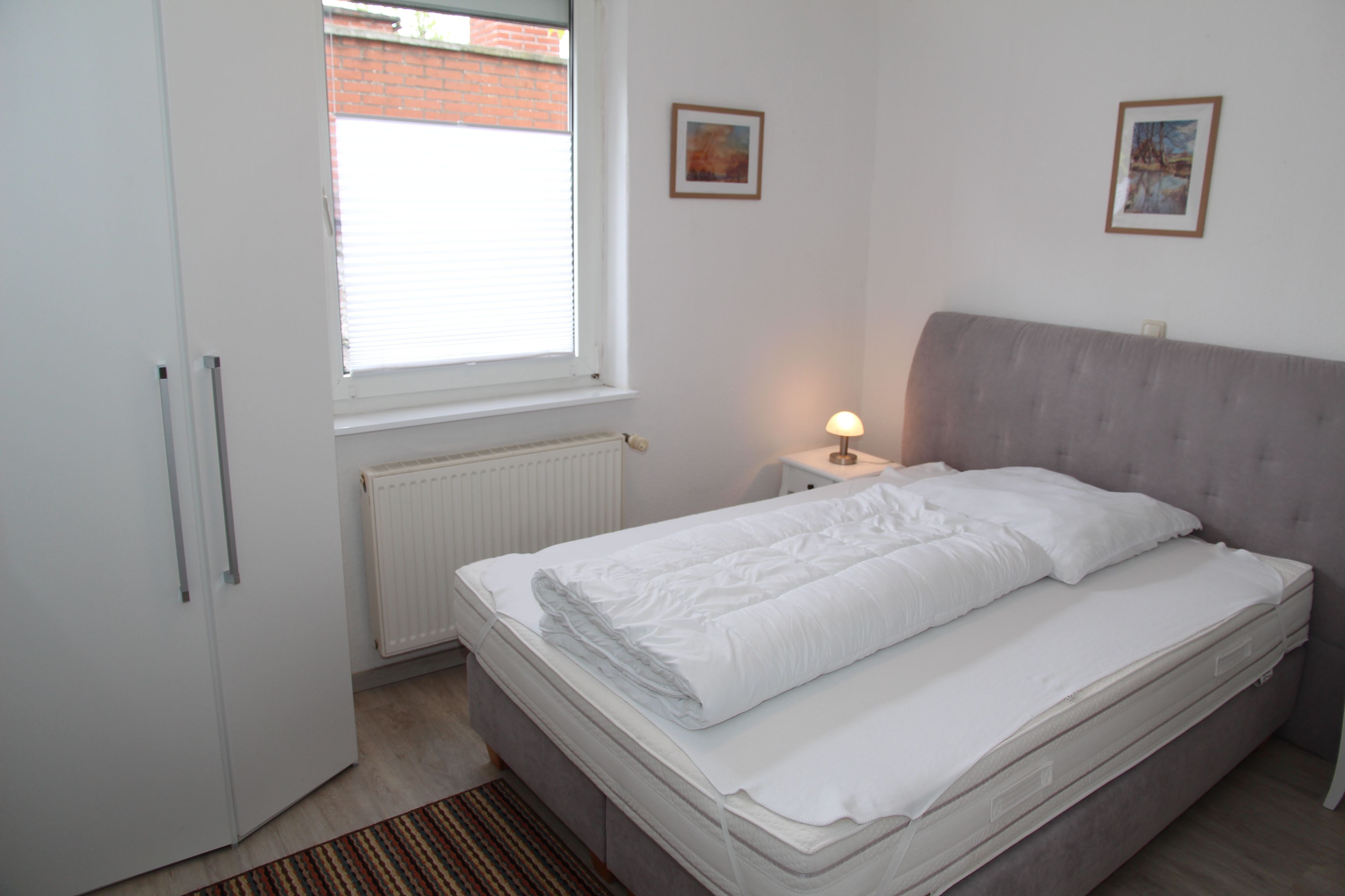Eines der Schlafzimmer verfügt über ein Doppelbett mit Kleiderschrank, das andere Schlafzimmer verfügt über ein 1,40m breites Boxspringbett, Kleiderschrank und direkt zugänglichem neuem WC und Waschbecken. Eine Dusche ist direkt vom Flur aus erreichbar.