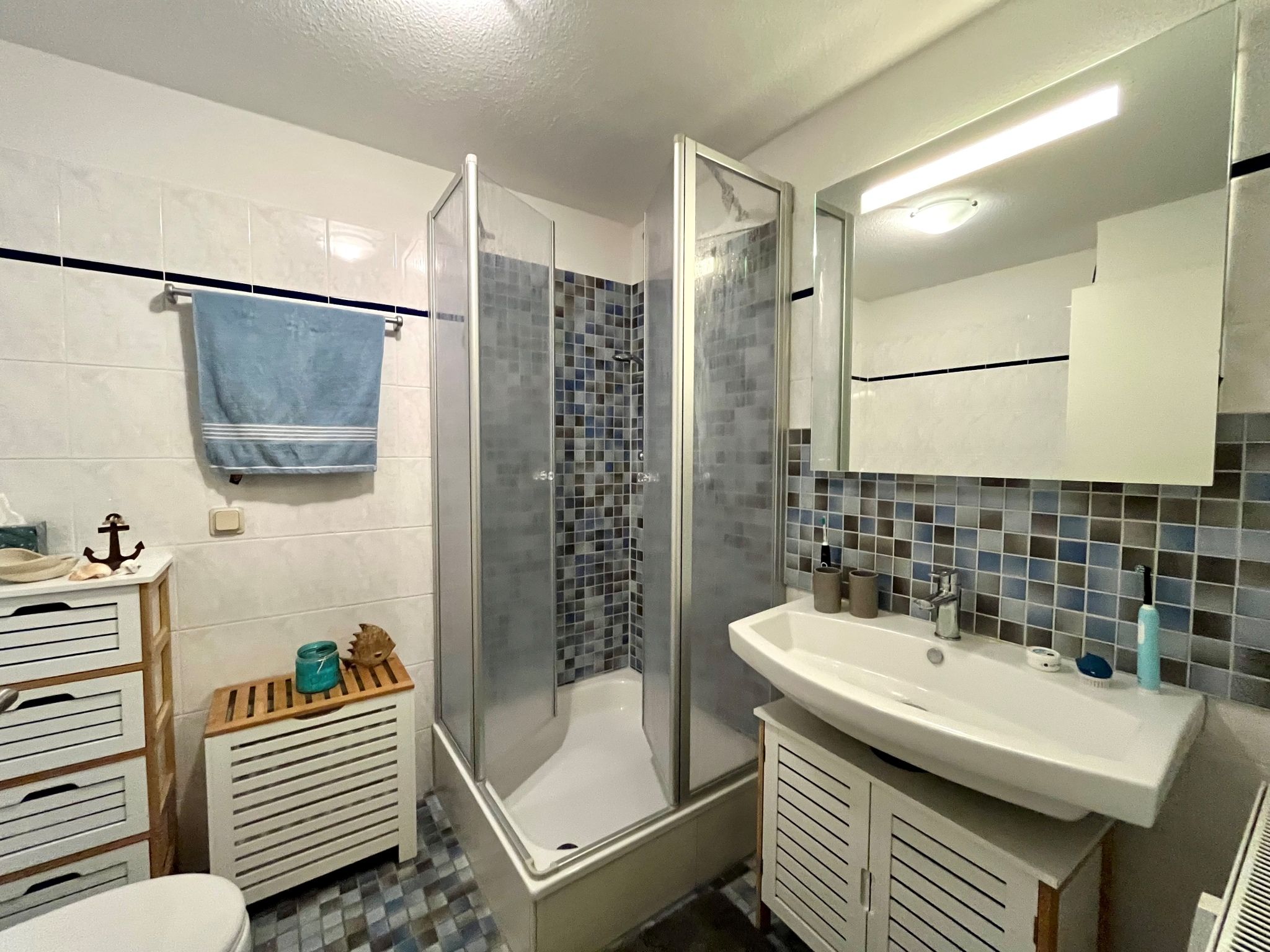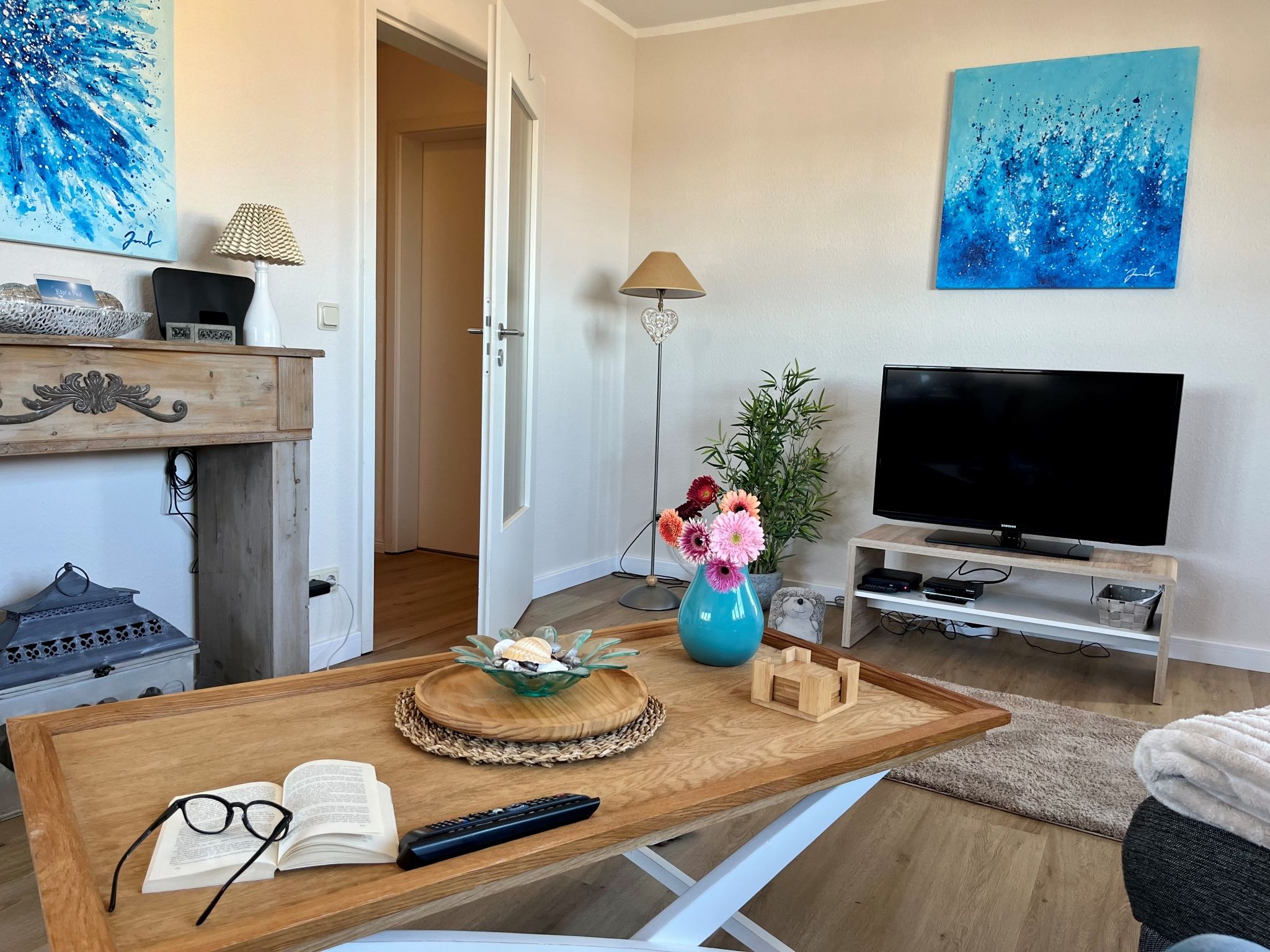 Die Balkontür ist mit einem Fliegengitter versehen. Die Wohnung verfügt über WLAN und ein Sat-TV mit HMDI-Anschluss.