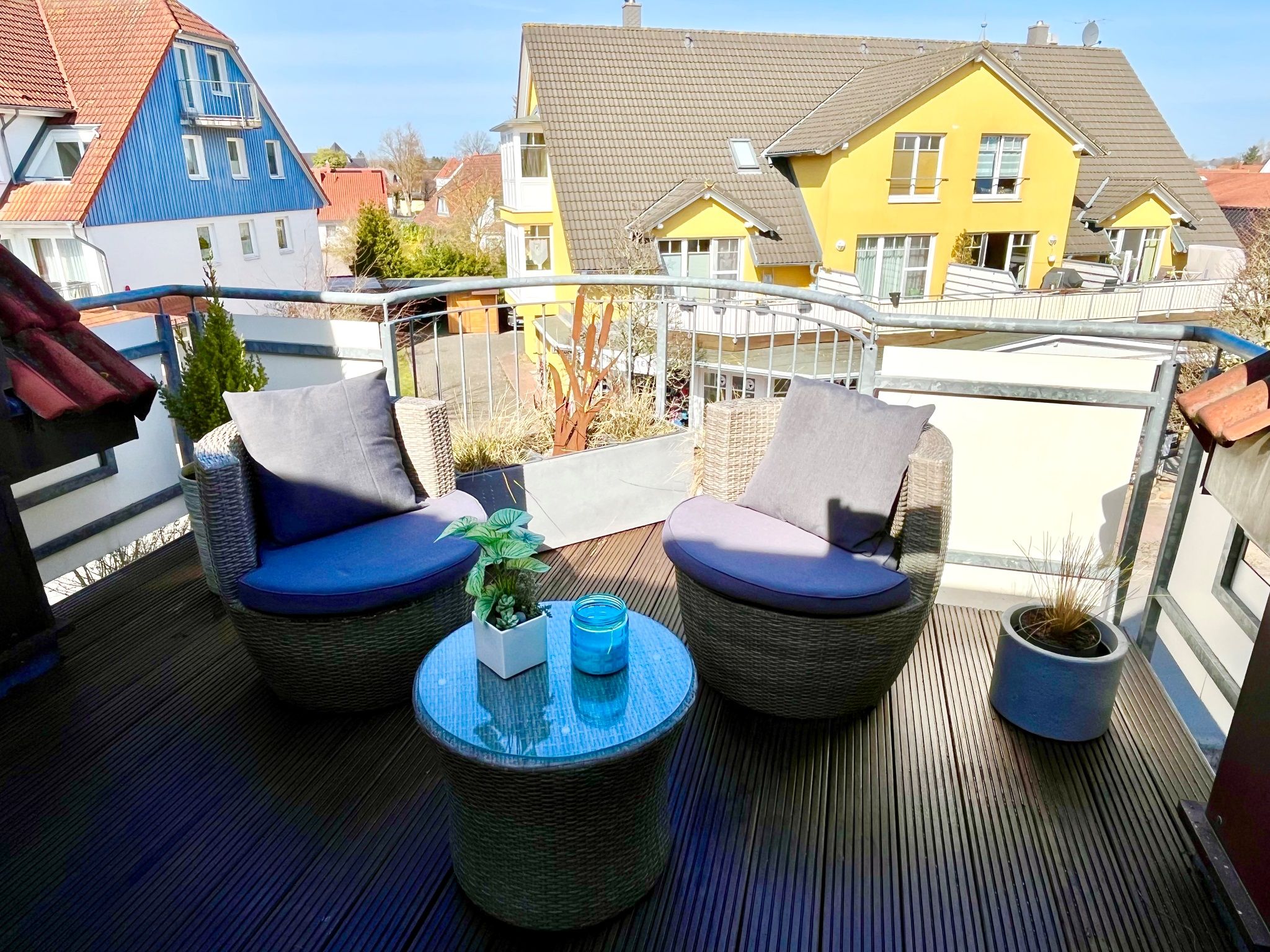 Die Wohnung verfügt über einen terrassenartigen Balkon mit Weitblick.