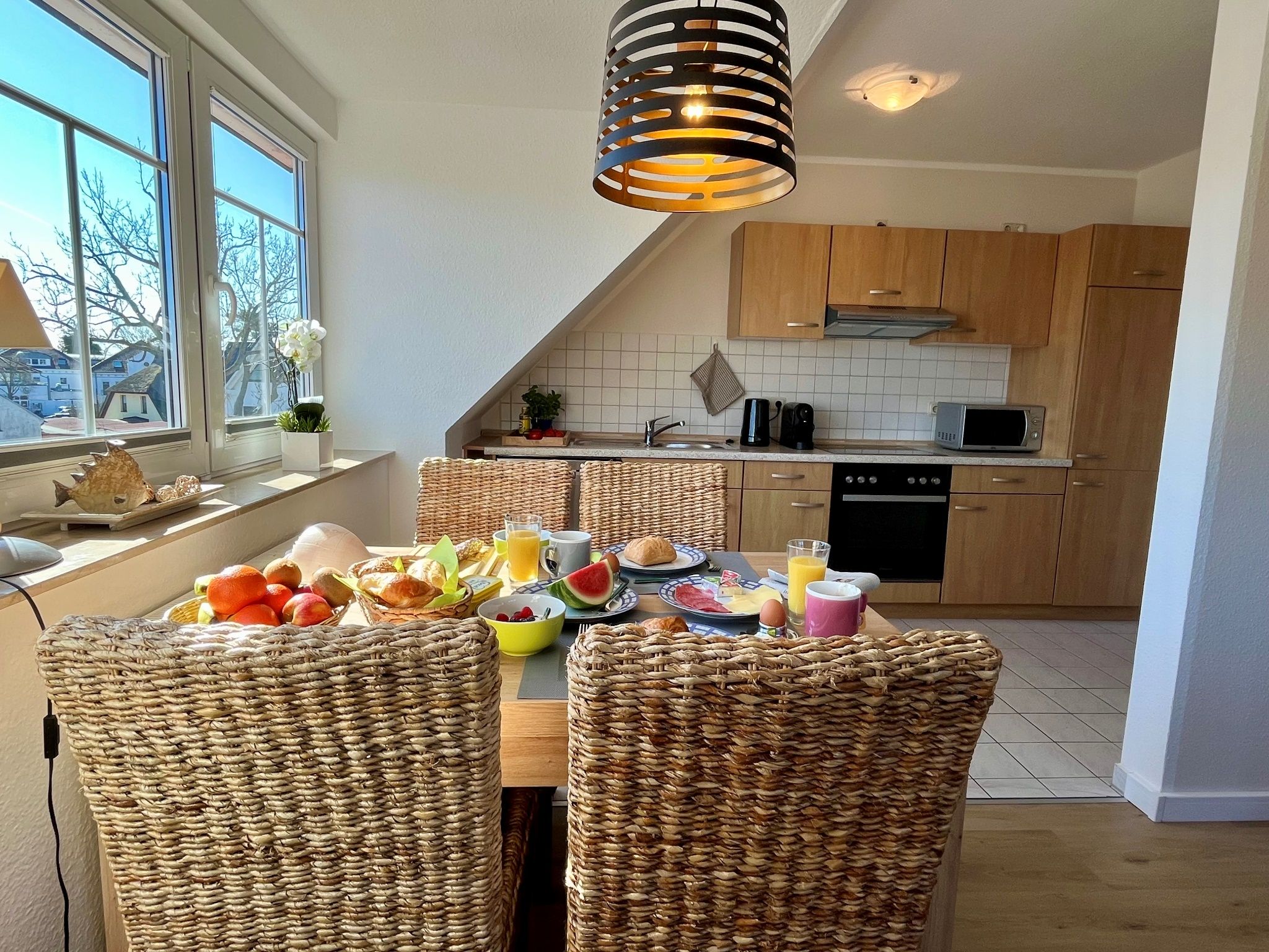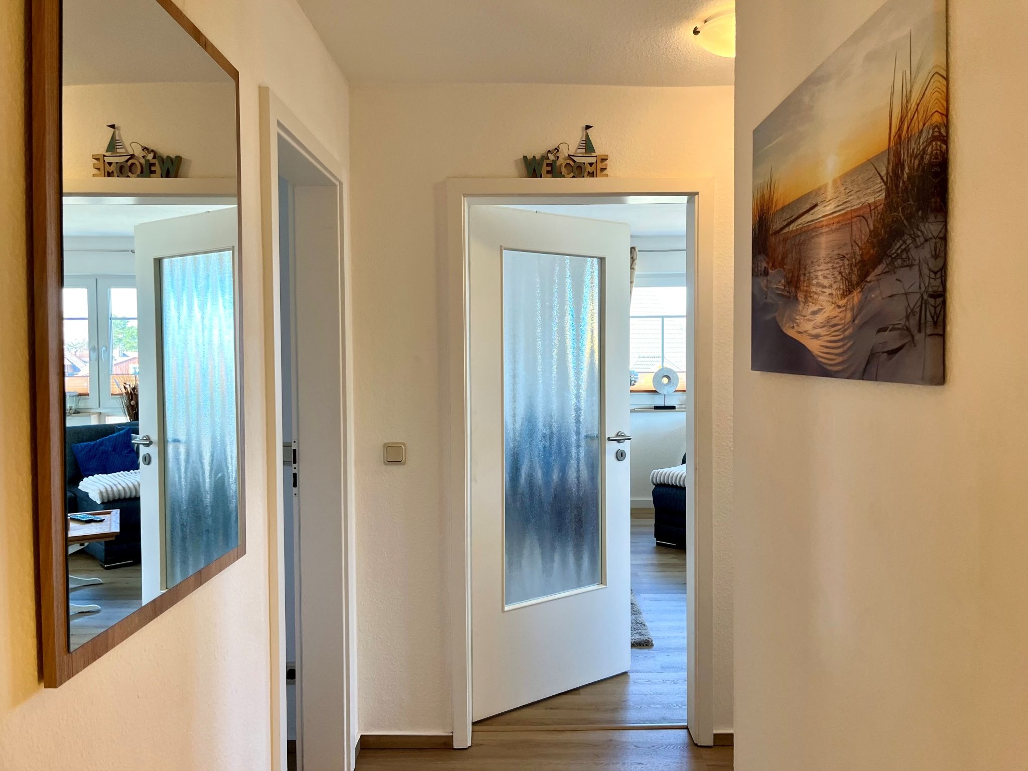 Die gut 56 m² große lichtdurchflutete Wohnung liegt in der 2. Etage und kann mit bis zu 2 Erwachsenen und einem Kind angemietet werden.