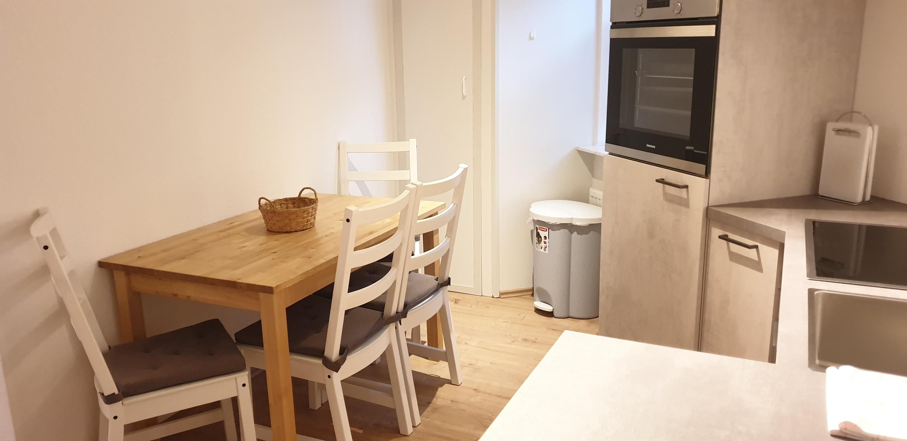 Der helle Wohnbereich ist offen gestaltet und geht direkt in die Küche über – ideal, um gemeinsam zu kochen, zu essen oder einfach die Beine hochzulegen. Die Küche ist mit allem ausgestattet, was du brauchst: Cerankochfeld, Backofen, Spülmaschine, Mikrowelle – und natürlich ausreichend Geschirr und Koch-Utensilien für deinen Urlaub. Am Esstisch finden alle bequem Platz.