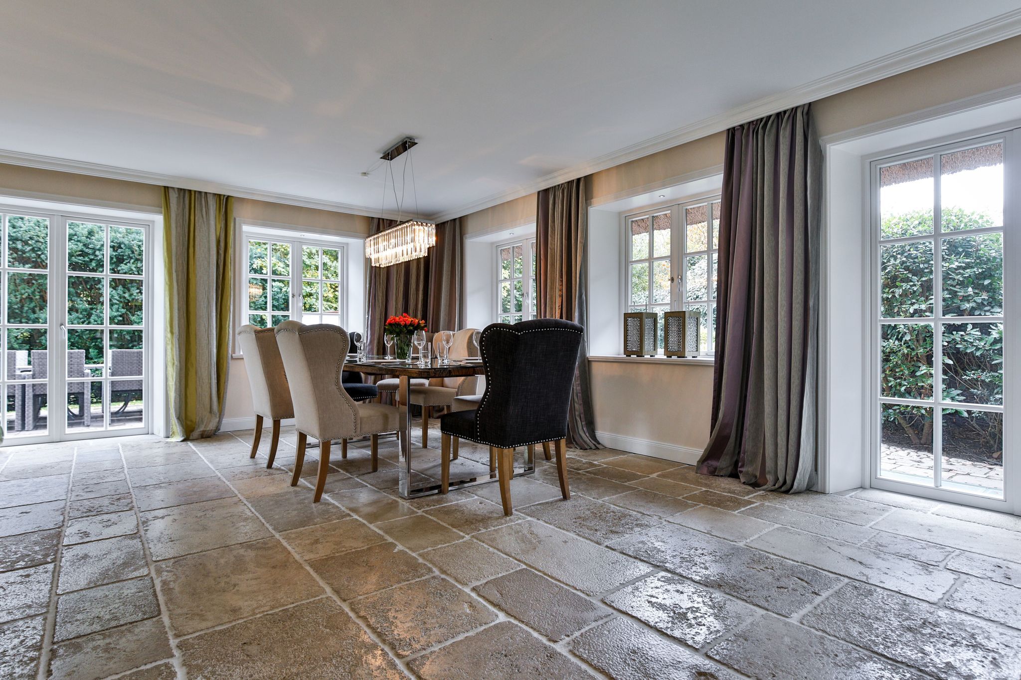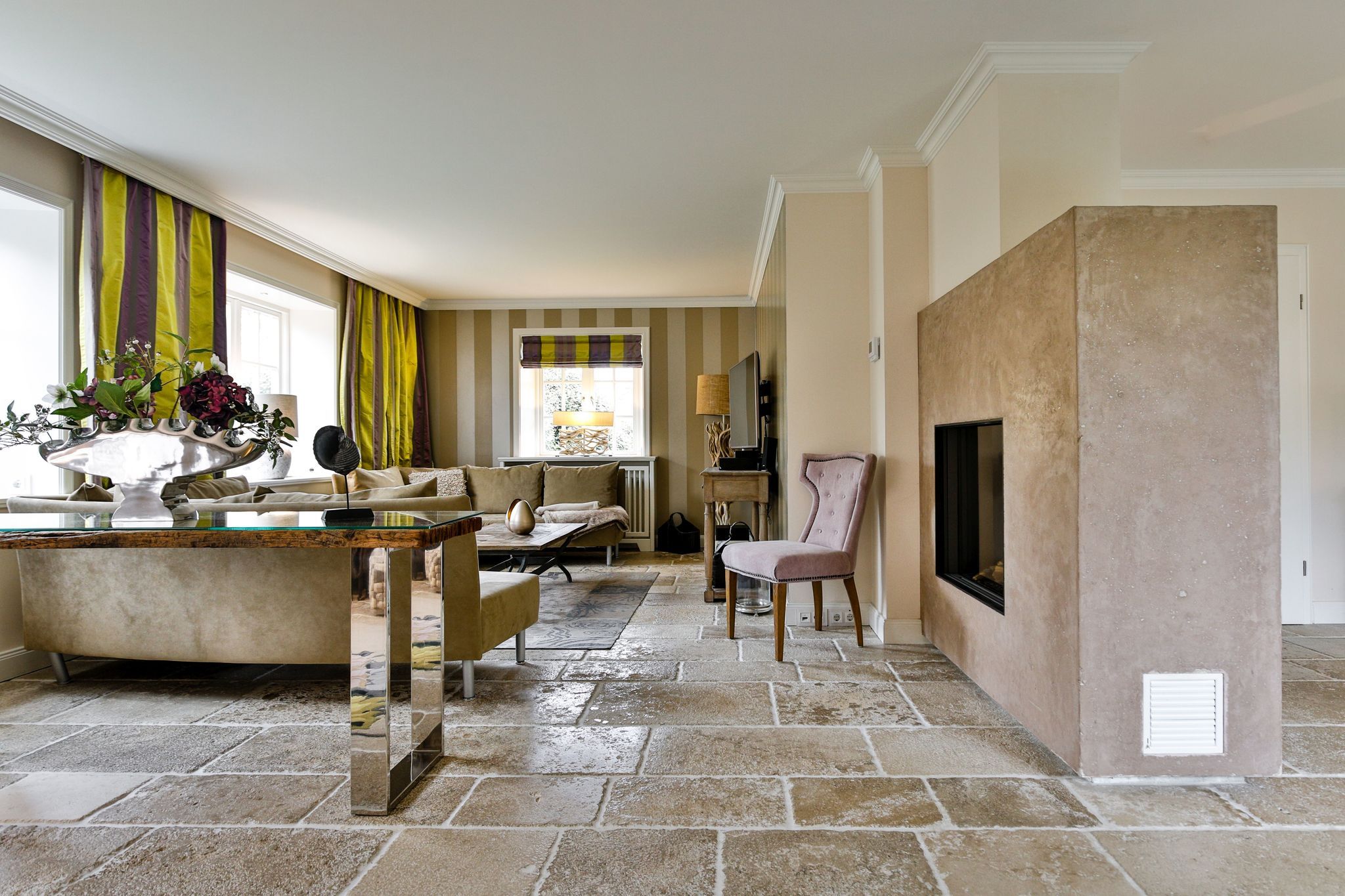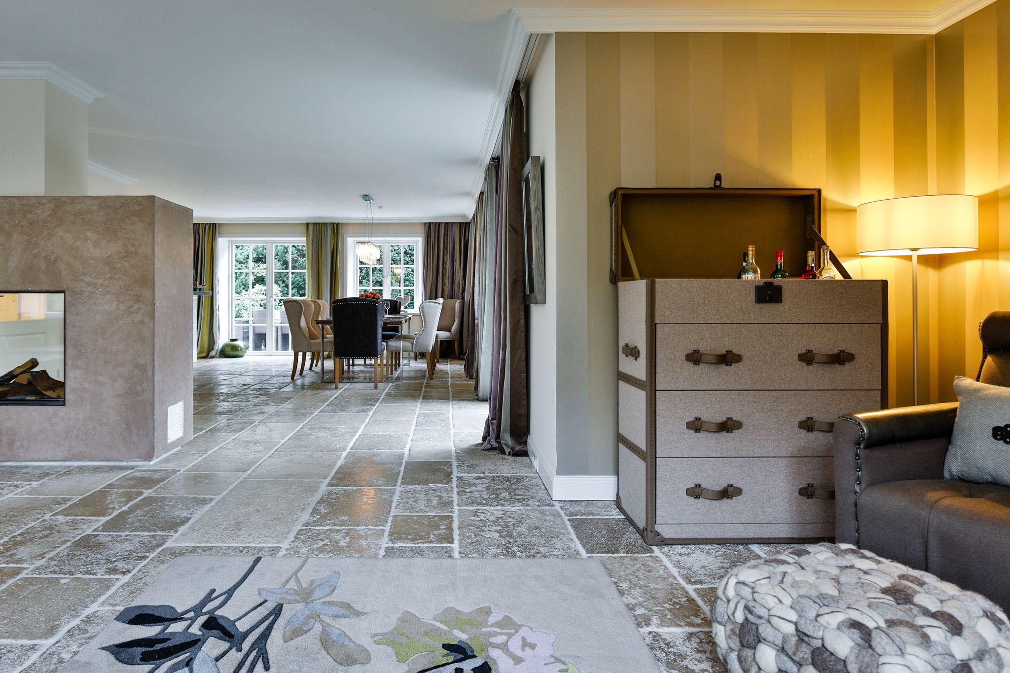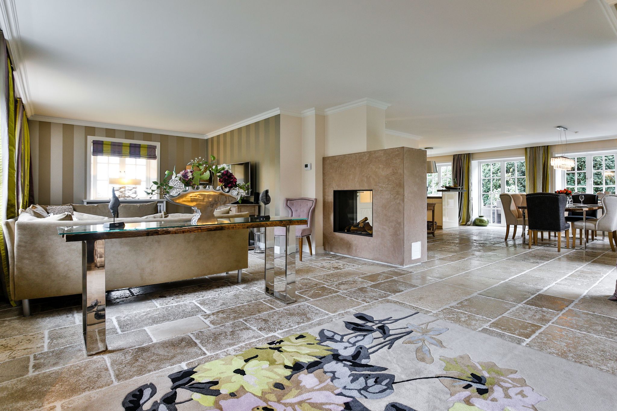 Wohn-/Essbereich: Essbereich mit großem Tisch mit 8 Stühlen für die ganze Familie, geräumiger Wohnbereich mit zwei großen Couchecken sowie zwei Sesseln am doppelseitigen, dekorativen Gaskamin