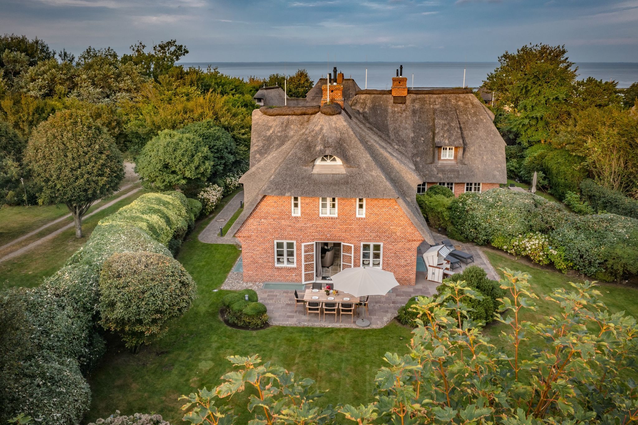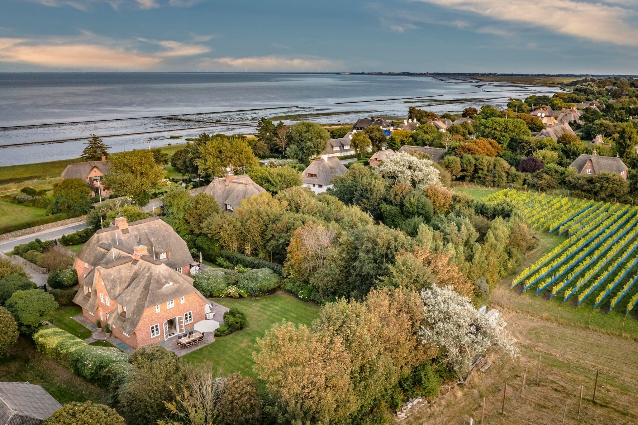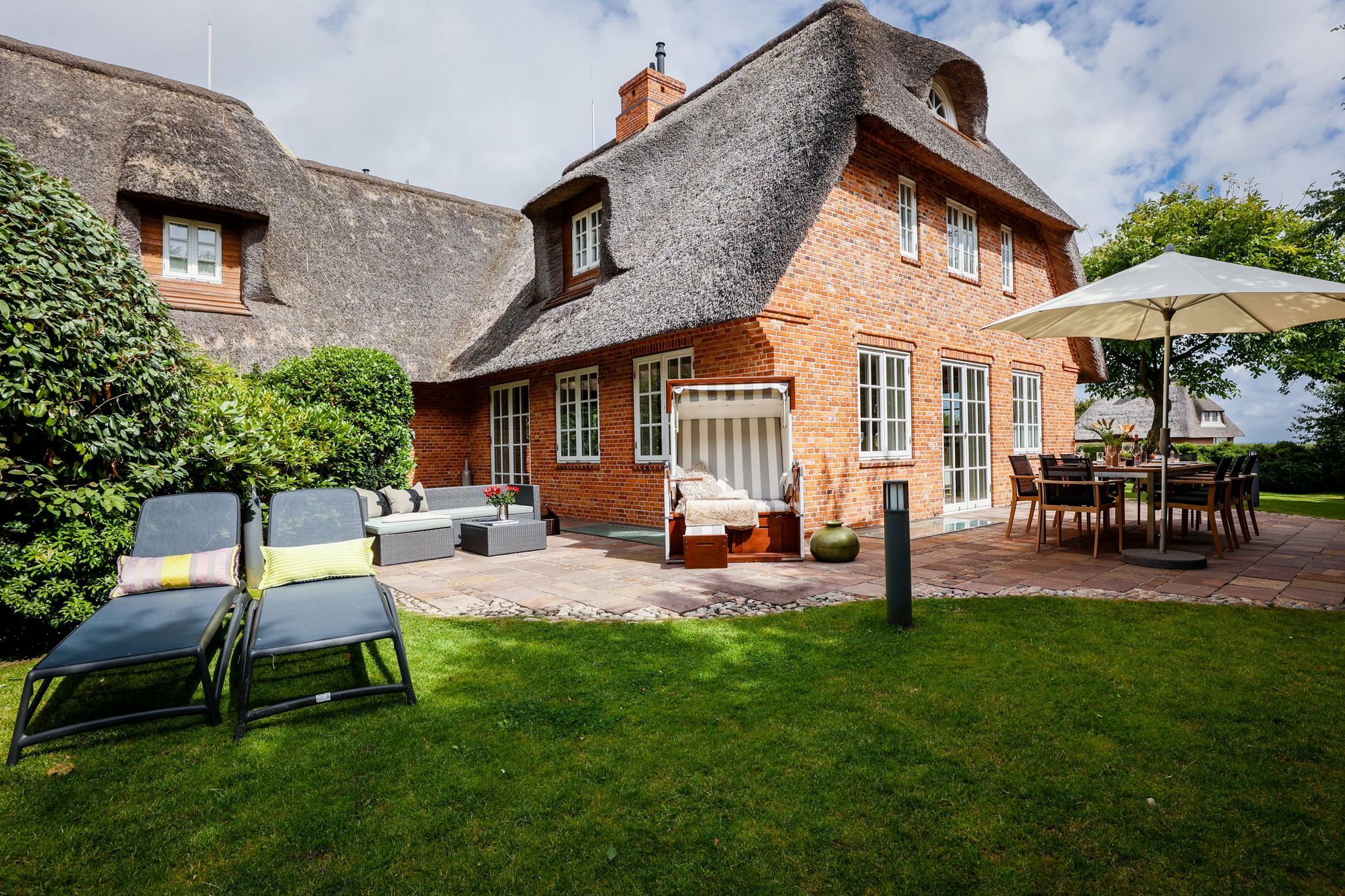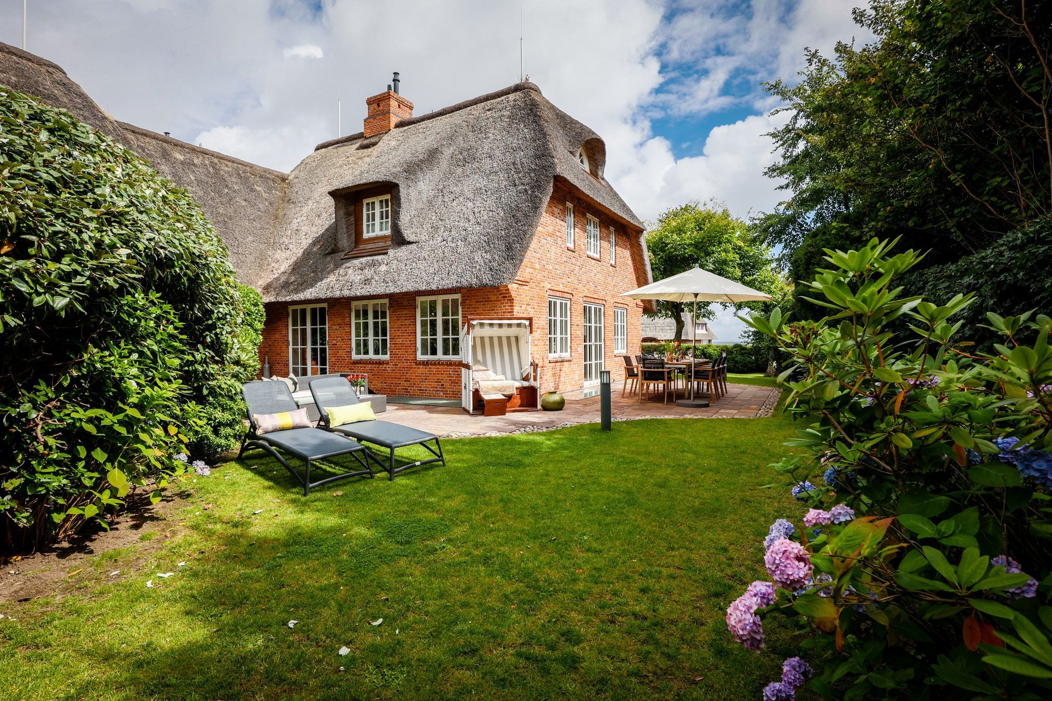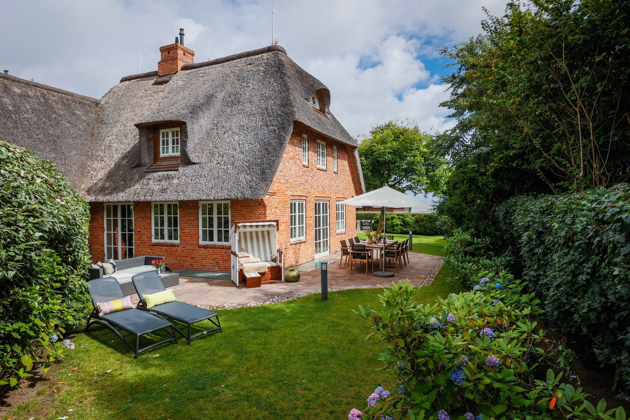 Das Haus ist hochwertig und exklusiv ausgestattet und von einem großzügigen Garten umgeben. Selbstverständlich ist dieses Haus mit 5 Sternen des DTV klassifiziert. Diese mit Reet gedeckte Doppelhaushälfte mit Einzelhaus-Charakter liegt fußläufig zur Keitumer St. Severin und in unmittelbarer Nähe zum Wattenmeer. Der Blick auf das Wattenmeer ist traumhaft. Das helle und großzügige Haus über drei Ebenen (EG, OG, Souterrain) ist ca. 280 m² groß und bietet zwei bis acht Personen ausreichend Platz. Das geräumige und hochwertige Objekt liegt auf einem insgesamt etwa 1.000 m² Grundstück südlich der St. Severin Kirche in Keitum. Das exklusive Doppelhaus wurde mit aufgearbeiteten Ziegelsteinen von 1886 erbaut. Die Räumlichkeiten im Erdgeschoß sind mit großflächigen sehr hochwertigen Natur Limestone ausgelegt, im Obergeschoß liegen Echtholzeichendielen, das gesamte Souterrain und die Bäder sind ebenfalls mit Limestone und Holzboden verlegt. Im Erdgeschoss und im Souterrain ist jeweils eine Fussbodenerwärmung integriert, zusätzlich sind auch Heizkonvektoren in allen Räumen angebracht. Auf allen Ebenen finden Sie hochwertige Tischlereinbauten. Darüber hinaus bietet das Haus jeglichen Komfort wie Sauna mit Ruheraum, Gaskamin, Flat-TV's (streamingfähig) mit Soundbar, WLAN (High-Speed Internet), alle Schlafzimmer und Wohnzimmer mit Flachbildschirmen, Alarmanlage, Geschirrspüler, Mikrowelle, Backofen, Kühlschrank, Nespresso Kaffeemaschine, Soda-Stream, Induktionsherd,Hauswirtschaftsraum mit Waschmaschine und Trockner, Safe und zwei Pkw-Stellplätze. Bademäntel sind für Sie in diesem Domizil kostenfrei. Die Betten sind jeweils 1,80 x 2,00 m. Das Haus ist von einem großzügigen gepflegten Garten mit zwei Terrassen und Friesenwällen umgeben.