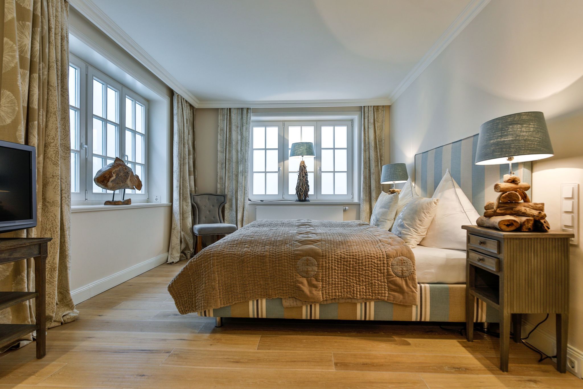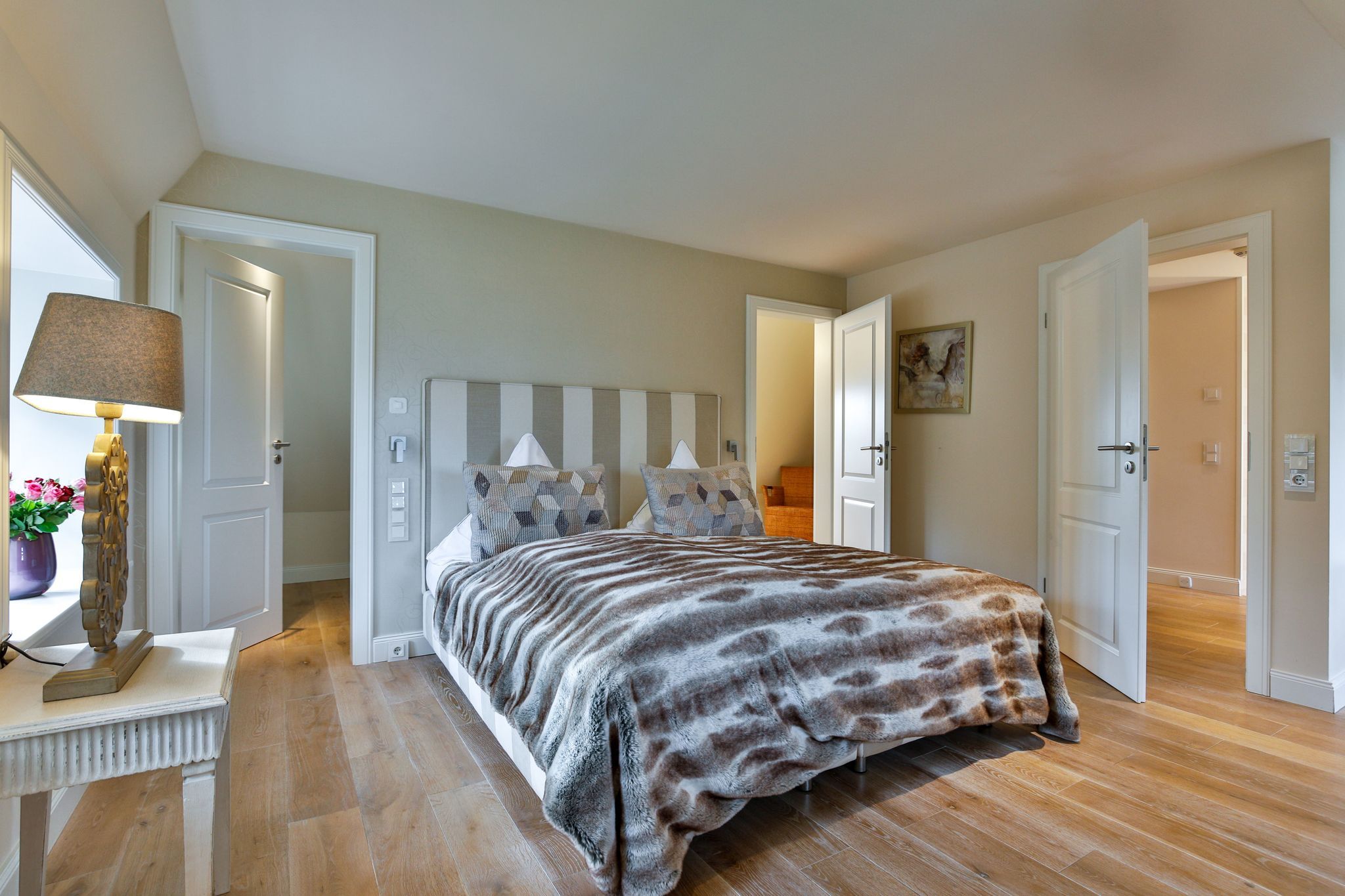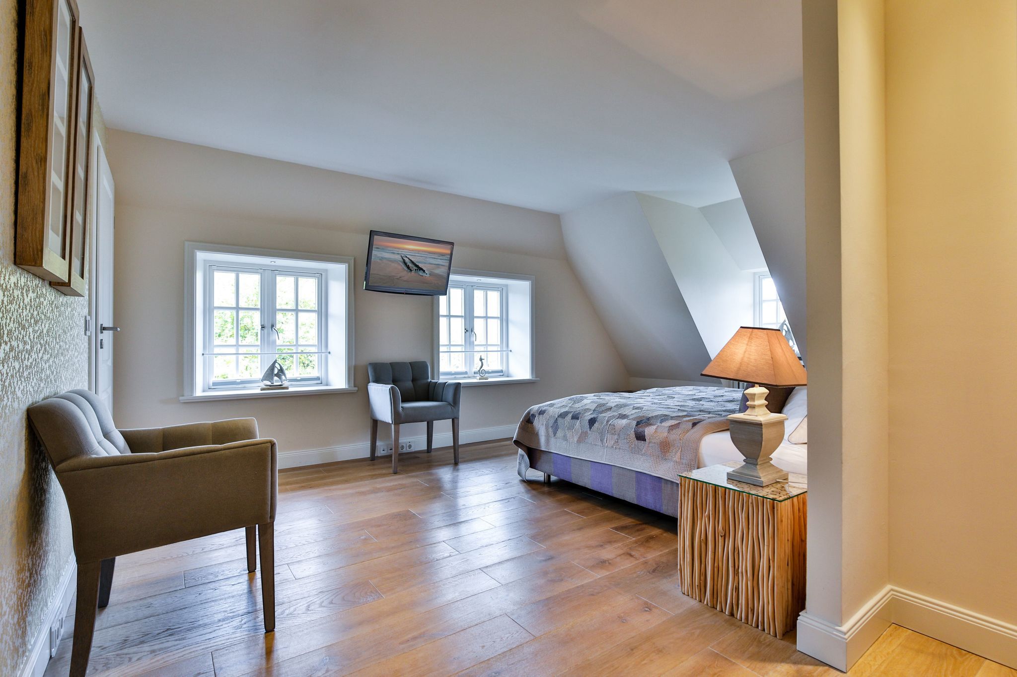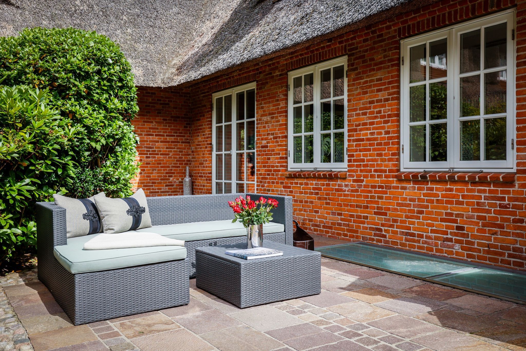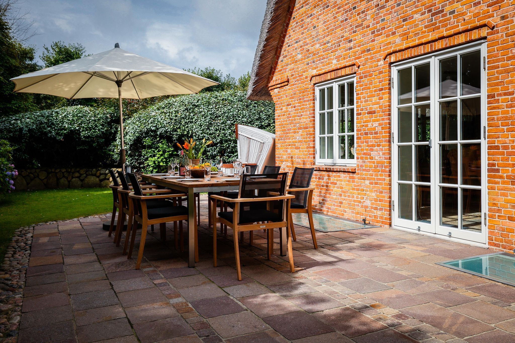 Das Haus ist hochwertig und exklusiv ausgestattet und von einem großzügigen Garten umgeben. Selbstverständlich ist dieses Haus mit 5 Sternen des DTV klassifiziert. Diese mit Reet gedeckte Doppelhaushälfte mit Einzelhaus-Charakter liegt fußläufig zur Keitumer St. Severin und in unmittelbarer Nähe zum Wattenmeer. Der Blick auf das Wattenmeer ist traumhaft. Das helle und großzügige Haus über drei Ebenen (EG, OG, Souterrain) ist ca. 280 m² groß und bietet zwei bis acht Personen ausreichend Platz. Das geräumige und hochwertige Objekt liegt auf einem insgesamt etwa 1.000 m² Grundstück südlich der St. Severin Kirche in Keitum. Das exklusive Doppelhaus wurde mit aufgearbeiteten Ziegelsteinen von 1886 erbaut. Die Räumlichkeiten im Erdgeschoß sind mit großflächigen sehr hochwertigen Natur Limestone ausgelegt, im Obergeschoß liegen Echtholzeichendielen, das gesamte Souterrain und die Bäder sind ebenfalls mit Limestone und Holzboden verlegt. Im Erdgeschoss und im Souterrain ist jeweils eine Fussbodenerwärmung integriert, zusätzlich sind auch Heizkonvektoren in allen Räumen angebracht. Auf allen Ebenen finden Sie hochwertige Tischlereinbauten. Darüber hinaus bietet das Haus jeglichen Komfort wie Sauna mit Ruheraum, Gaskamin, Flat-TV's (streamingfähig) mit Soundbar, WLAN (High-Speed Internet), alle Schlafzimmer und Wohnzimmer mit Flachbildschirmen, Alarmanlage, Geschirrspüler, Mikrowelle, Backofen, Kühlschrank, Nespresso Kaffeemaschine, Soda-Stream, Induktionsherd,Hauswirtschaftsraum mit Waschmaschine und Trockner, Safe und zwei Pkw-Stellplätze. Bademäntel sind für Sie in diesem Domizil kostenfrei. Die Betten sind jeweils 1,80 x 2,00 m. Das Haus ist von einem großzügigen gepflegten Garten mit zwei Terrassen und Friesenwällen umgeben.