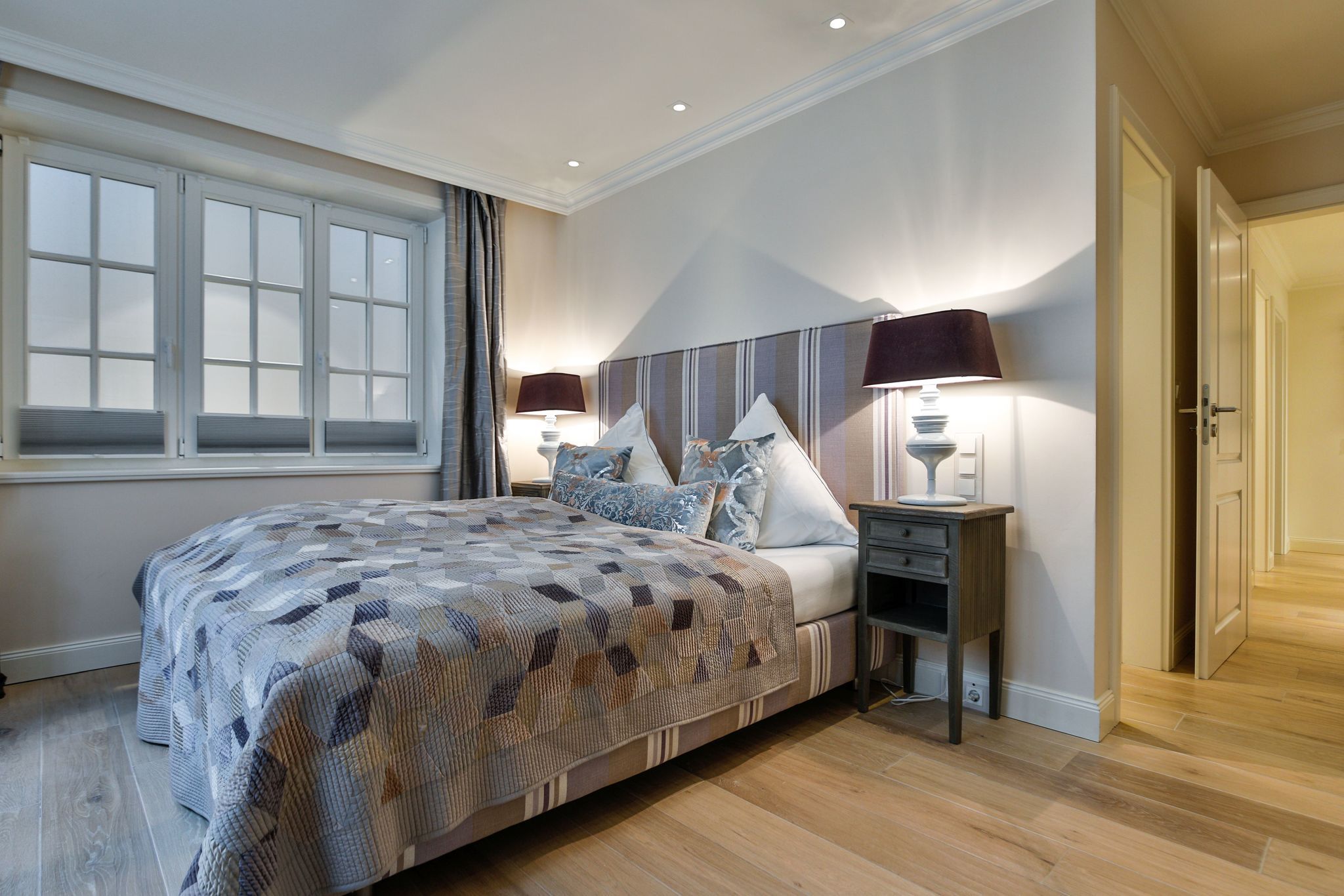 Schlafen 2: geräumiger Schlafraum mit Doppelbett (180cmx200cm), Einbauschrank und TV traumhafter Blick vom Bett zur Kirche St. Severin