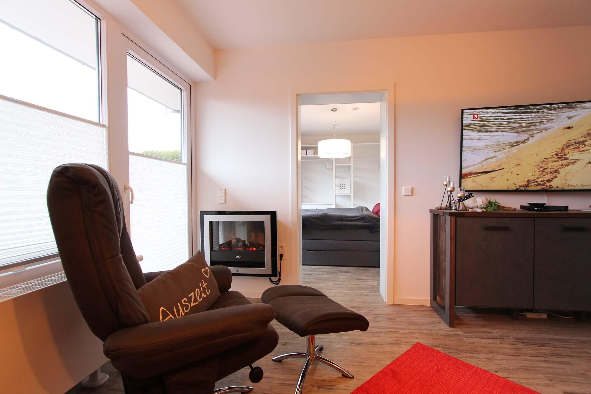 Sollte das Wetter einmal nicht mitspielen, können Sie und Ihre Liebsten sich im gemütlich eingerichteten Wohnzimmer an den knisternden Kamin setzen und mit Gesellschaftsspielen, dem 55 Zoll-Smart-TV oder Blue-Ray-Player und Musikanlage die Zeit vertreiben. Im Kinderzimmer und im Schlafzimmer sind ebenfalls Fernseher vorhanden. Spiele und Bücher liegen für die ganze Familie bereit.
