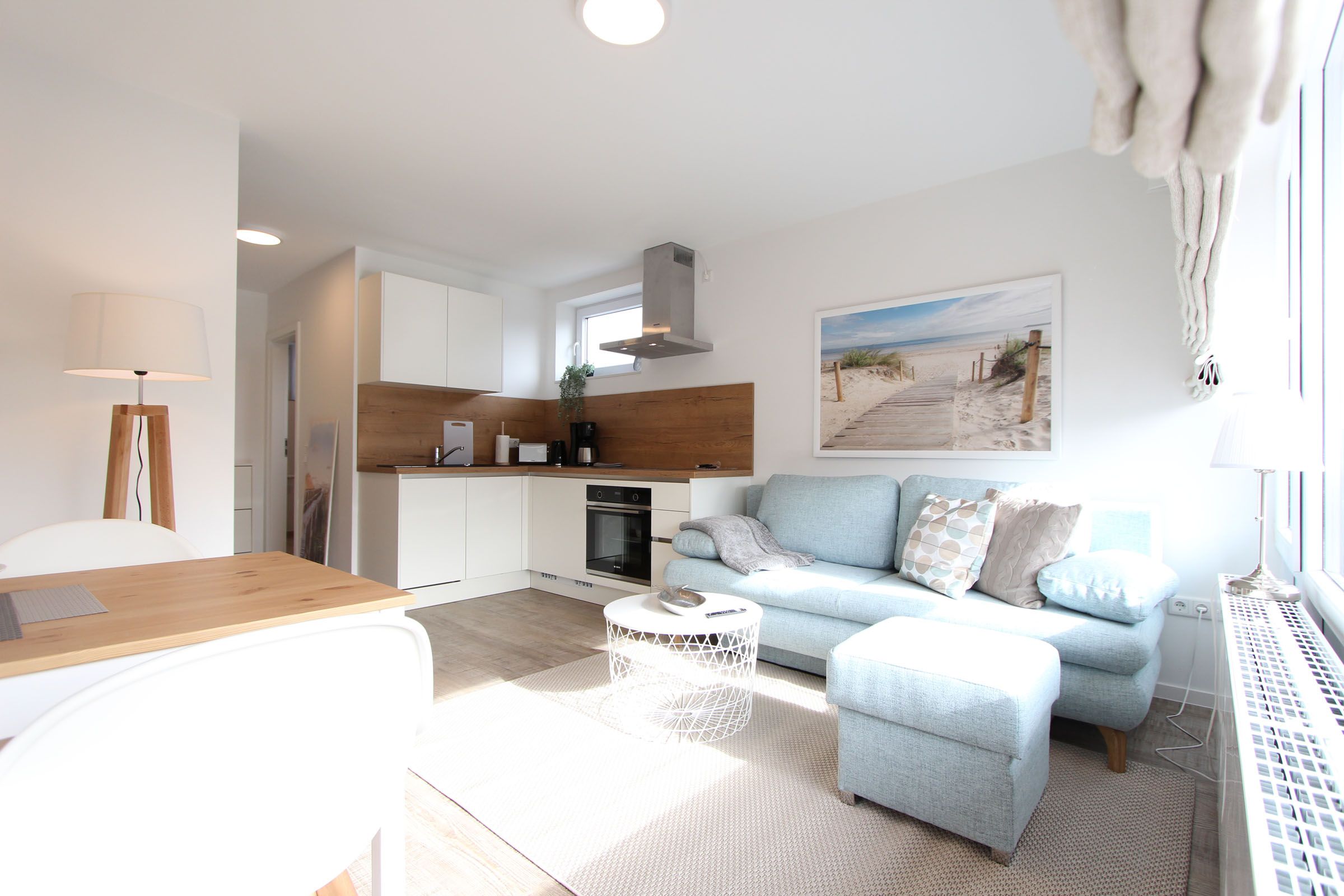 In unserer Ferienwohnung „Meerzeit OG links“ in Kellenhusen genießen Sie unbeschwerte Ferientage mit der Familie. Hier dürfen Sie gern Abschalten vom Alltag: Die Obergeschosswohnung ist freundlich und modern eingerichtet und verfügt über eine gehobene Ausstattung, welche auf zwei Etage aufgeteilt ist. Ambiente und Einrichtung lassen keine Wünsche offen, liebevolle Details machen Ihren Aufenthalt zu einem ganz besonderen Erlebnis – zu jeder Jahreszeit. Nur wenige Gehminuten von der Ostsee erwartet Sie auf 48 m² für vier Personen alles, was Sie für einen wunderbaren Urlaub benötigen.