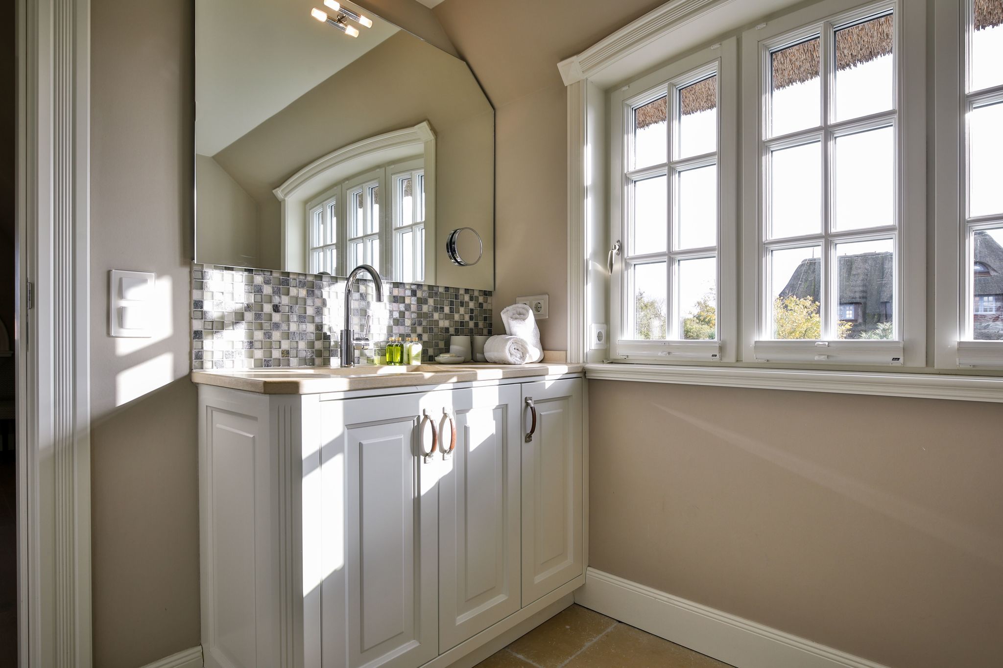 Das Haus ist hochwertig und exklusiv ausgestattet und von einem großzügigen Garten mit bepflanzten Friesenwällen umgeben. Selbstverständlich ist dieses Haus mit 5 Sternen des DTV klassifiziert. Das in 2014 fertiggestellte Haus wurde mit antiken Rotziegeln gemauert und ist von bepflanzten Friesenwällen und großzügiger Rasenfläche umrahmt. Das helle und großzügige Haus über drei Ebenen (EG, OG, Souterrain) ist ca. 234 m² groß und bietet zwei bis acht Personen ausreichend Platz. Dieses Haus lebt von seiner offenen und großzügigen Raumaufteilung. So wird nahezu das komplette Erdgeschoss genutzt für einen kombinierten Wohn- und Essraum mit Kamin und offener Küche. Die Schlafzimmer im Obergeschoss bekommen ihren besonderen Charakter durch die nach oben offenen Giebel. Im Souterrain lädt eine Sauna inkl. Ruheraum zum Entspannen ein. Die Räumlichkeiten im Erdgeschoß sind mit großflächigen sehr hochwertigen Natur Limestone ausgelegt, im Obergeschoß liegen Echtholzeichendielen, der gesamte Souterrain und die Bäder sind ebenfalls mit Limestone verlegt. Das gesamte Haus ist mit modernen und hochwertigen Interieur eingerichtet. Im Erdgeschoss und im Souterrain in den Bädern ist jeweils eine Fußbodenerwärmung integriert, zusätzlich sind auch Heizkonvektoren in allen Räumen angebracht. Auf allen Ebenen finden Sie hochwertige Tischlereinbauten. Darüber hinaus bietet das Haus jeglichen Komfort wie Sauna, Kamin, Flat-TV, W-LAN, alle Schlafzimmer und Wohnzimmer mit Flachbildschirmen, Alarmanlage, Geschirrspüler, Soda-Stream, Mikrowelle, Backofen, Kühlschrank, Kaffeevollautomat von Jura, Induktionsherd, Hauswirtschaftsraum mit Waschmaschine und Trockner, Safe, zwei Pkw-Stellplätze. Kaminholz sowie Bademäntel sind für Sie als Gast inklusive und ebenfalls vor Ort im Domizil.