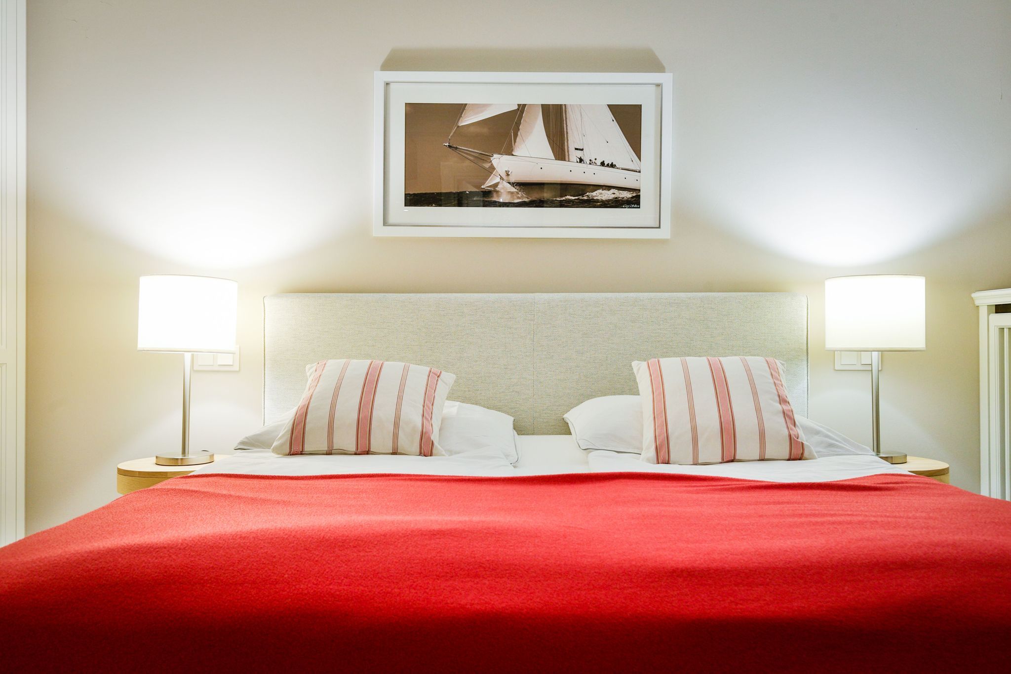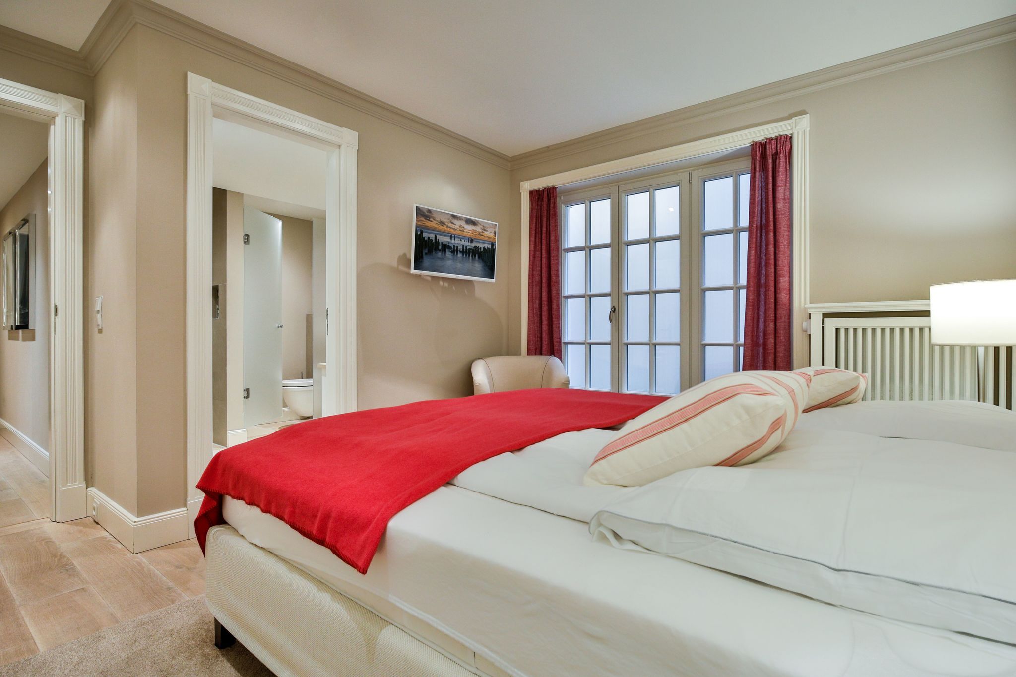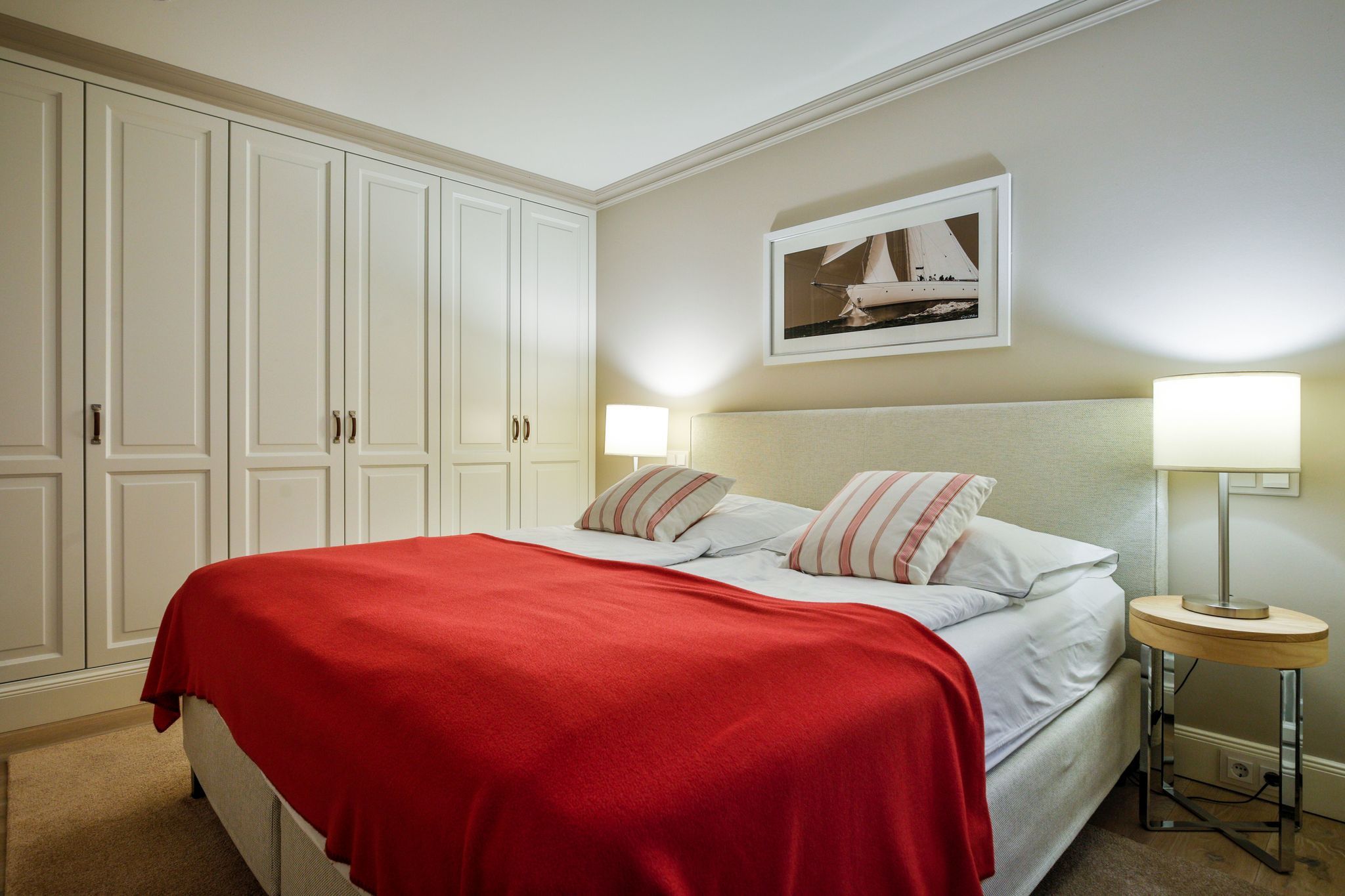 Schlafen 4: geräumiger Schlafraum mit Doppelbett und großem Einbauschrank und TV