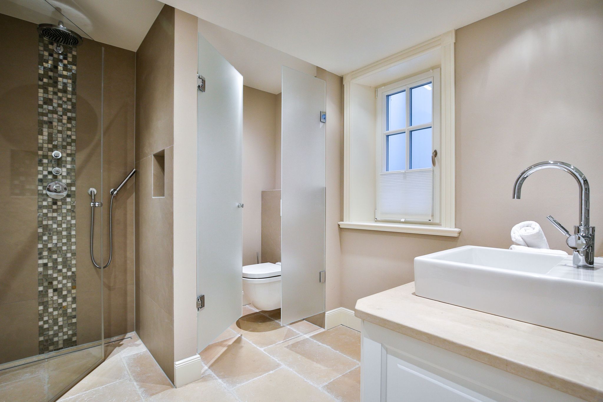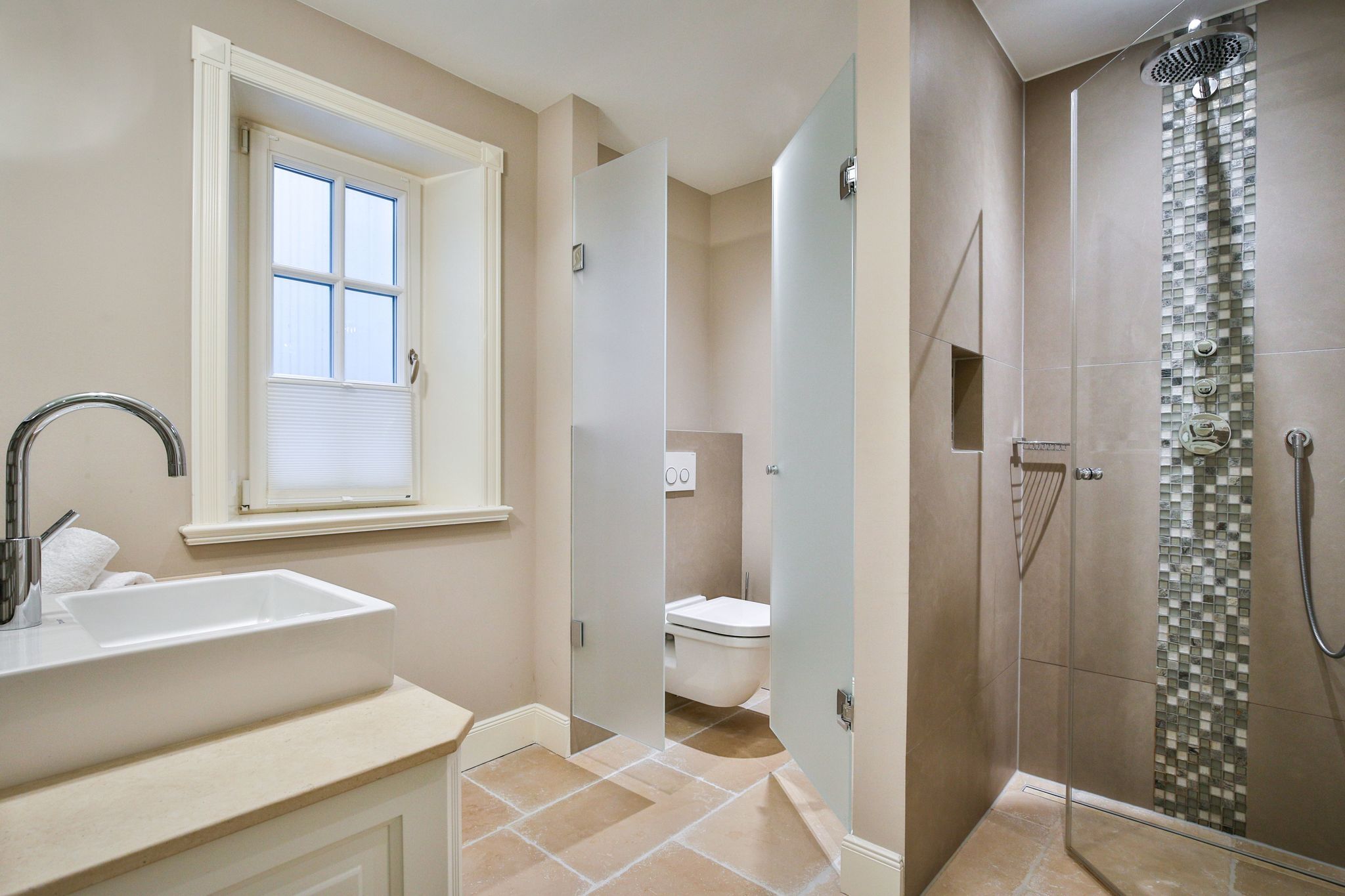 Bad 2: helles en Suite Duschbad mit Fußbodenheizung und Handtuchwärmer