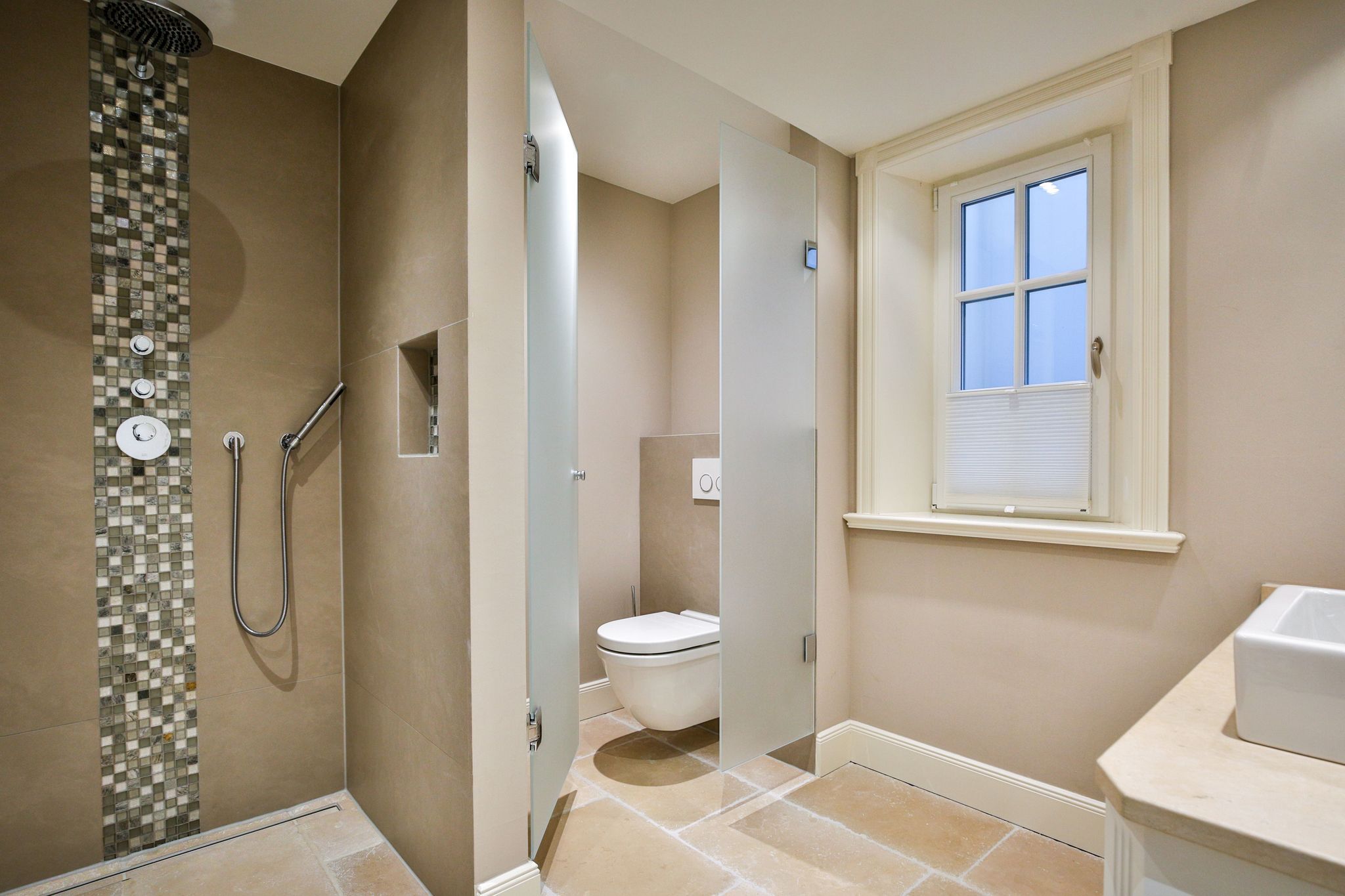 Bad 1: helles en Suite Duschbad mit Fußbodenheizung und Handtuchwärmer