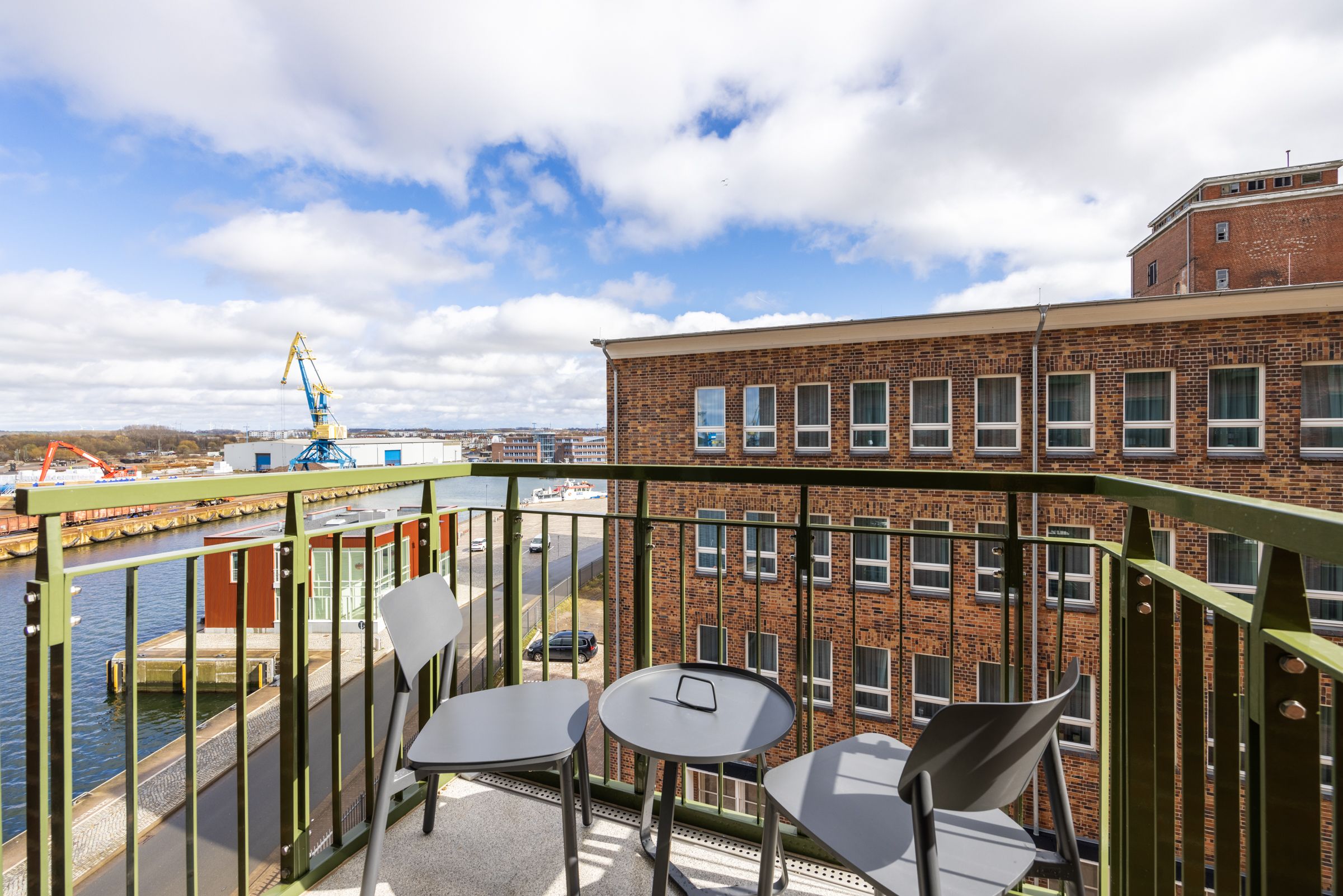 Das 42 m² große barrierearme 2-Zimmer Apartment ist für bis zu 4 Personen geeignet. Das moderne Apartment mit Balkon und seitlichem Blick auf den Hafen verfügt über kostenfreies WLAN.