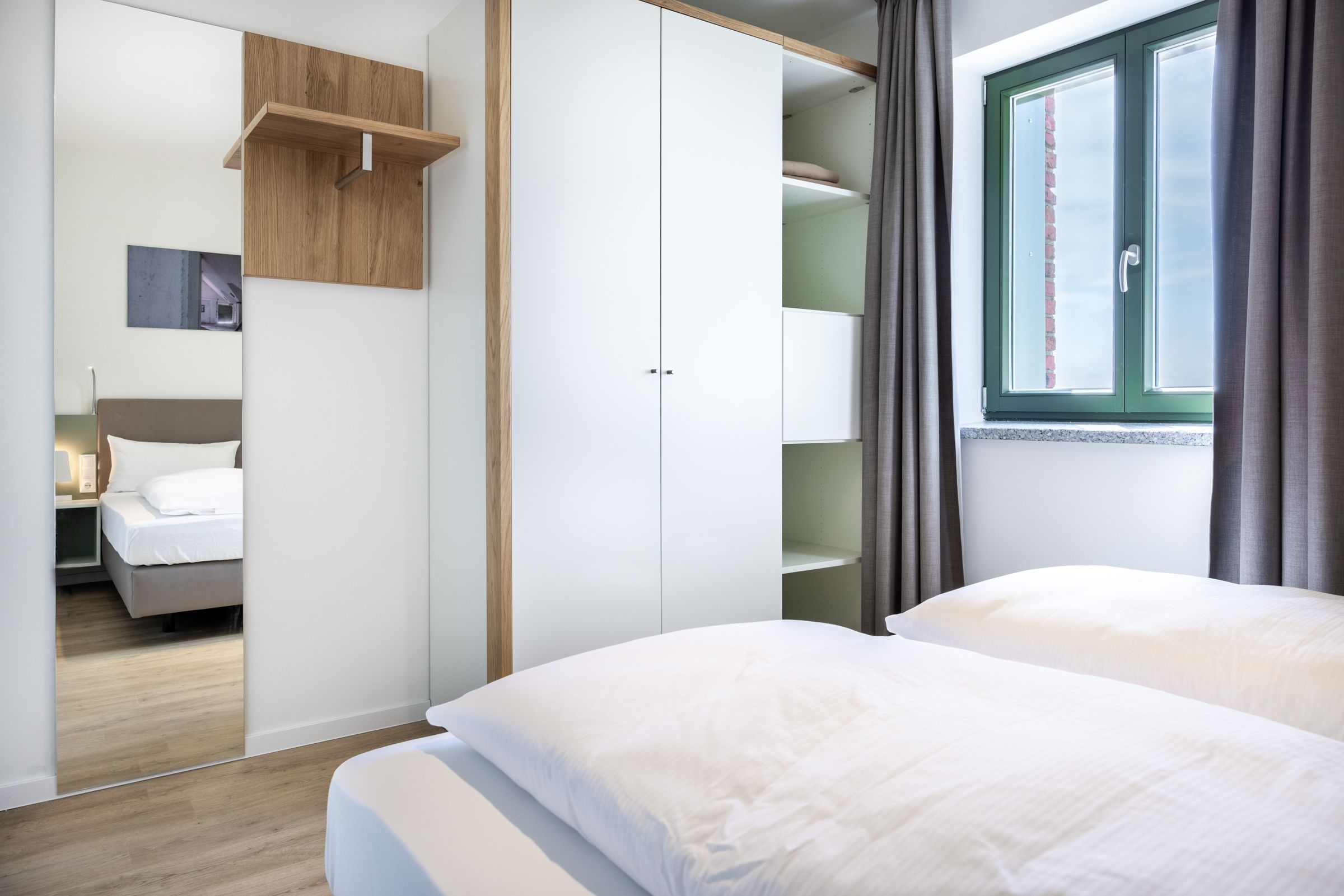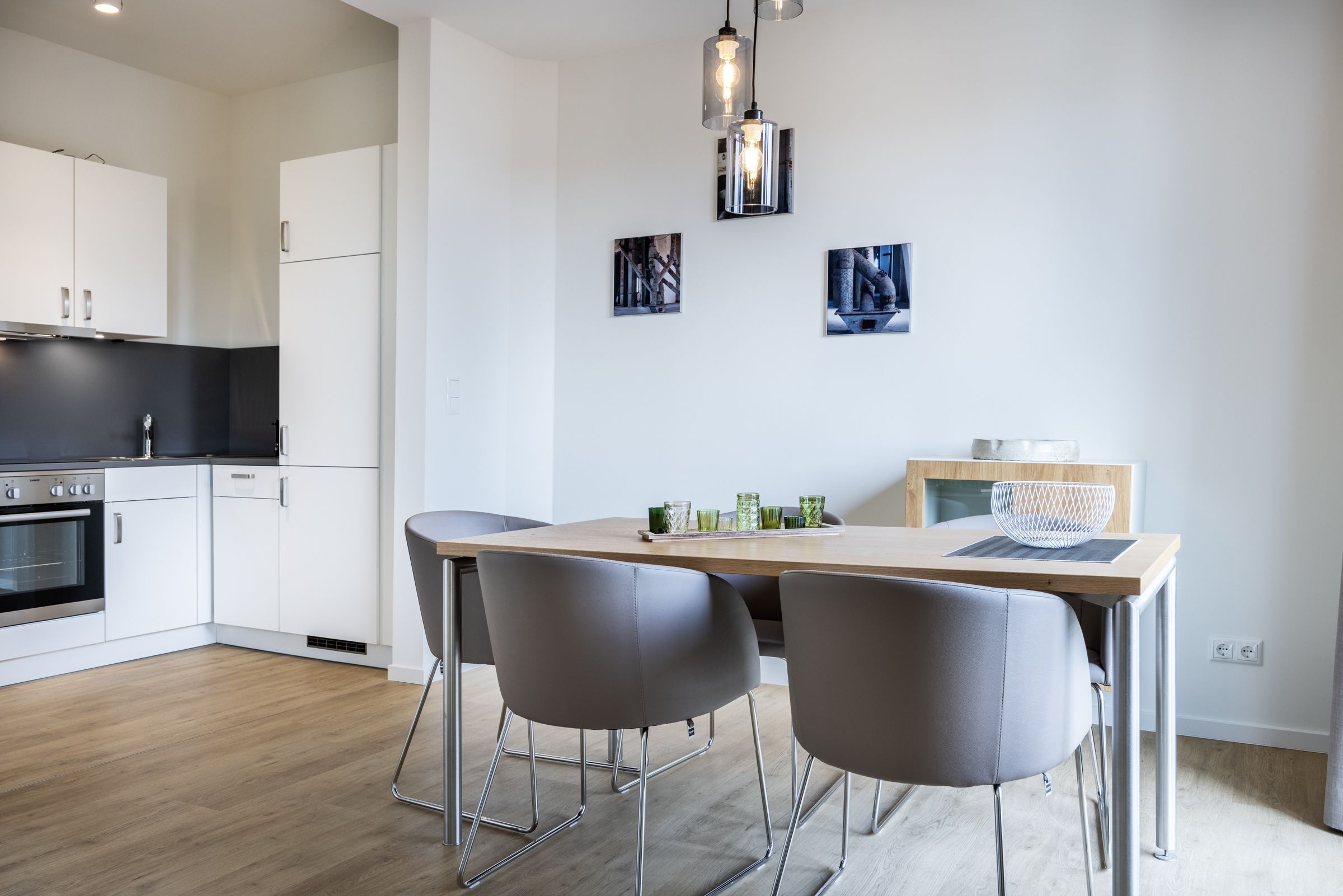 Das helle Apartment verfügt über bodentiefe Fenster, Fußbodenheizung, kostenfreies WLAN und eine voll ausgestattete offene Küche mit Geschirrspüler, Kühlschrank mit Tiefkühlfach, Herd mit 4 Glaskeramikkochfeldern und Backofen, Kaffeemaschine, Toaster, Wasserkocher und Mixstab. Im kombinierten Wohn-Essbereich befinden sich eine Doppelschlafcouch (1,40 x 2,00 m), ein Flatscreen-TV (42 Zoll), eine HiFi-Anlage sowie Gesellschaftsspiele. Beide Schlafzimmer beinhalten einen Flatscreen-TV (42 Zoll) sowie ein komfortables Boxspring-Doppelbett (1,80 x 2,00 m) bzw. ein Boxspring-Einzelbett (0,90 x 2,00 m). Im geschmackvollen Badezimmer stehen euch eine ebenerdige Regendusche, ein Waschtisch, WC, ein Handtuchwärmer sowie ein Föhn zur Verfügung. Das Apartment verfügt über einen Safe für eine Laptopgröße bis ca. 17 Zoll. Ein Kinderbett kann gegen Entgelt im kleinen Schlafzimmer aufgestellt werden. Haustiere sind in diesem Apartment herzlich willkommen.