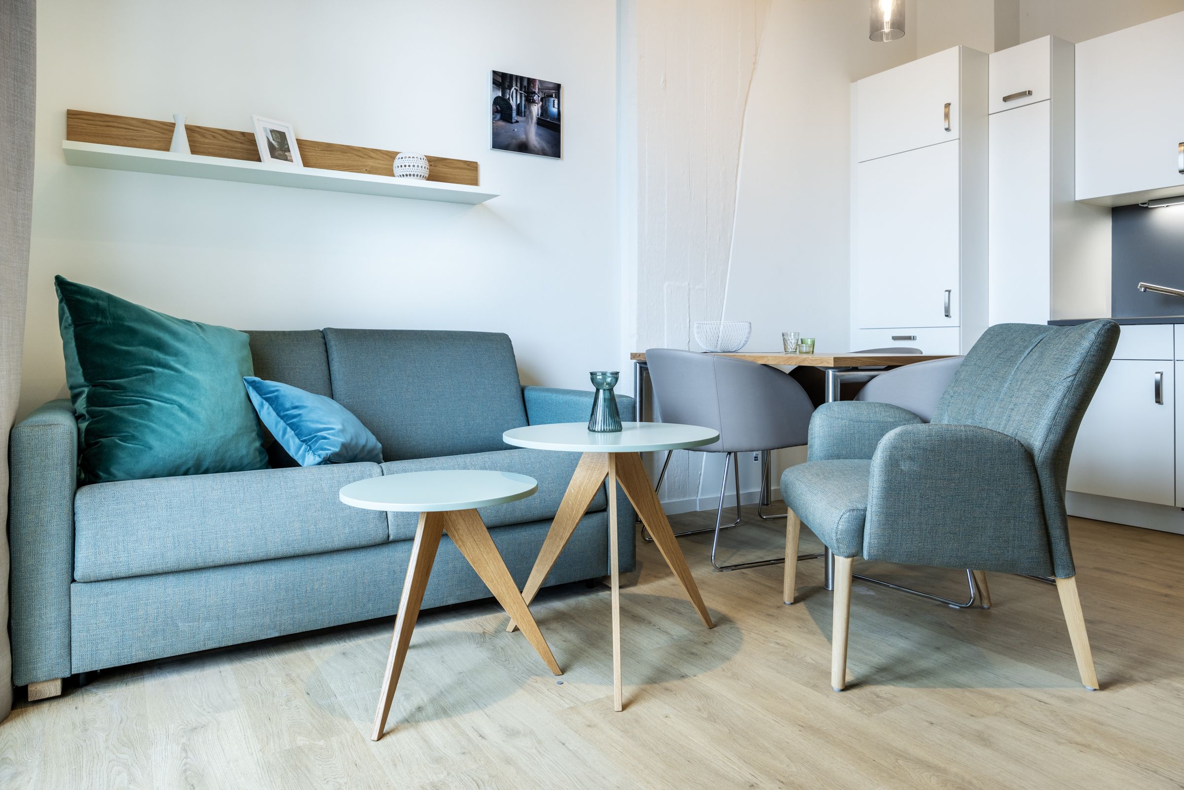 Das 34 m² große barrierearme 2-Zimmer Apartment ist für bis zu 3 Personen geeignet. Das moderne Apartment mit Balkon und Hafenblick verfügt über kostenfreies WLAN.