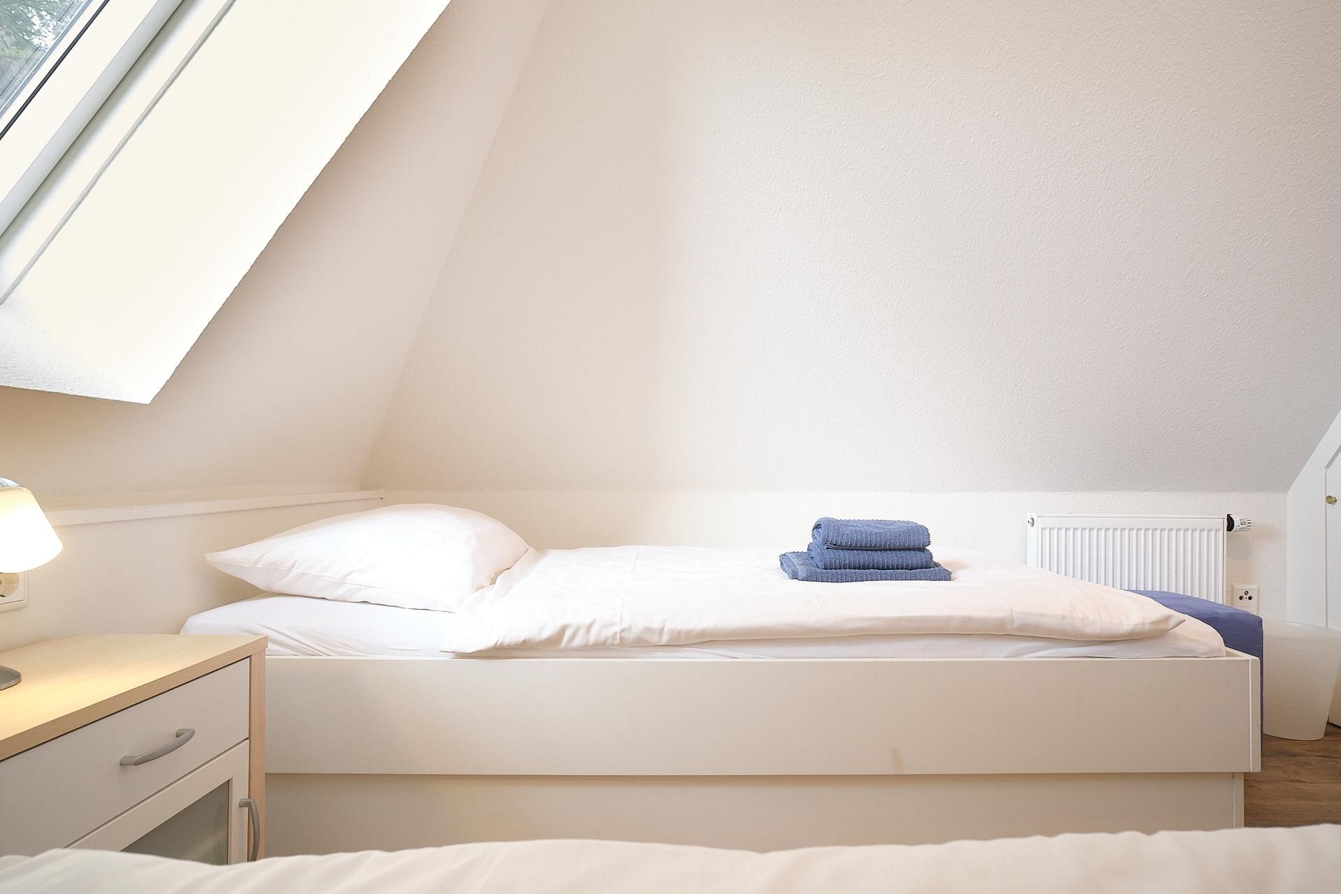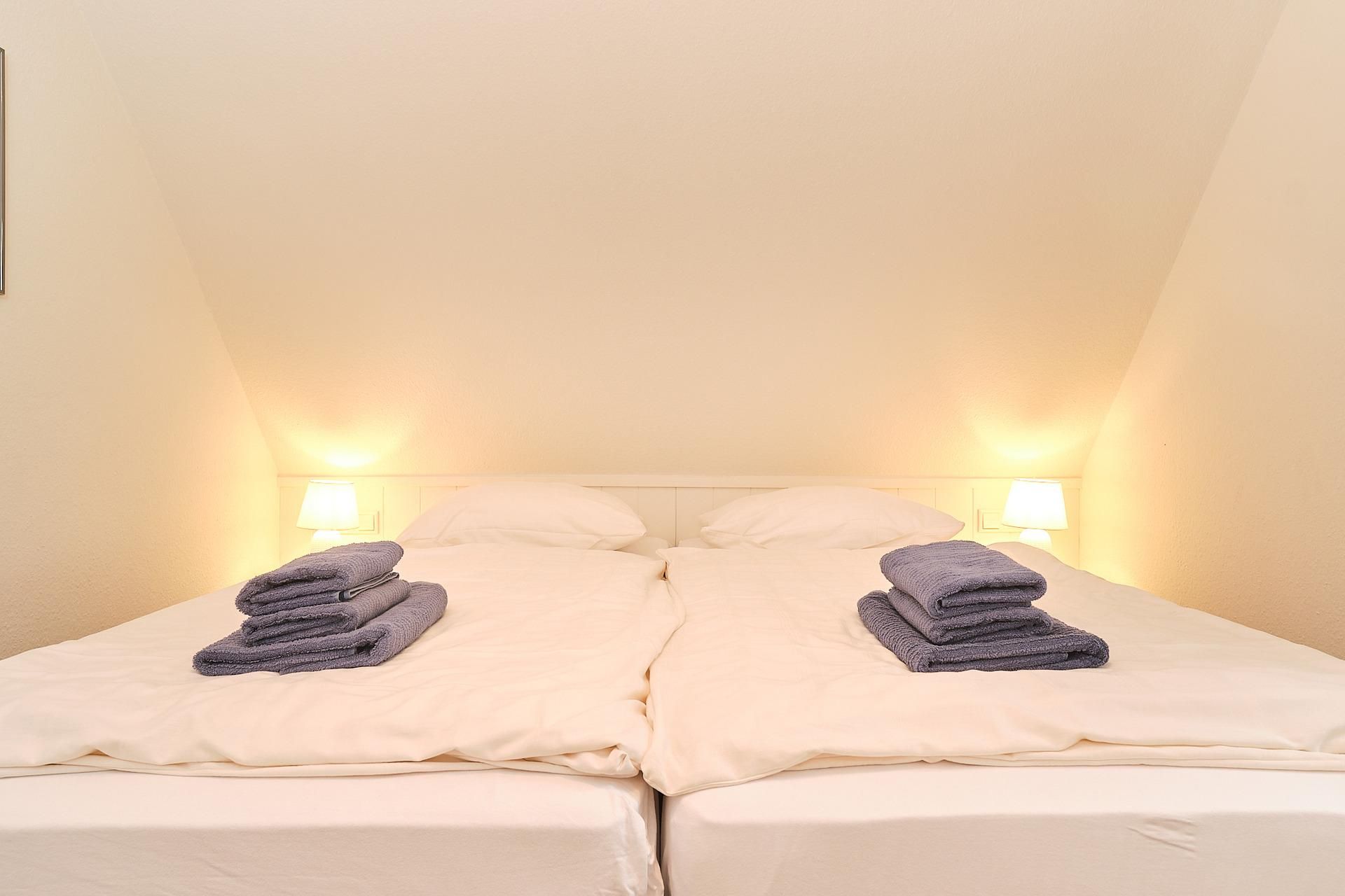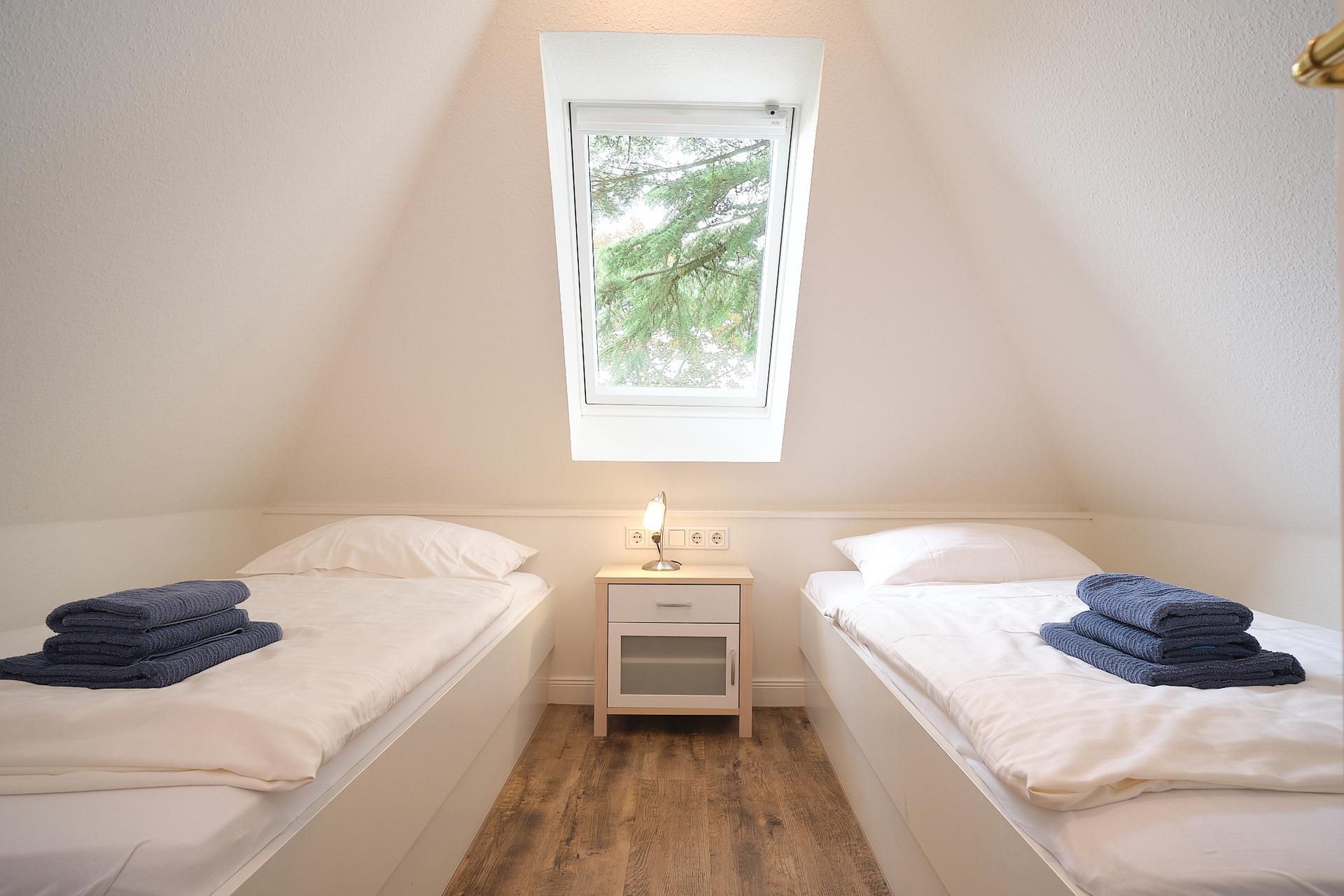 1 Schlafraum mit 2 Einzelbetten (90 x 200 cm) im DG.