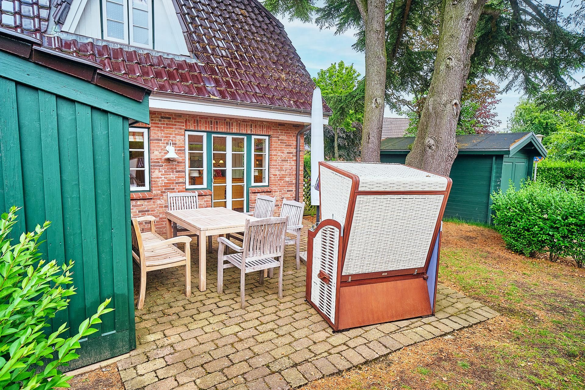 Garten: 60 m² großer Garten, Terrasse, Strandkorb