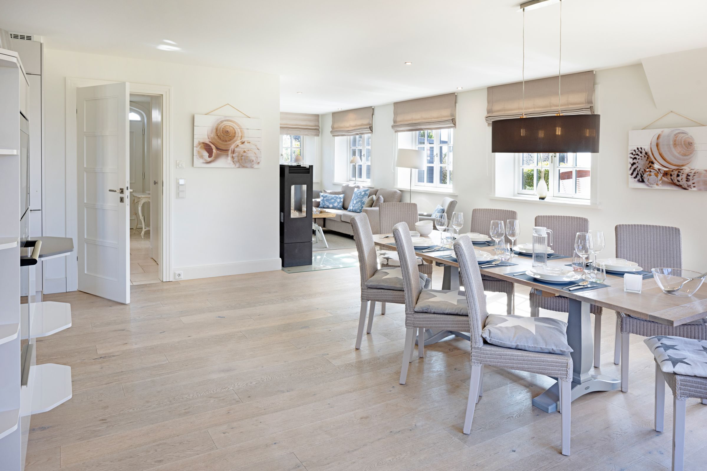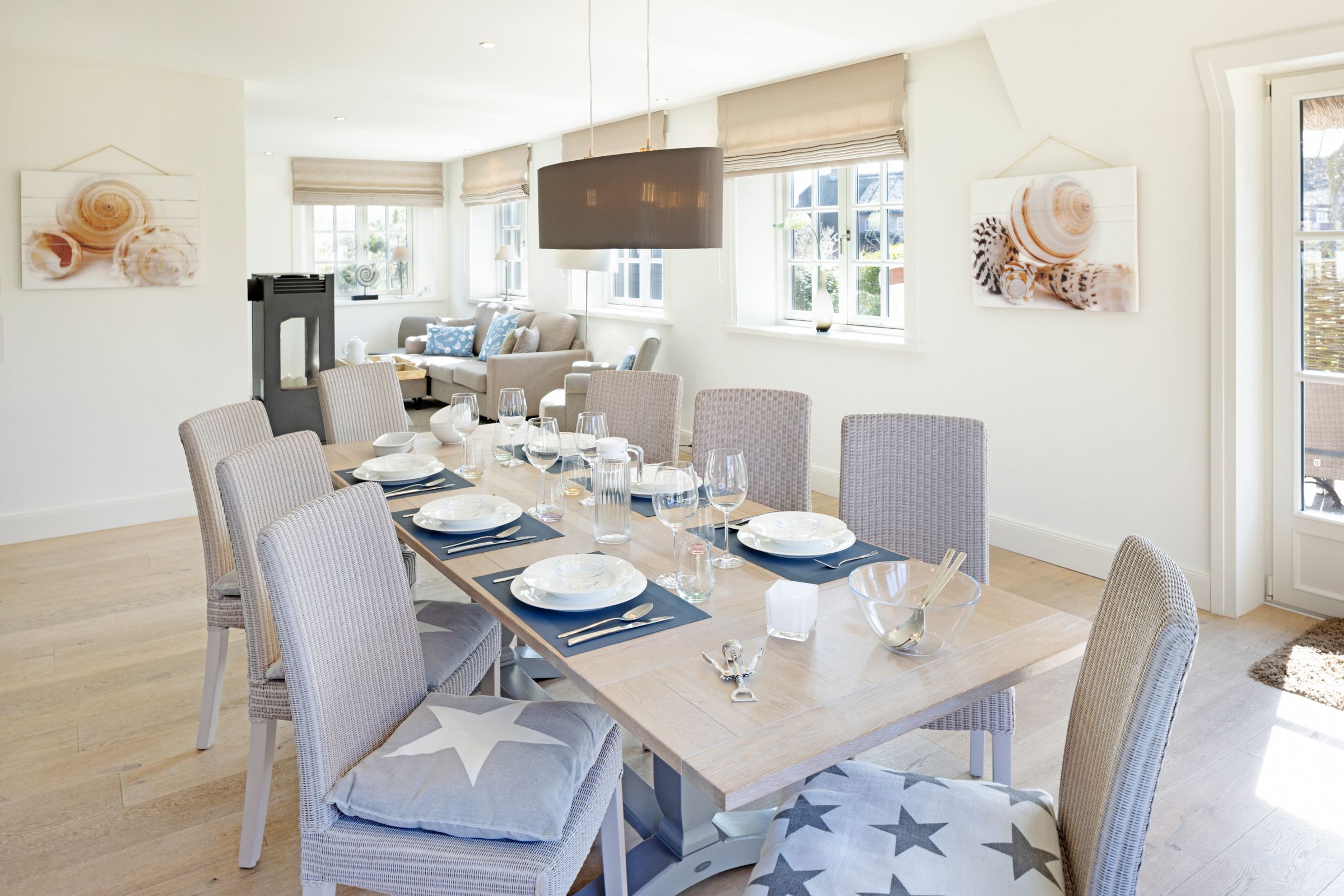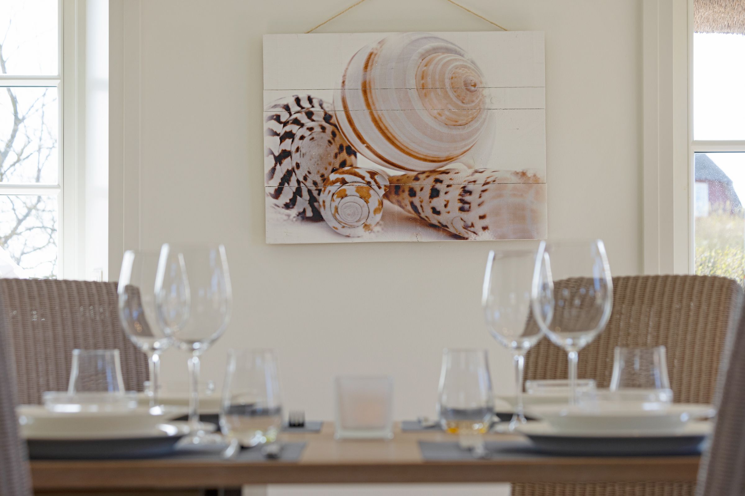 Das hochwertig ausgestattete Ferienhaus unter Reet bietet auf 180m² Platz für sechs Personen und ist ca. 200m vom Oststrand entfernt.