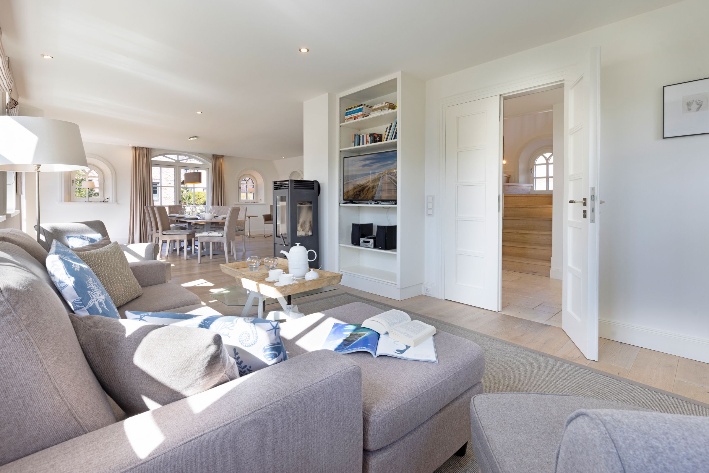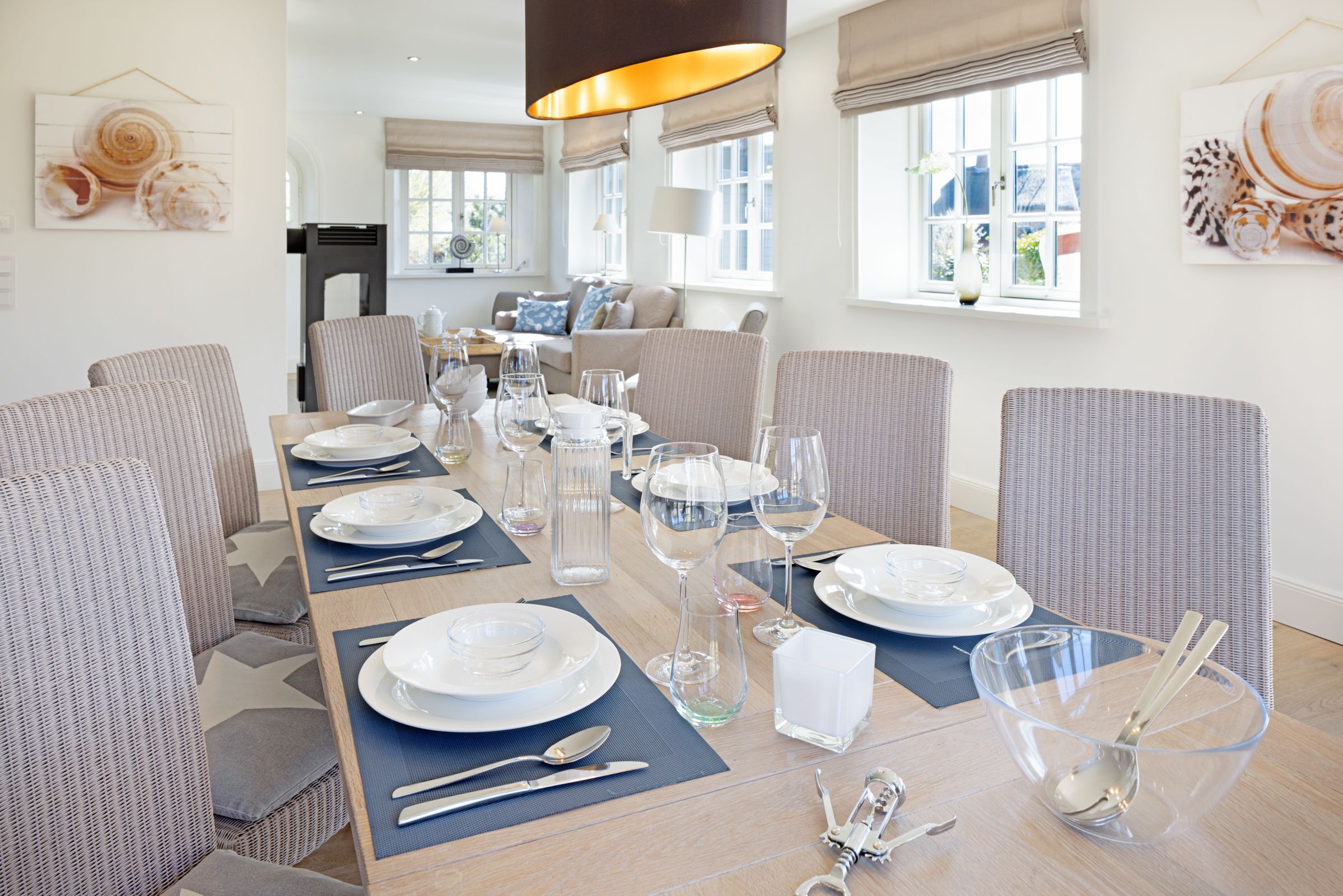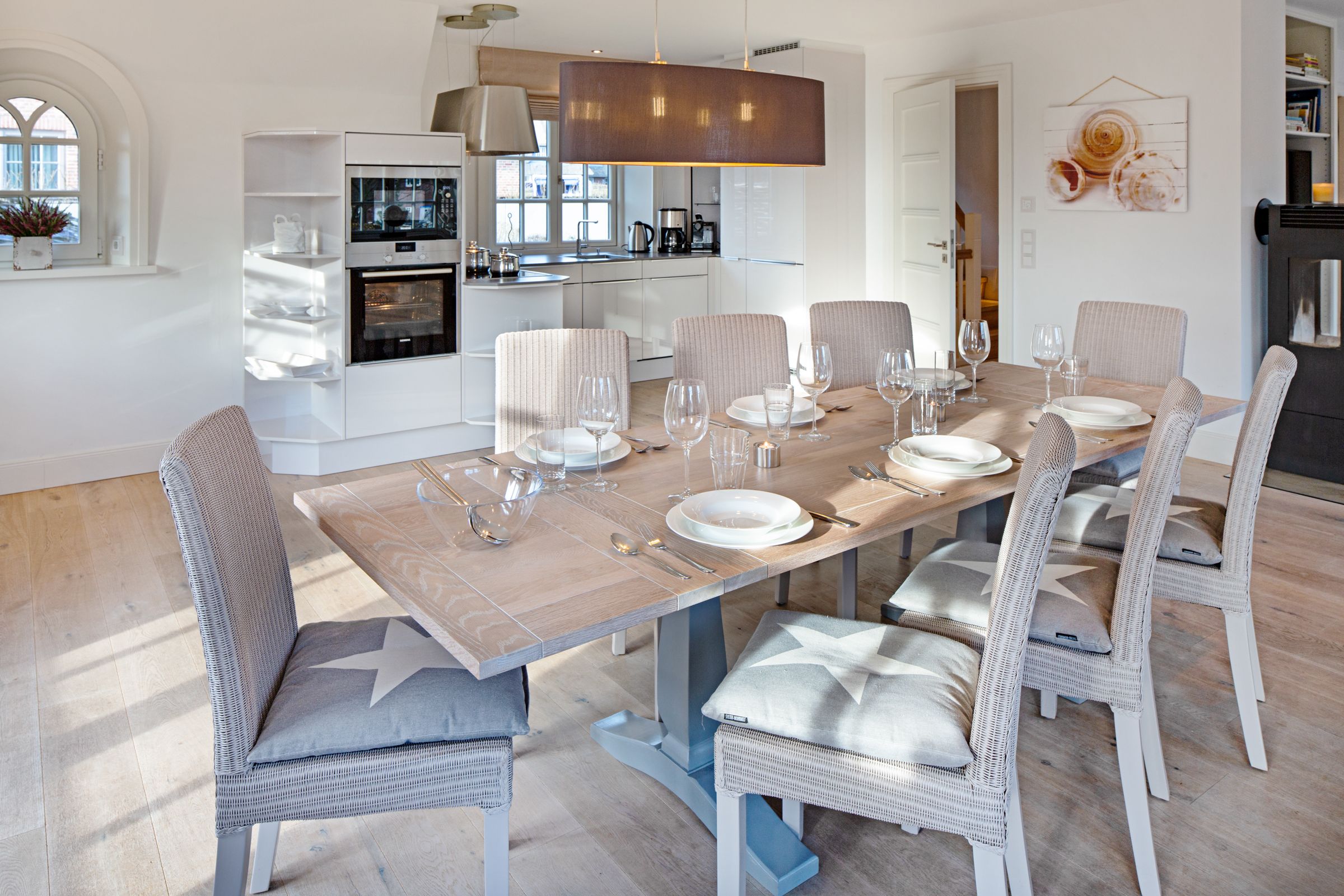 Das hochwertig ausgestattete Ferienhaus unter Reet bietet auf 180m² Platz für sechs Personen und ist ca. 200m vom Oststrand entfernt.