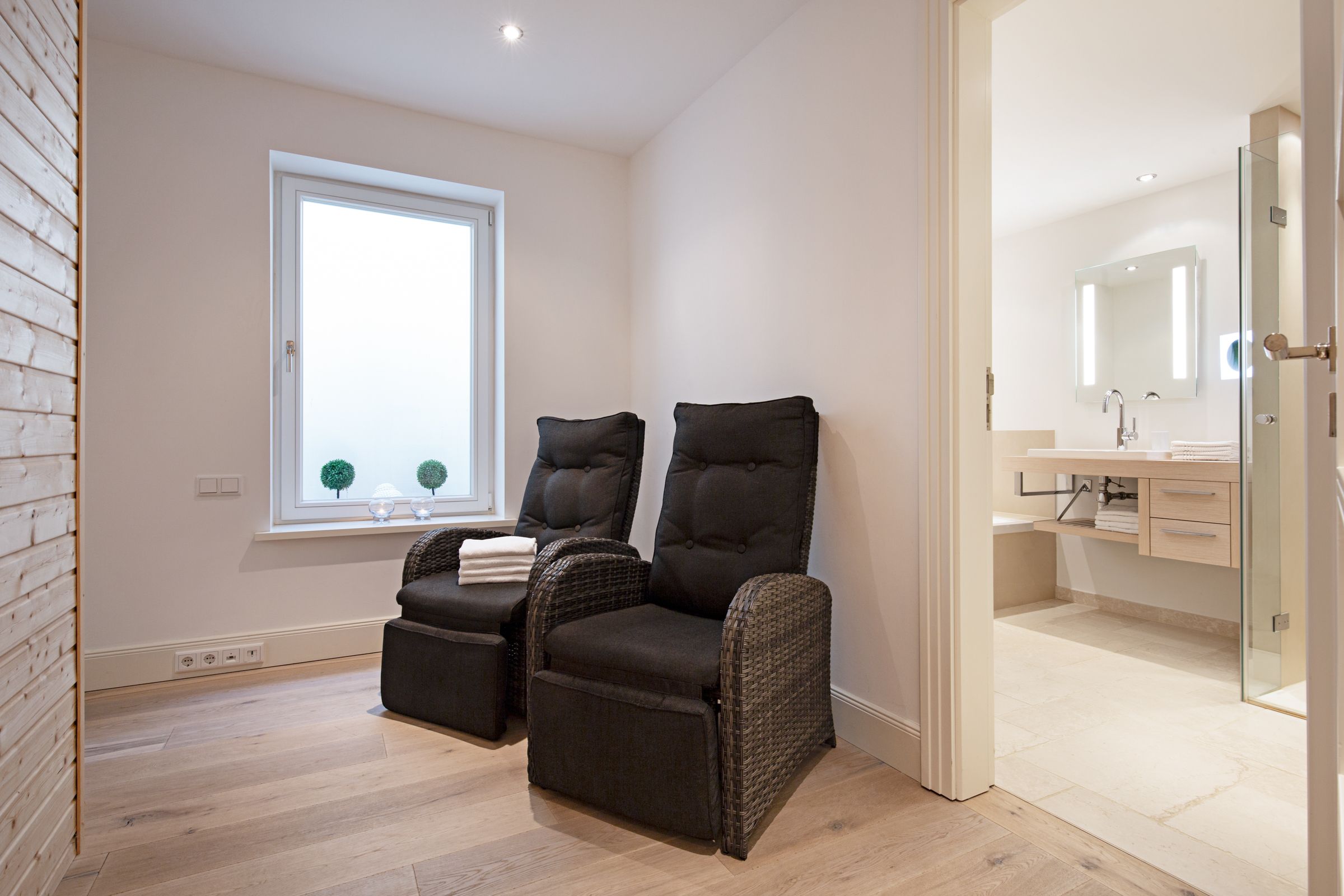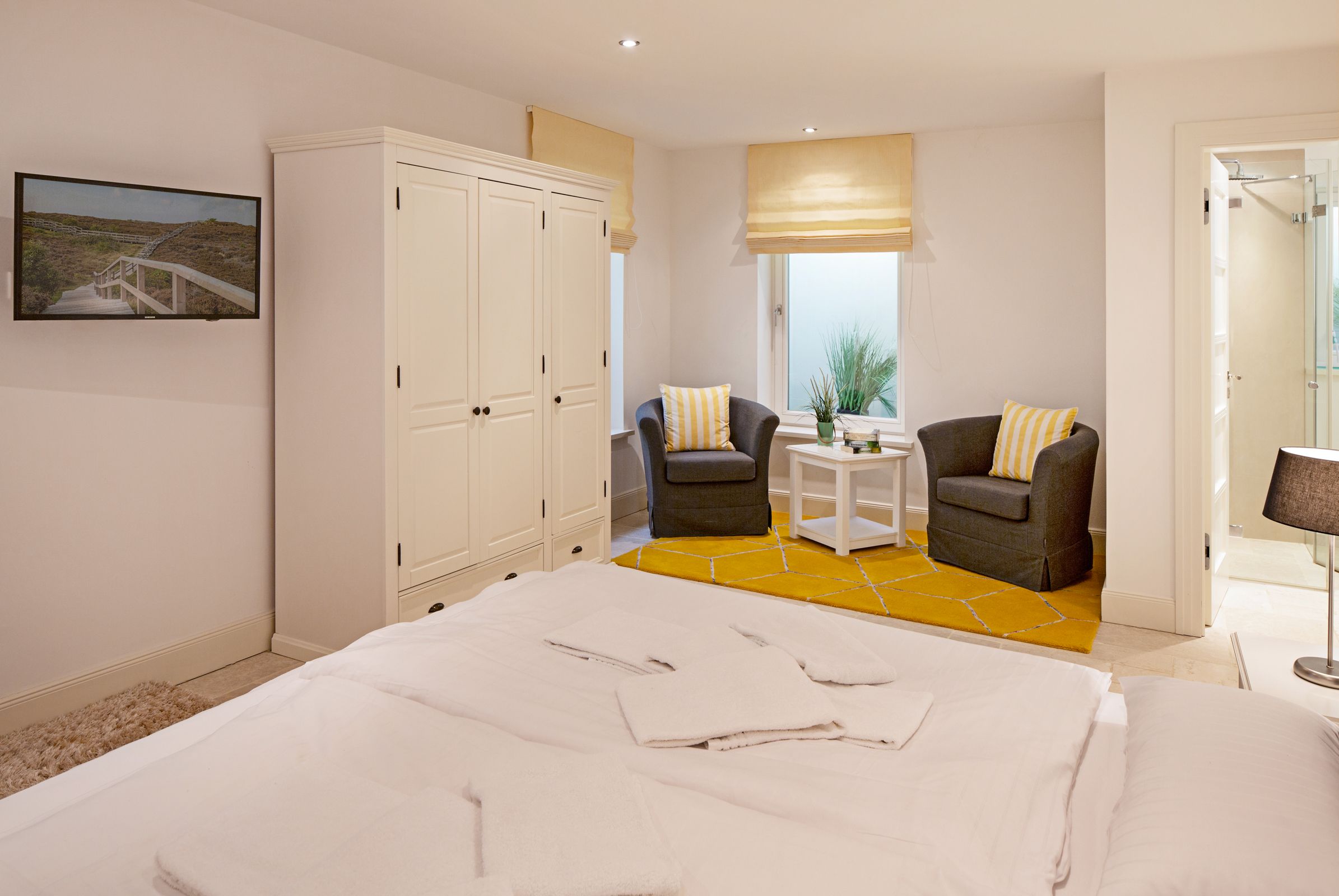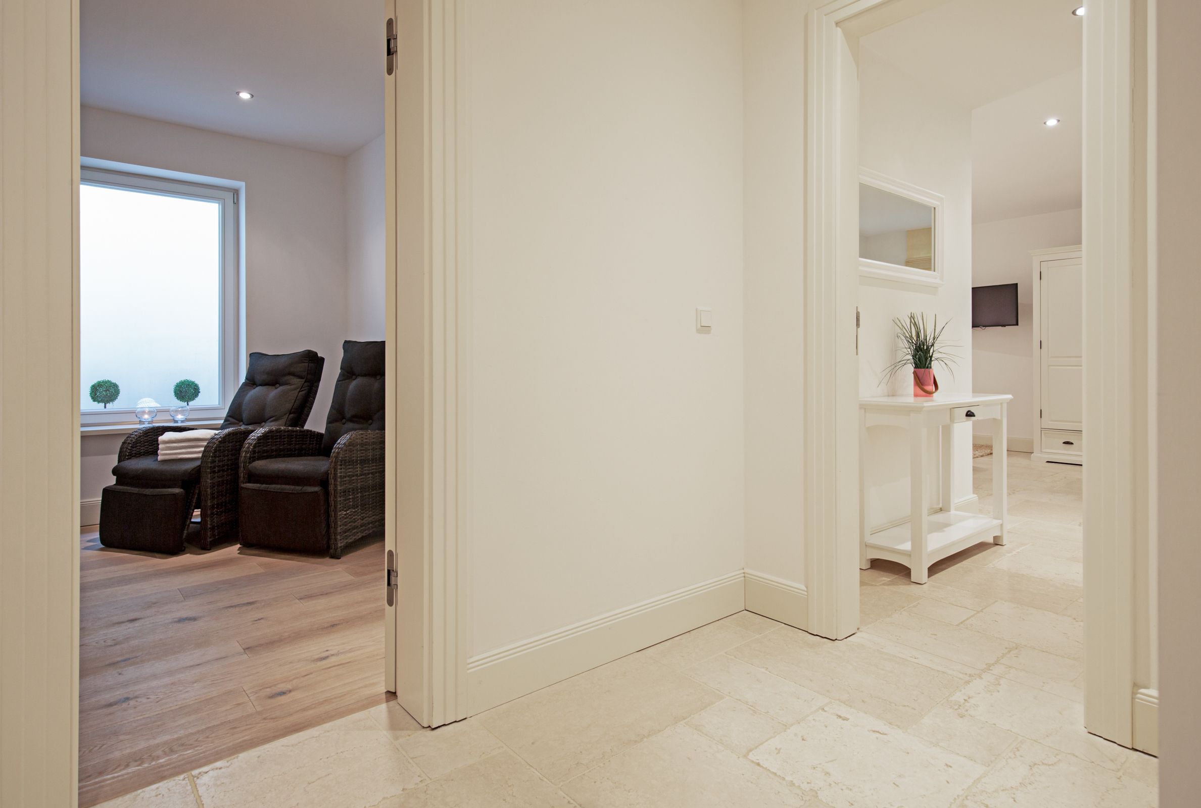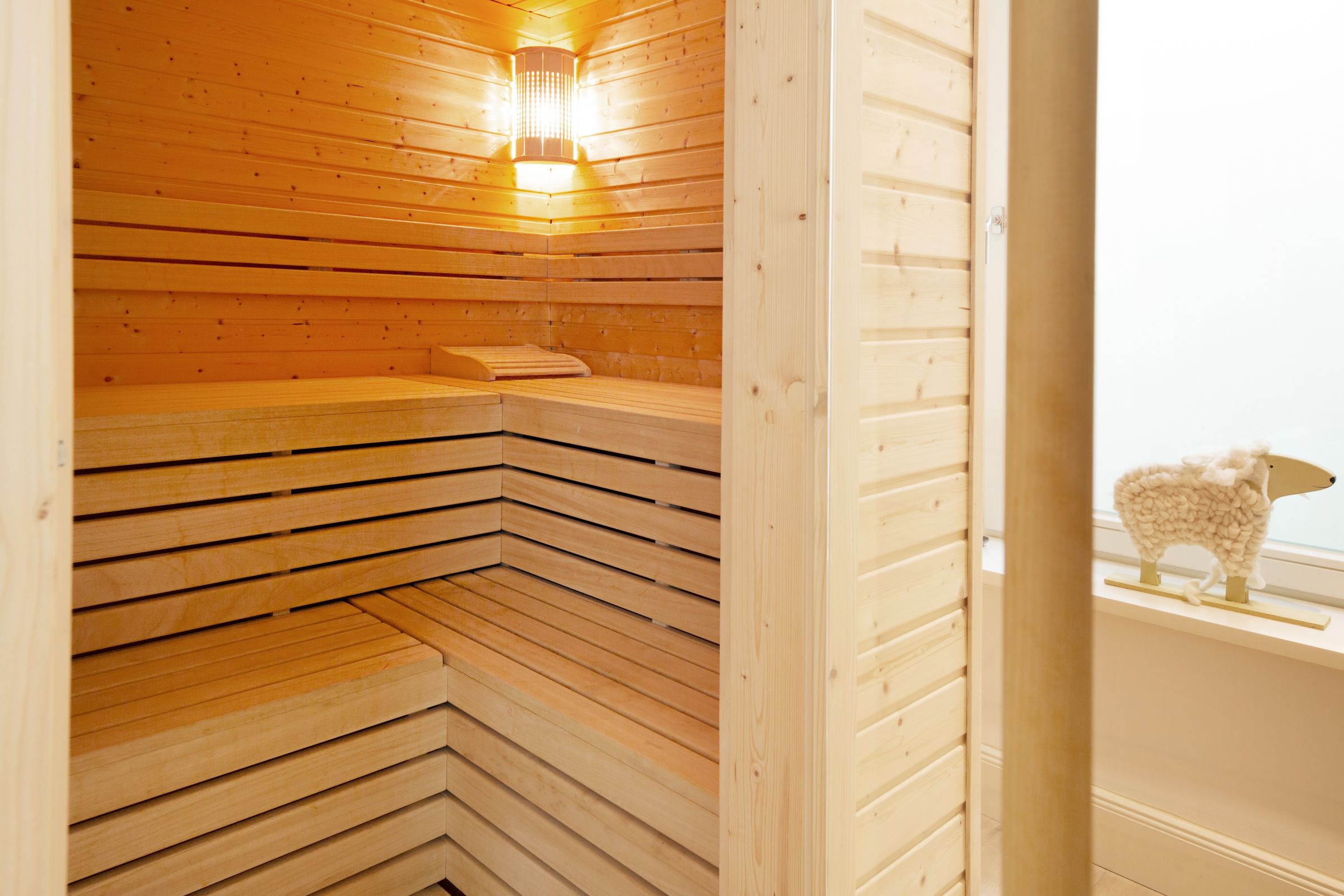Ein weiteres Schlafzimmer mit Doppelbett sowie Bad befindet sich im Souterrain. Sowie der Saunabereich, der das Wohlbefinden im Haus abrundet.