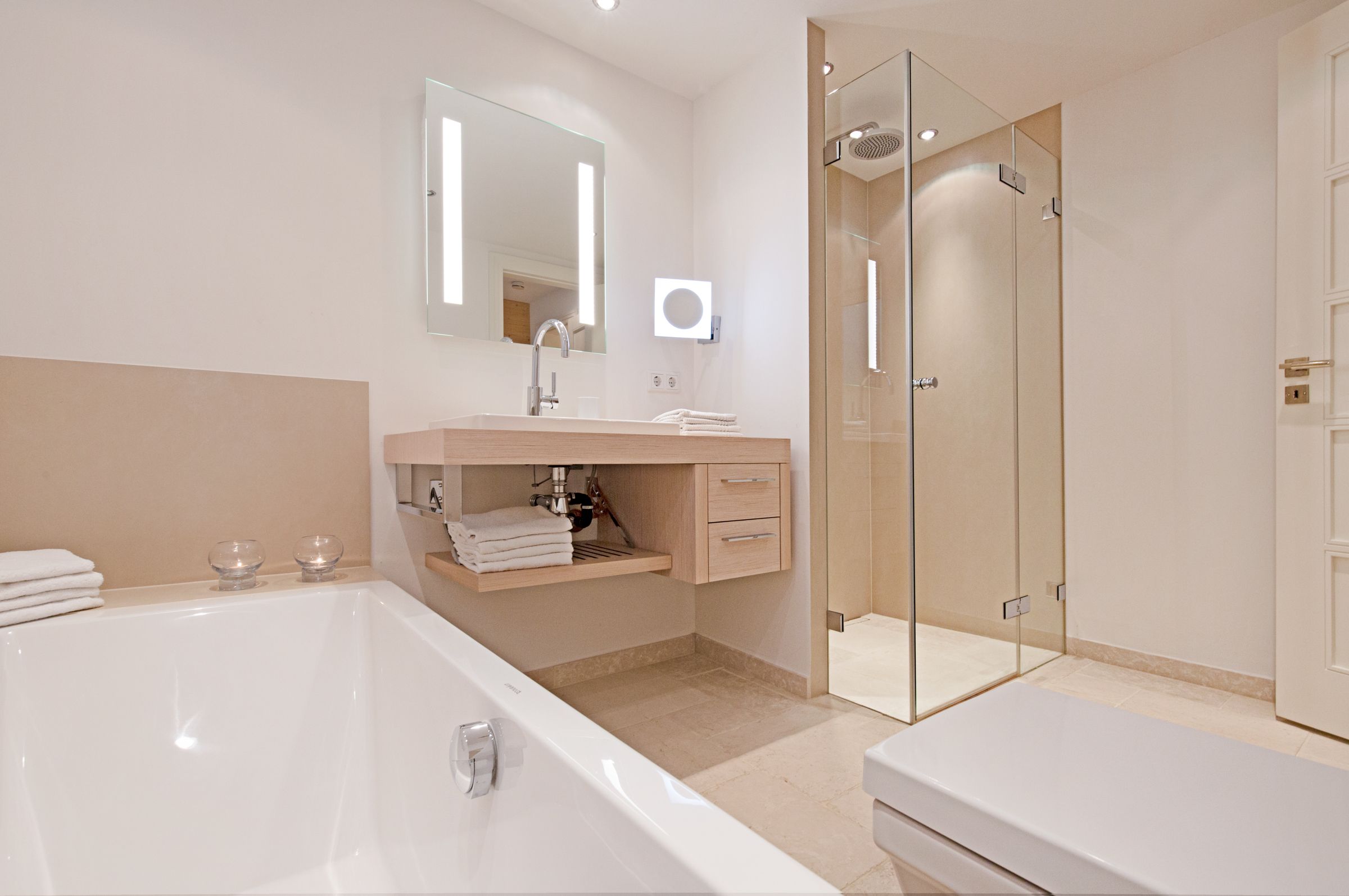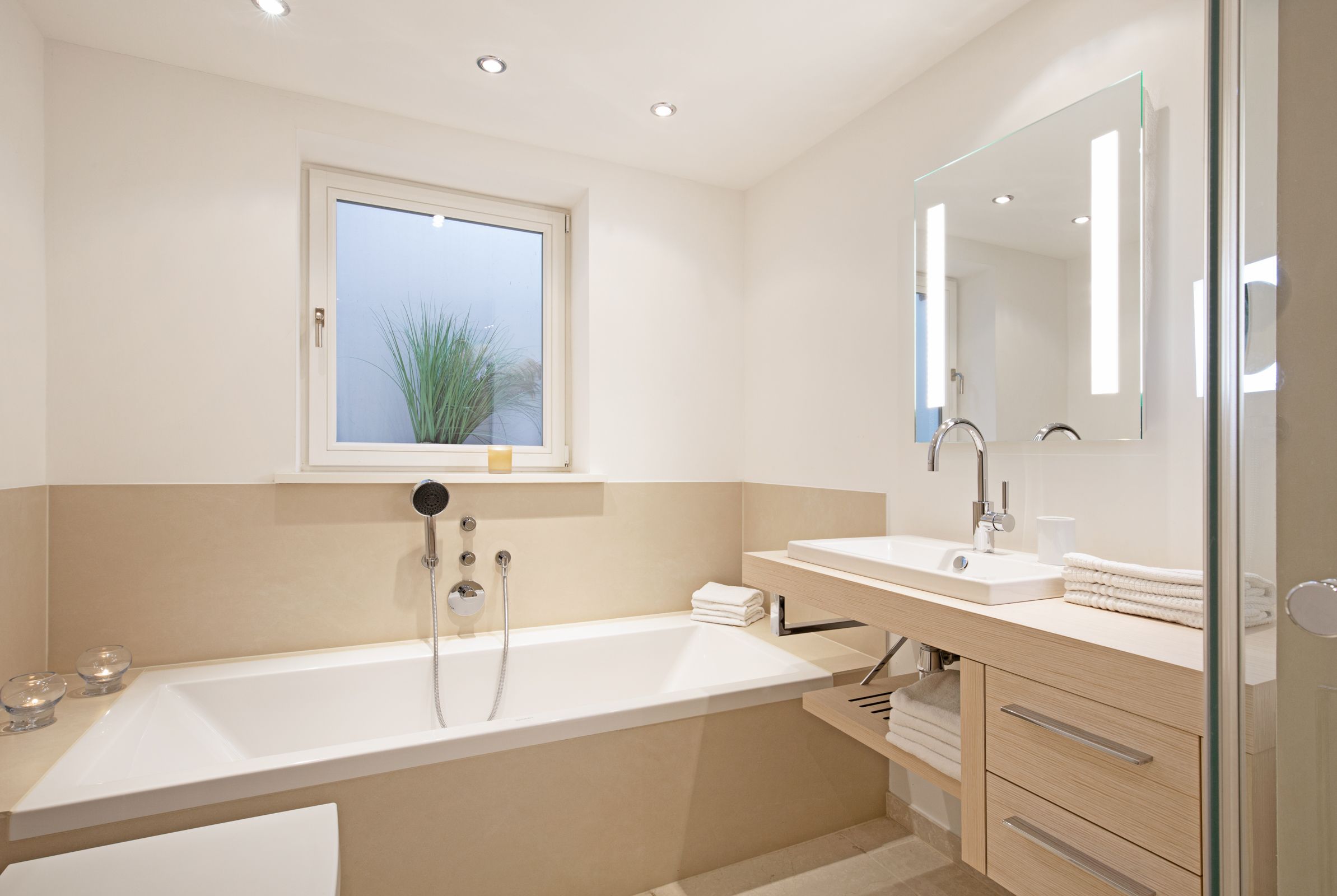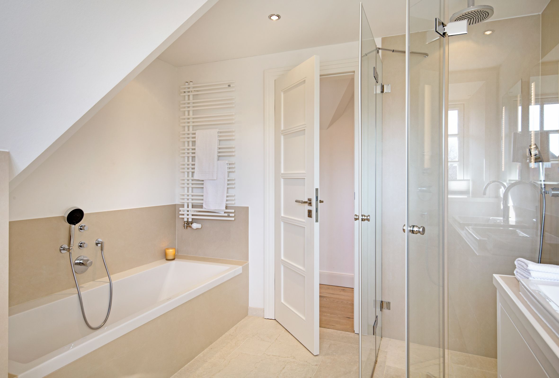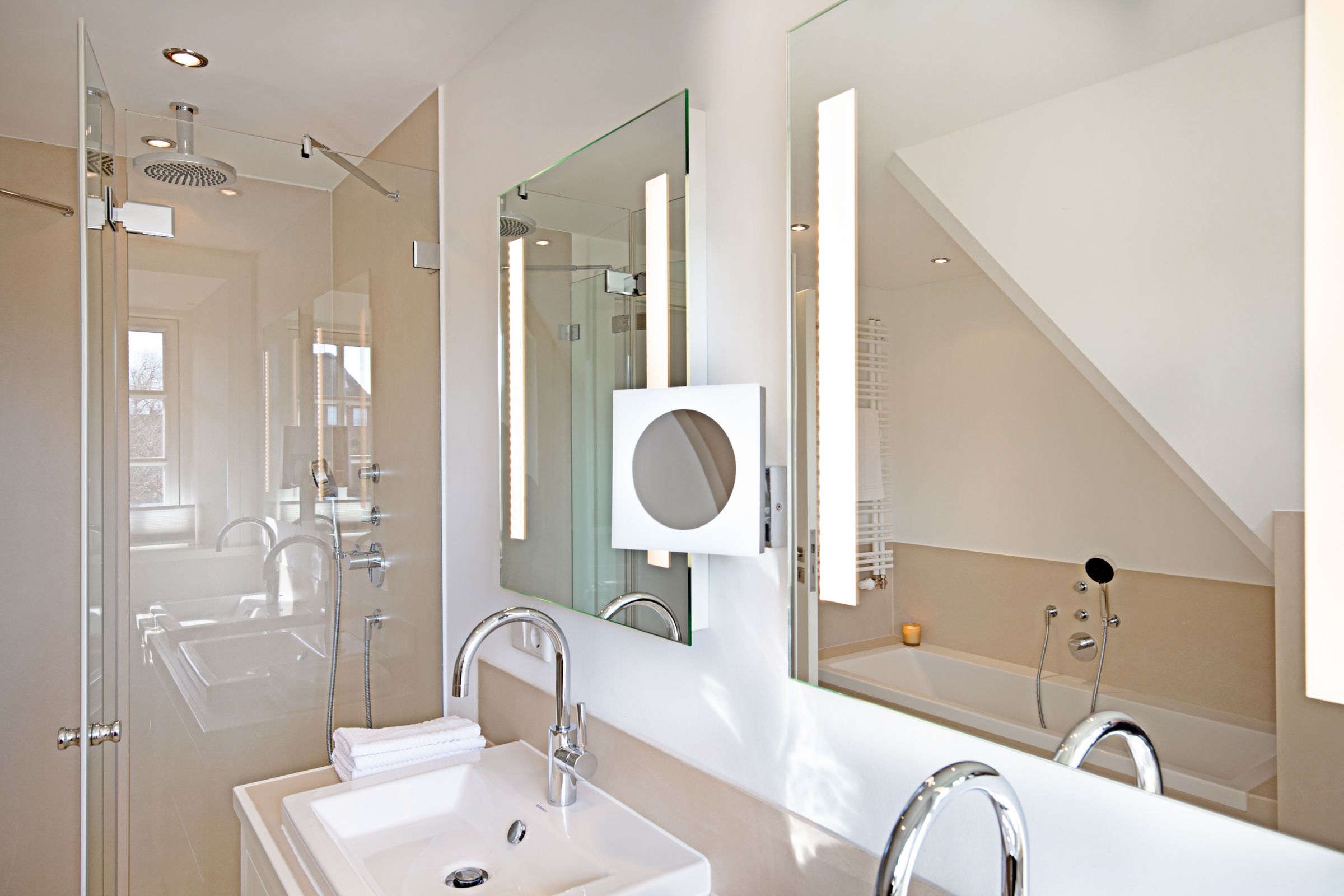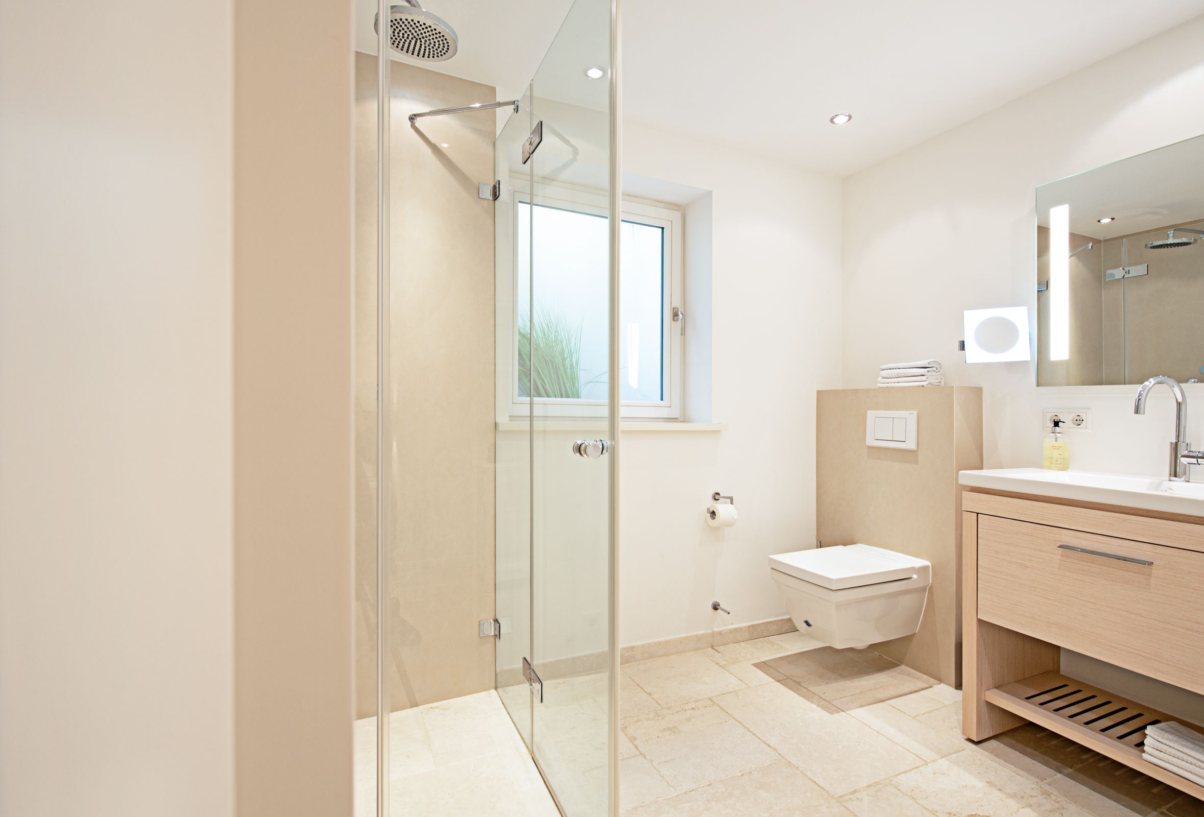 Ein weiteres Schlafzimmer mit Doppelbett sowie Bad befindet sich im Souterrain. Sowie der Saunabereich, der das Wohlbefinden im Haus abrundet.