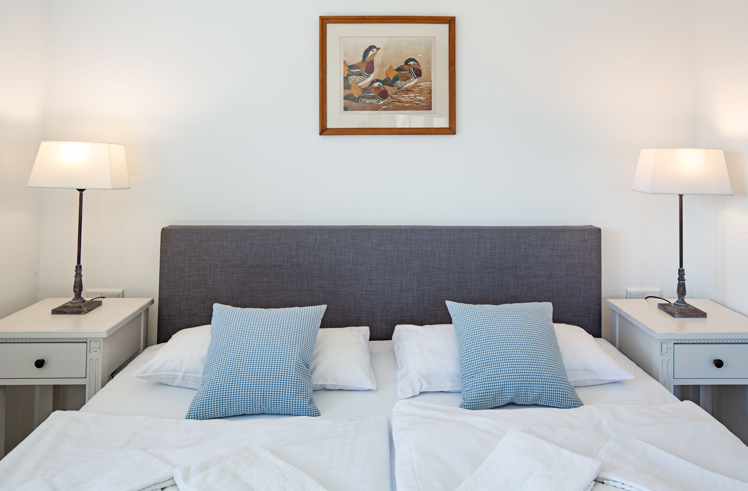 Es stehen im 1. Stock zwei Schlafzimmer mit Doppelbetten und zwei Badezimmer zur Verfügung.