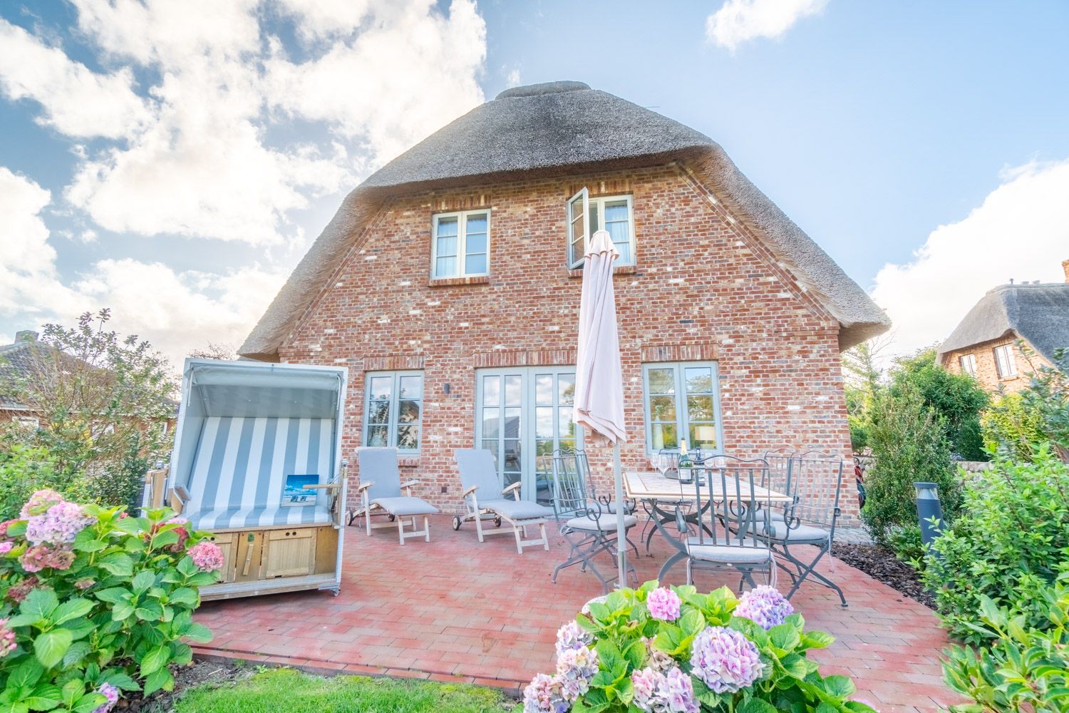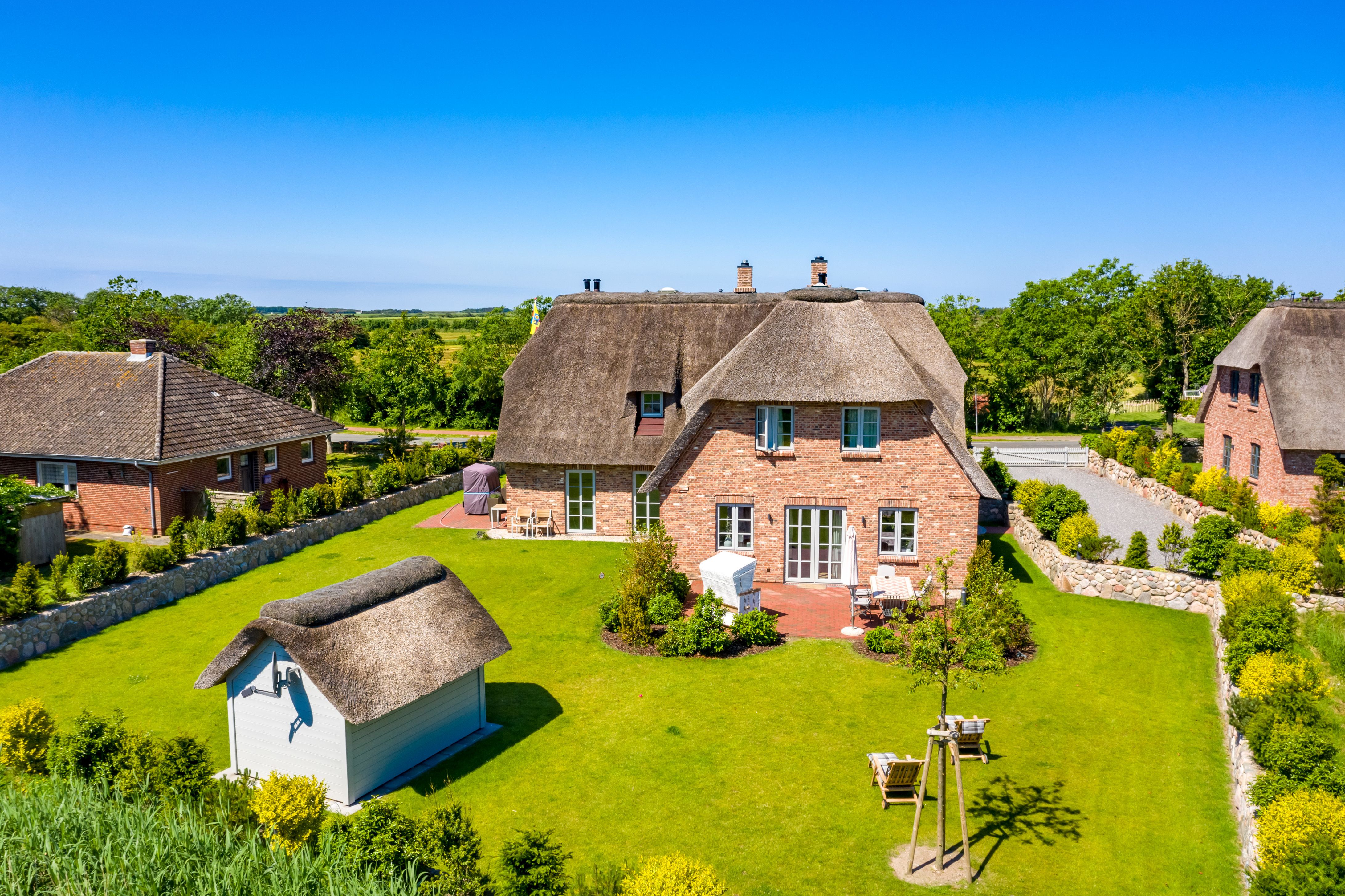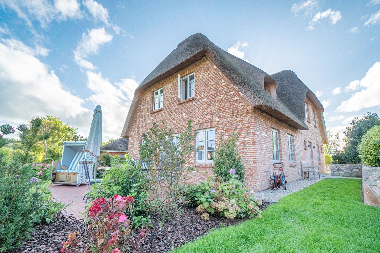 Die reetgedeckte Doppelhaushälfte Meggis Hüs verfügt über 3 Schlafzimmer und 3 Bäder und bietet komfortabel Platz für bis zu 6 Personen zuzüglich einer Kleinkinderaufbettung. Auch ein kleiner Hund ist hier herzlich willkommen.