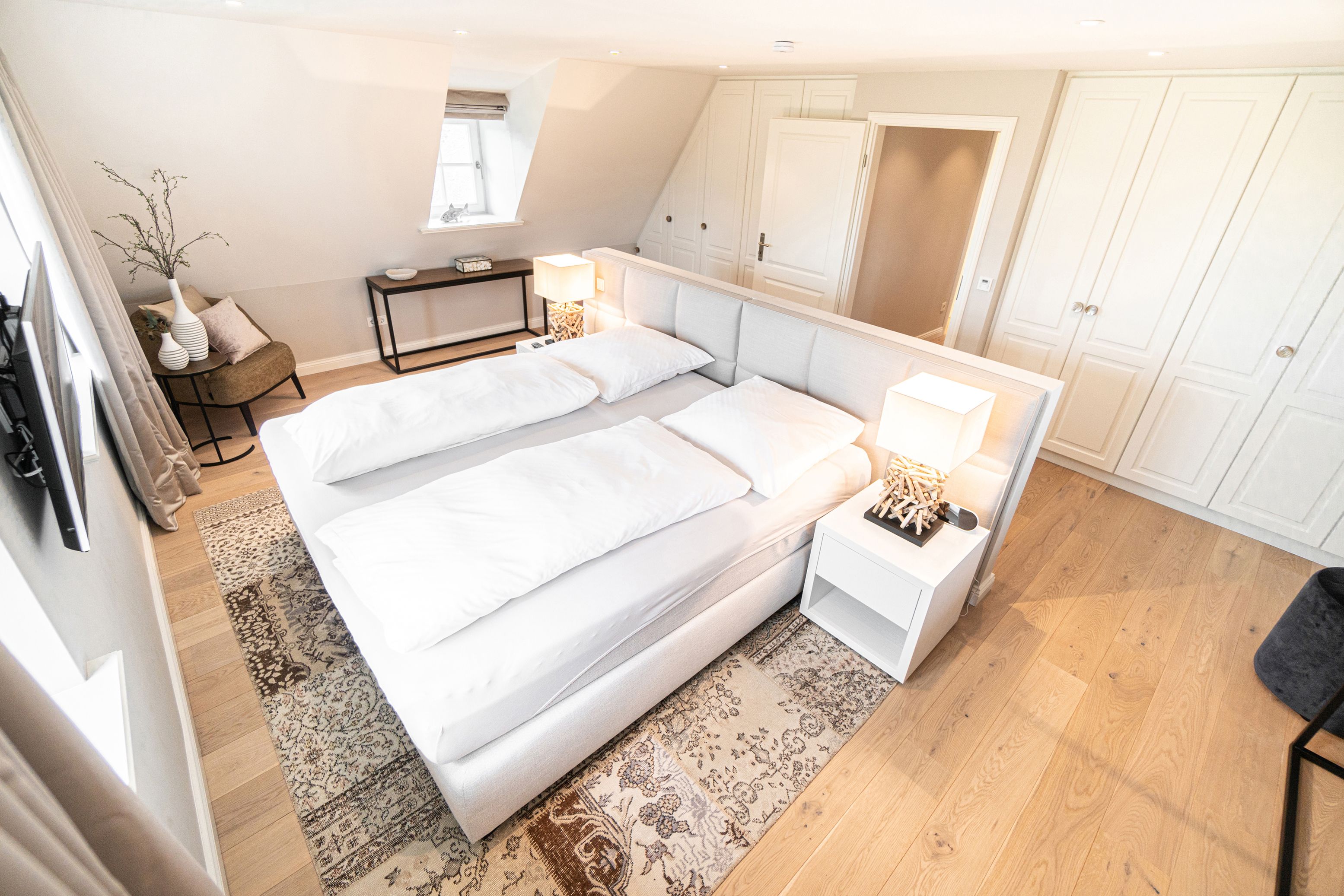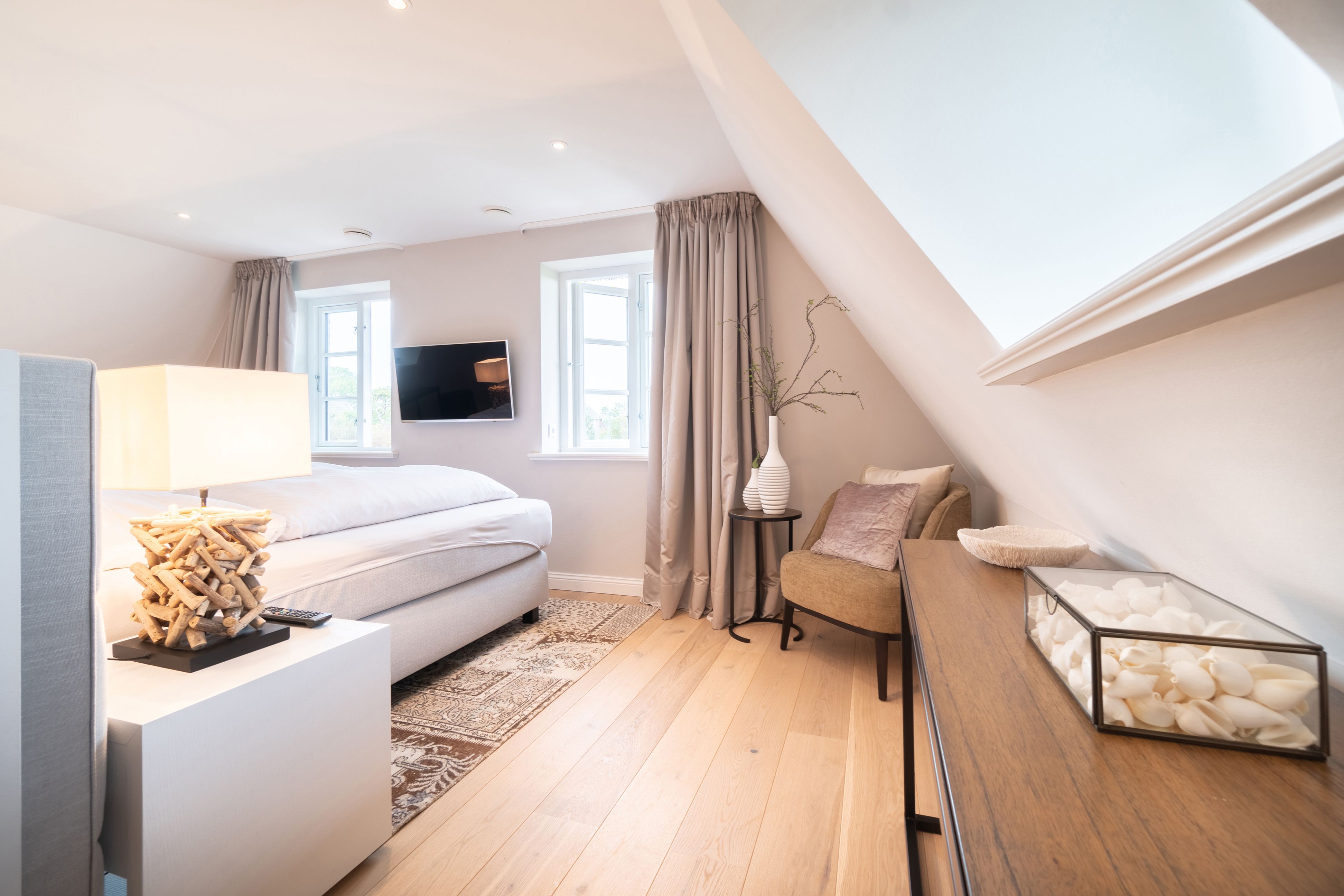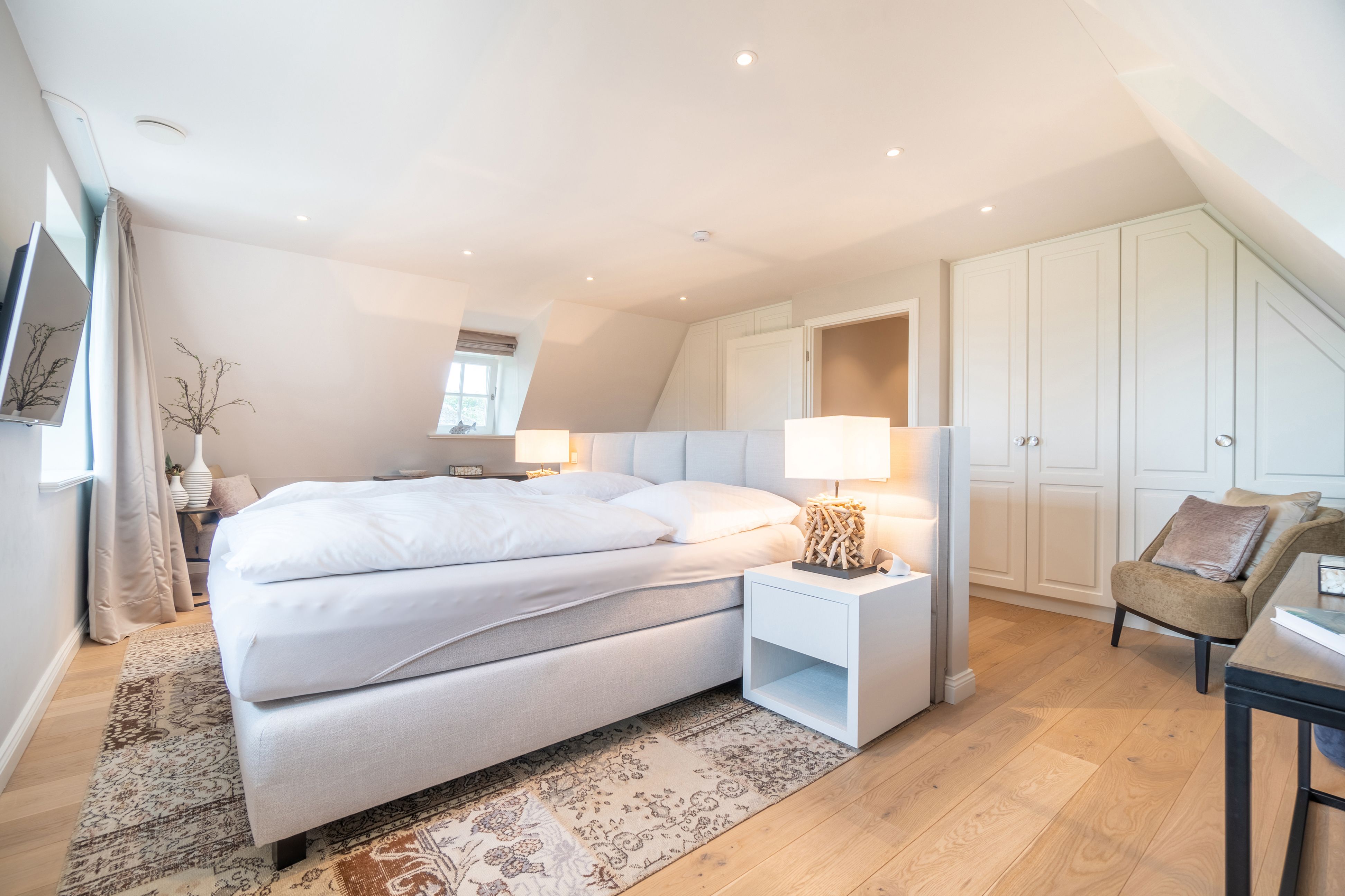 Die reetgedeckte Doppelhaushälfte Meggis Hüs verfügt über 3 Schlafzimmer und 3 Bäder und bietet komfortabel Platz für bis zu 6 Personen zuzüglich einer Kleinkinderaufbettung. Auch ein kleiner Hund ist hier herzlich willkommen.