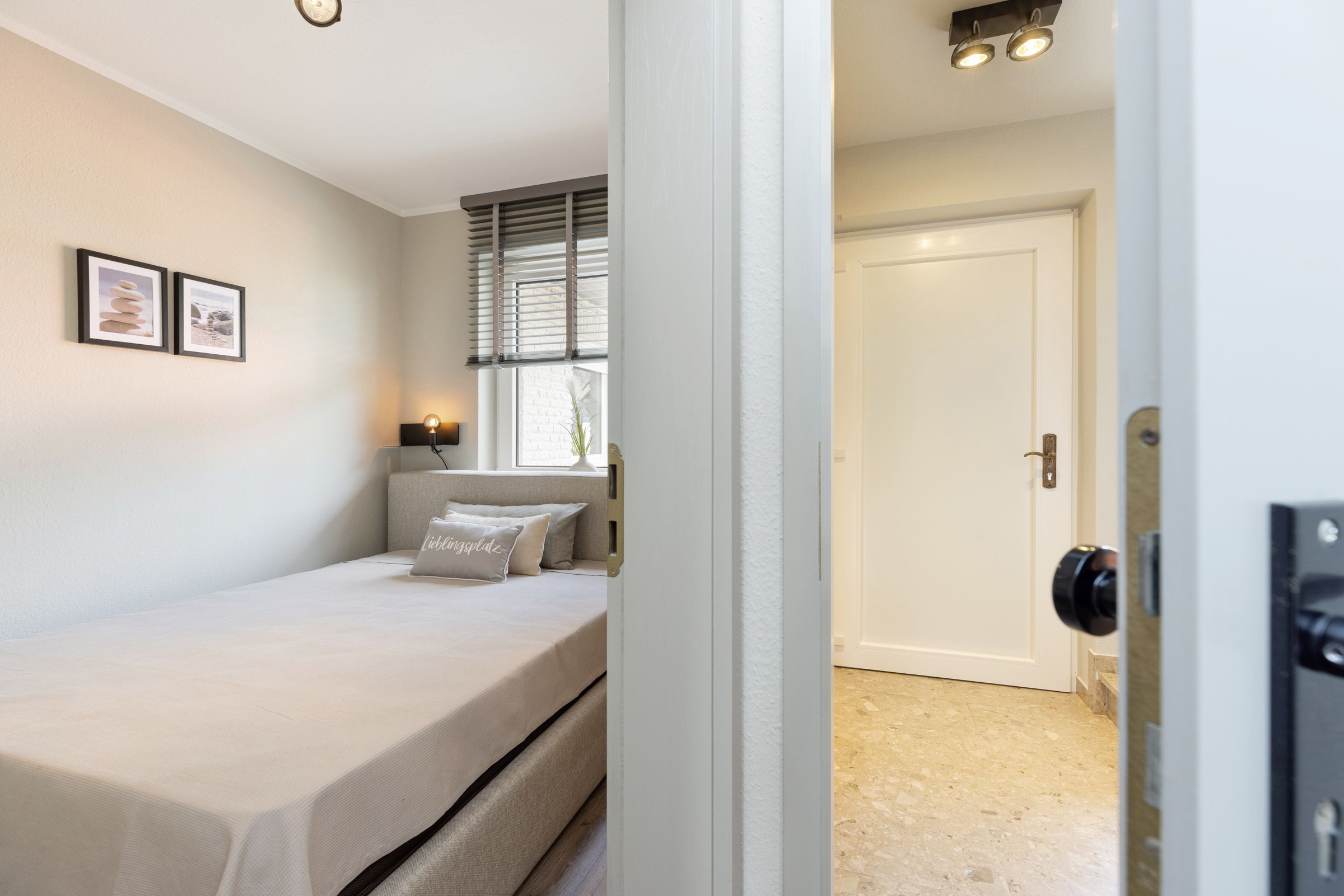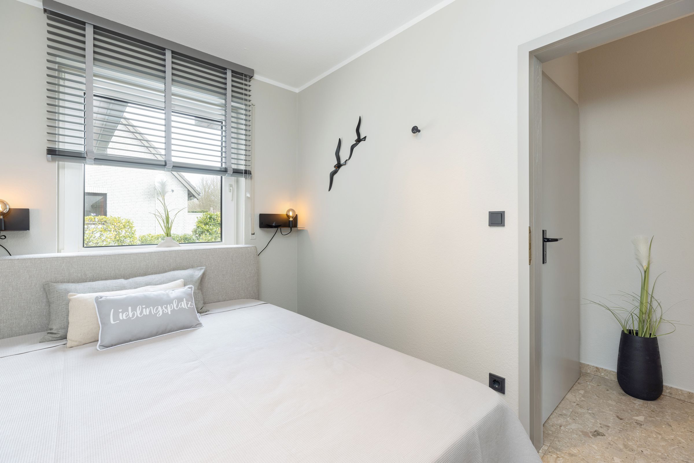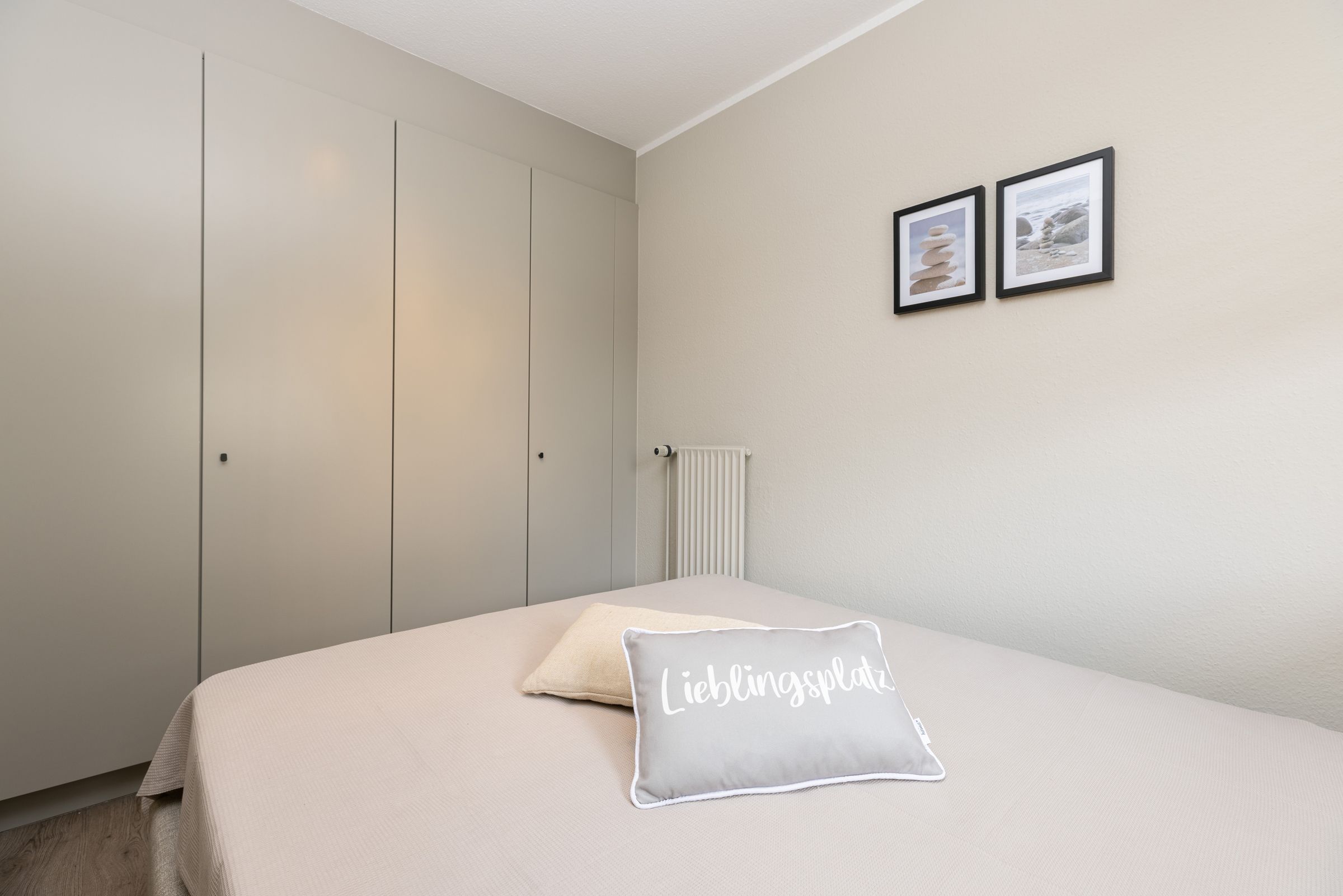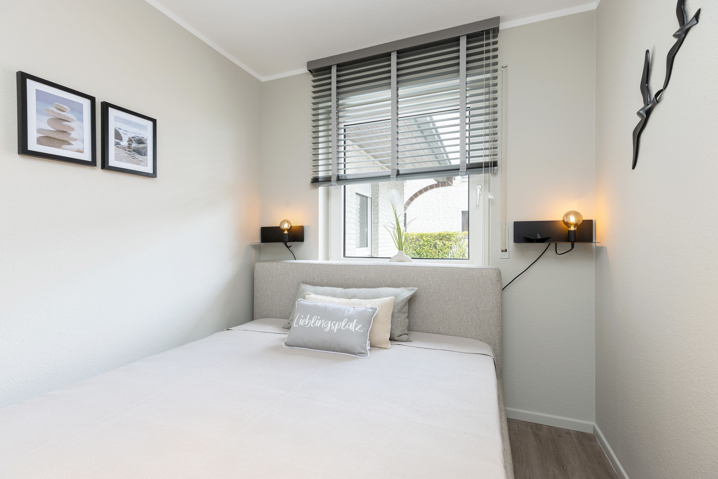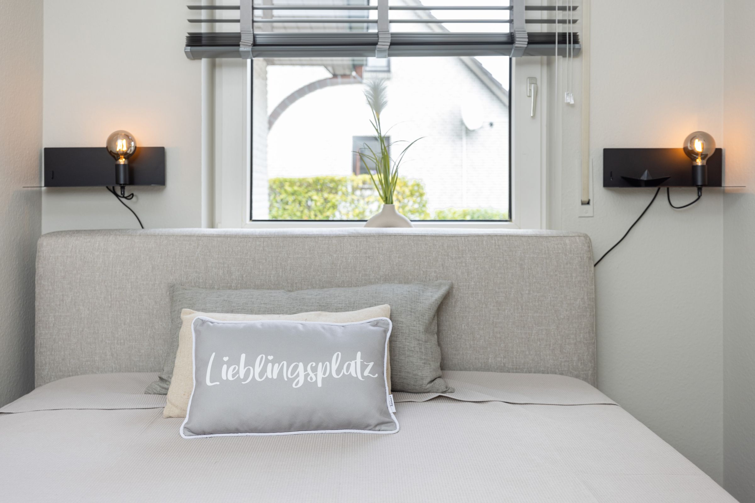 Ein separates Schlafzimmer ist mit einem Doppelbett (durchgängige Matratze 1,60x2,00m) ausgestattet. Für die ganz kleinen Gäste gibt es auf Anfrage ein Kinder-Reisebett und einen Hochstuhl.