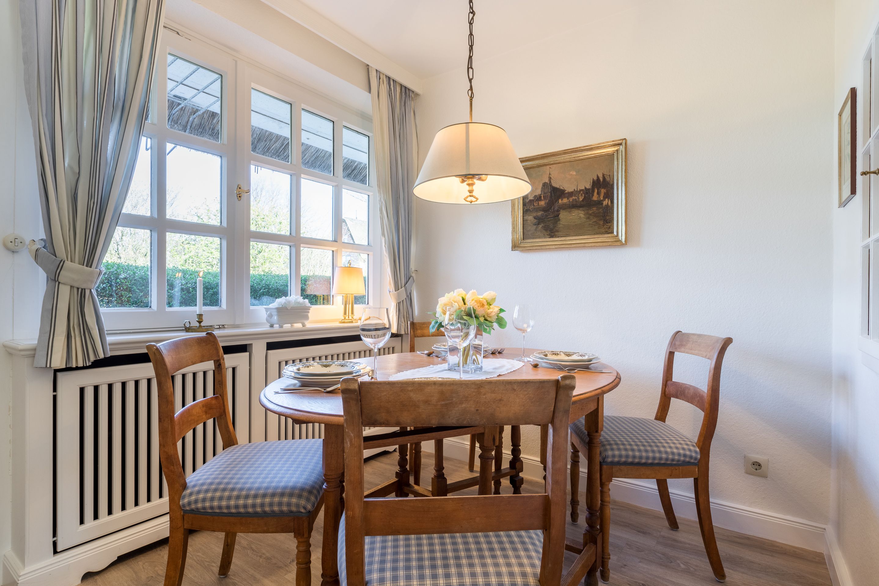 Das reetgedeckte, gepflegte Haus liegt ruhig in einer Sackgasse, drei Gehminuten vom Wattenmeer entfernt. Die gemütlich und geschmackvoll eingerichtete Wohnung verfügt über Komfort wie Flat-TV, DVD-Player, Stereoanlage, Telefon, WLAN, Geschirrspüler, Wasch-Trockner