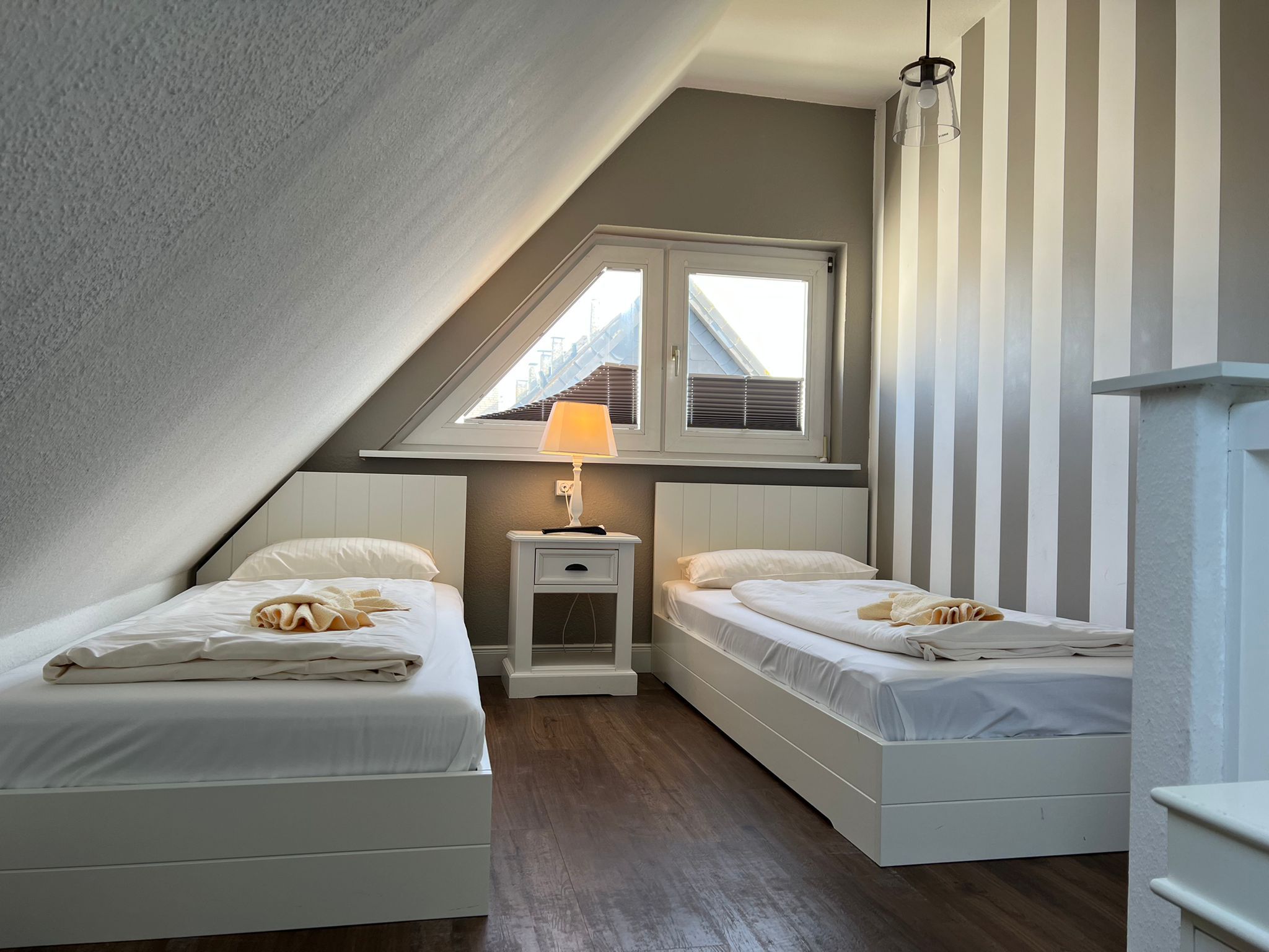Moin Moin und Willkommen: Die moderne und gemütliche 2-Zimmer-Ferienwohnung "Muck" liegt im Herzen von Westerland, nah bei der Fußgängerzone Friedrichstraße und keine 500 Meter vom Strand entfernt. Sie verfügt über einen Tiefgaragenstellplatz und bietet einen gemeinschaftlichen Waschraum mit Waschmaschine und Trockner gegen Münzzahlung. Erst 2023 wurden das Badezimmer und die Küche vollständig für Sie erneuert. Das Appartement finden Sie im zweiten Stock einer kleinen Wohnanlage, charmant über zwei Ebenen gelegen und insgesamt circa 40 Quadratmeter groß. Zu "Muck" gehört ein großzügiger Ostbalkon mit Blick Richtung Sonnenaufgang. Falls Sie die Wohnung mit einem Kleinkind besuchen möchten, ist auch dies kein Problem. Optional können am Treppenaufgang in der Whg. befindliche Treppenschutzgitter angebracht werden und auch der Schlafbereich bietet ausreichend Platz, um vor den Betten der Eltern ein Reisebettchen zu stellen. Seien Sie unser Gast und genießen Sie eine schöne Zeit in unserer muckeligen Ferienwohnung „Muck“.