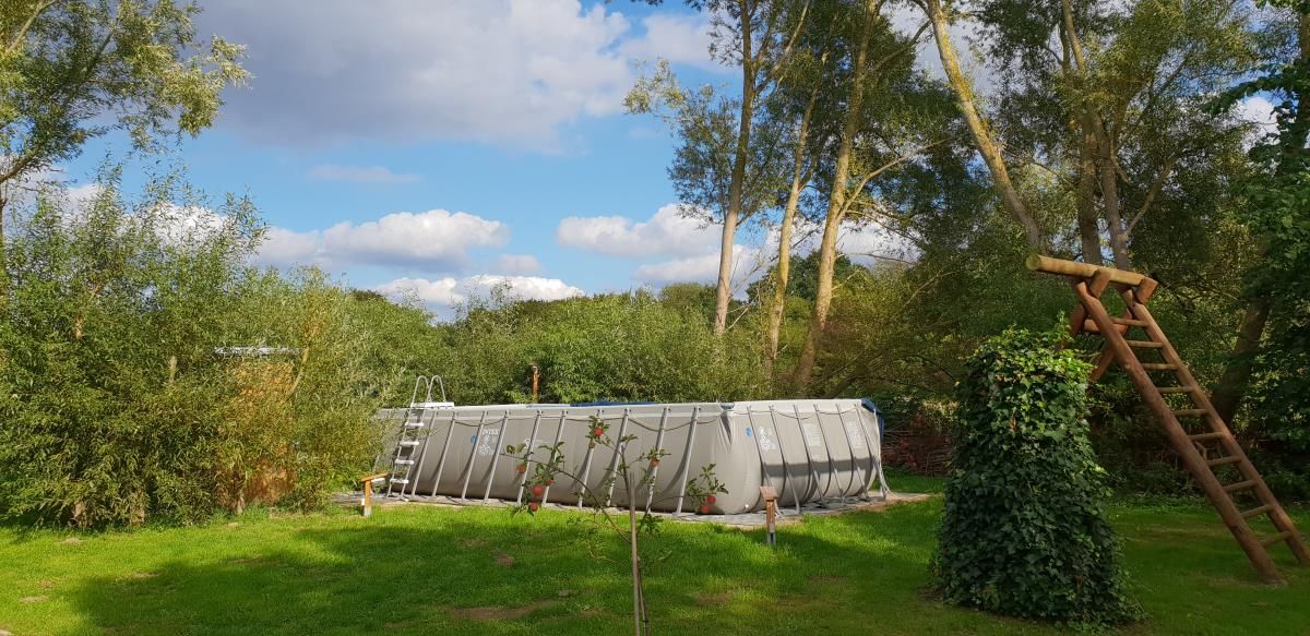 Das besondere Erlebnis findet allerdings nicht nur drinnen statt, sondern direkt vor der Tür. Auf dem weitläufigen Grundstück mit Bachlauf, kleinem See und alten Bäumen kannst du Wildgänse, Reiher oder mit etwas Glück sogar einen Eisvogel beobachten. Es gibt stille Ecken zum Zurückziehen, sonnige Plätze zum Ausstrecken und gemeinsame Momente am Grill, in der Grillkota oder am Wasser. In der warmen Jahreszeit steht dir auch der Außenpool (Mai - Sept.) zur Verfügung, ergänzt durch Hot-Tub und Fass-Sauna – alles eingebettet in eine natürliche Umgebung, die sich nicht aufdrängt, sondern Raum gibt.