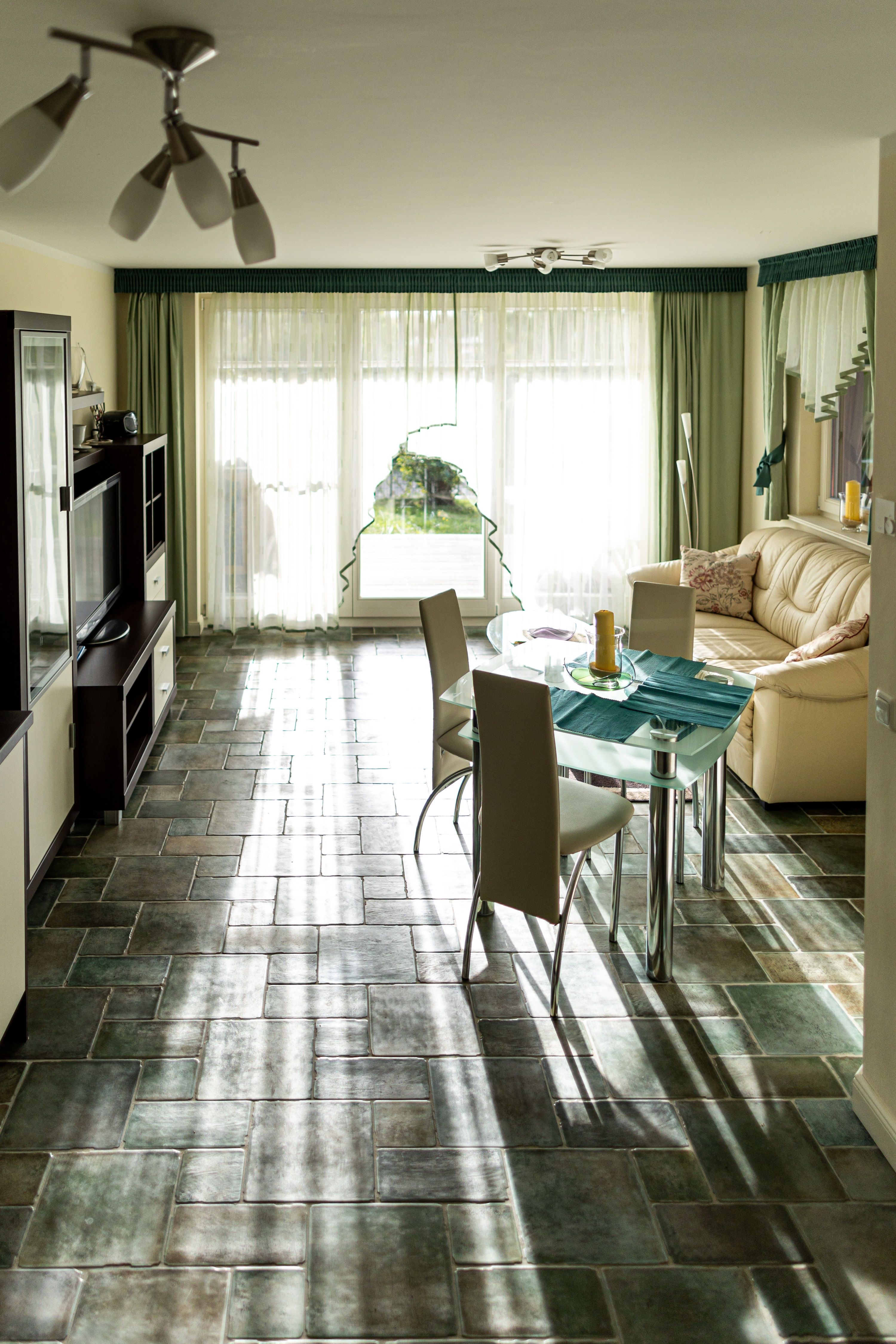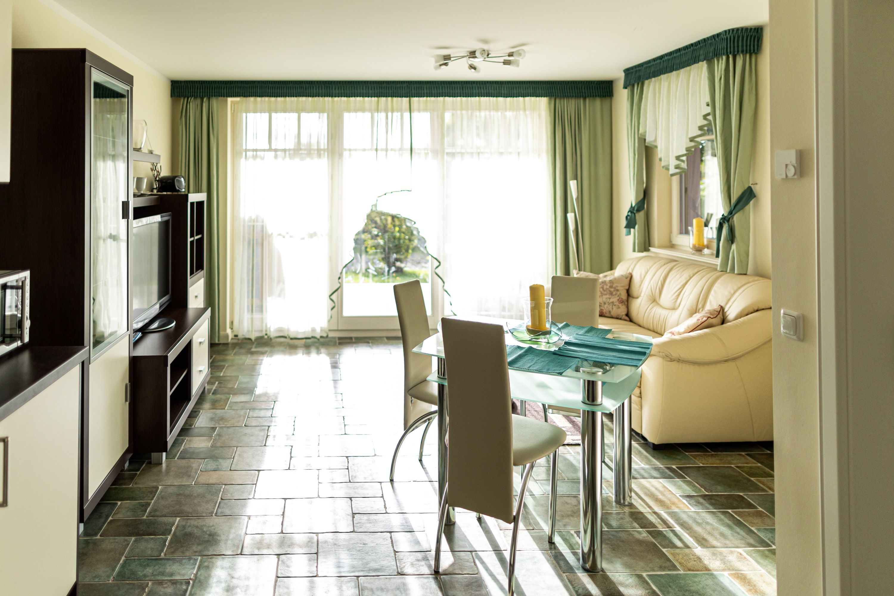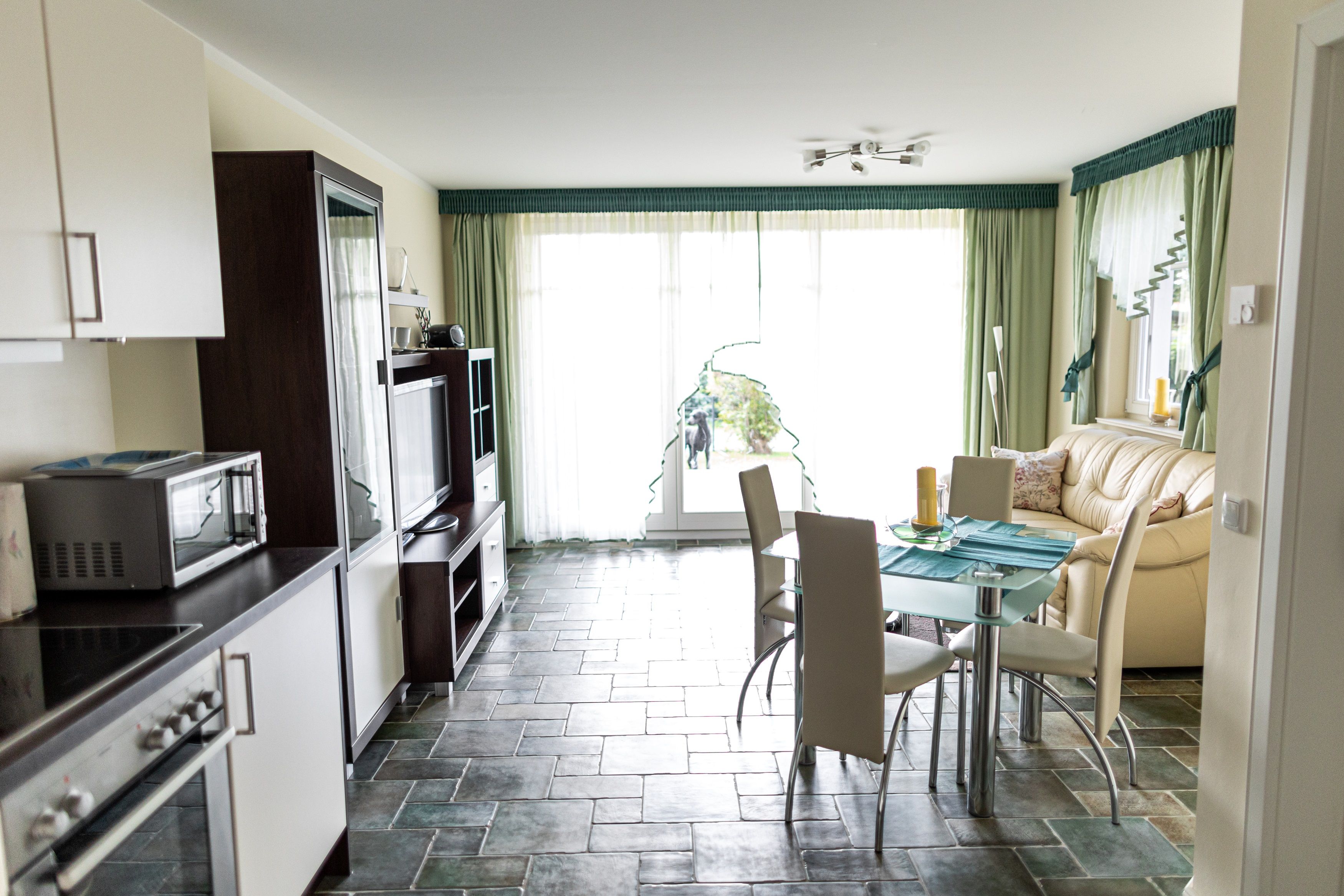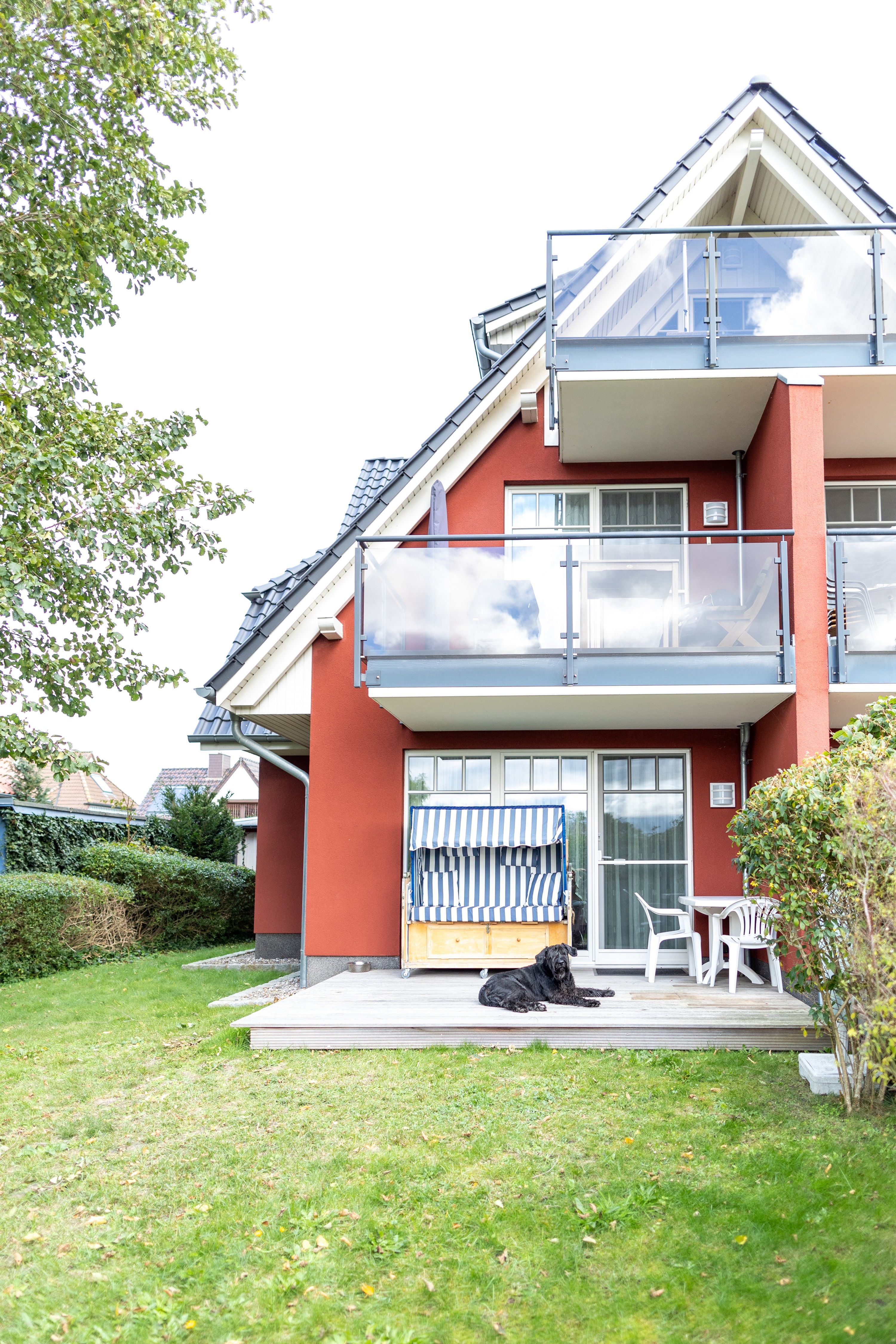 Die 54 m² große gemütliche Wohnung befindet sich im Erdgeschoss und hat einen kleinen Garten mit Terrasse mit Blick nach Süden.