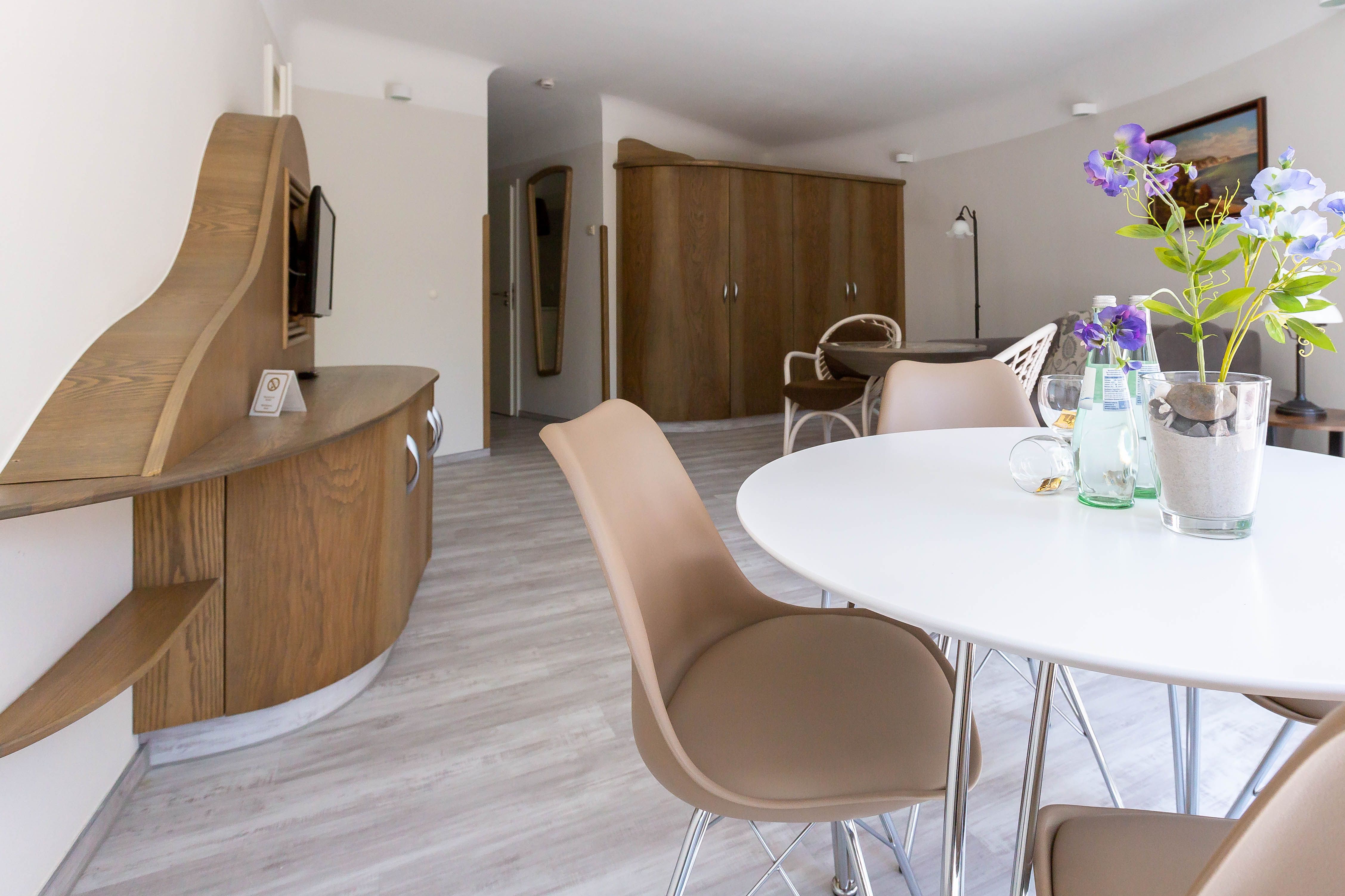 In den Häusern Muschel und Strandläufer gibt es noch 7 weitere Ferienwohnungen, die gern für Familien und Gruppen zusammen gebucht werden können. Des Weiteren befindet sich im Haupthaus ein Restaurant.